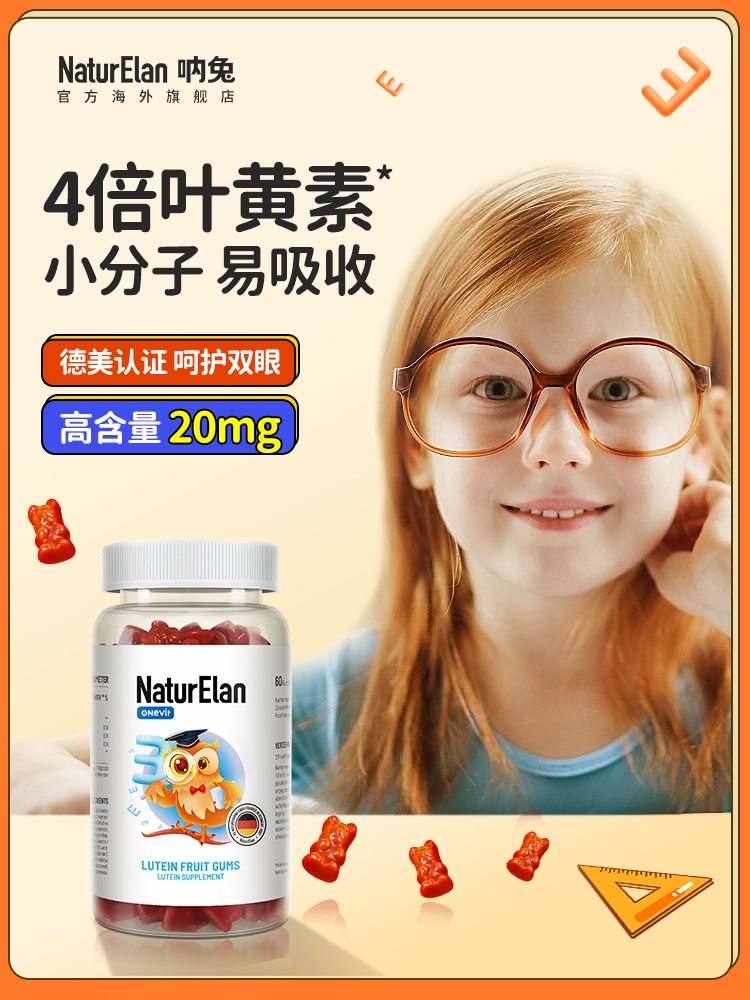 严选 | 德国NaturElan呐兔 叶黄素护眼水果软糖 60粒/瓶