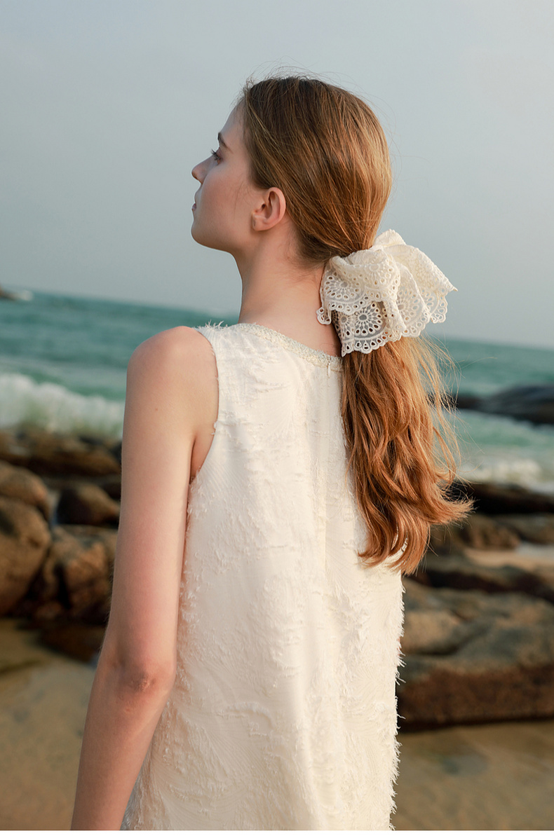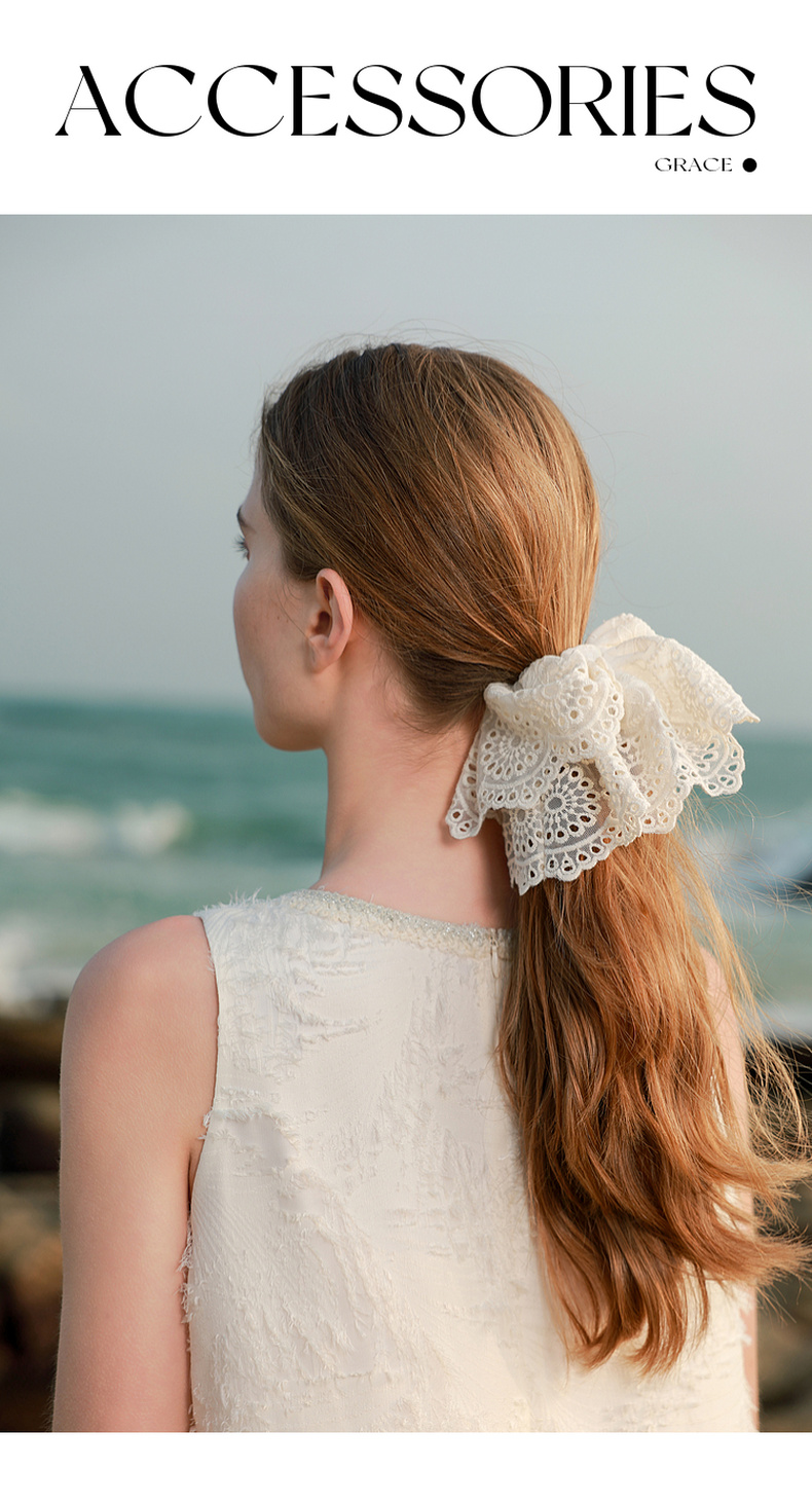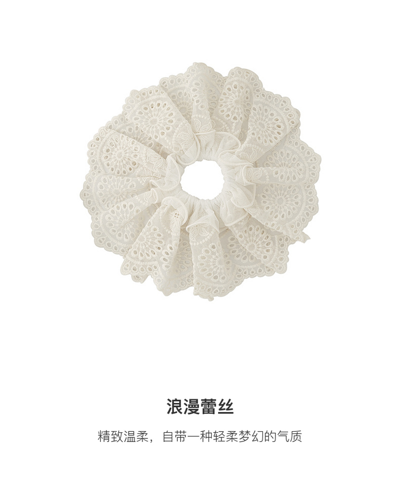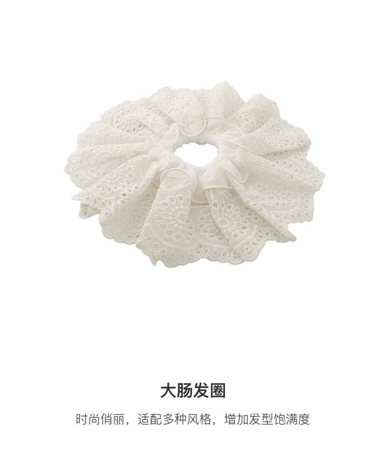 三彩2026新款法式浪漫发圈百搭盘发发饰马尾头绳大肠发绳白色蕾丝