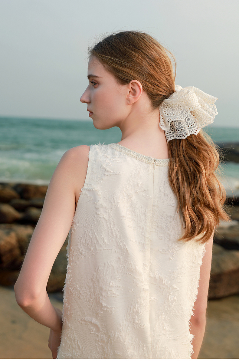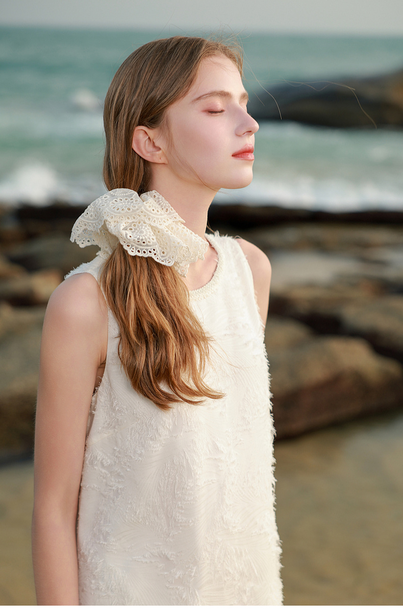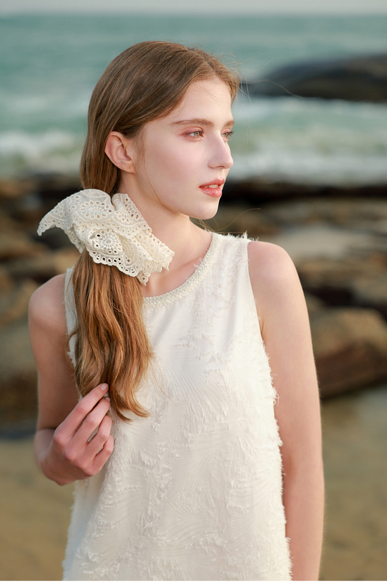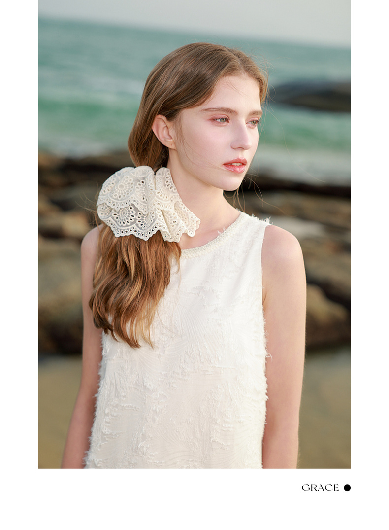三彩2026新款法式浪漫发圈百搭盘发发饰马尾头绳大肠发绳白色蕾丝