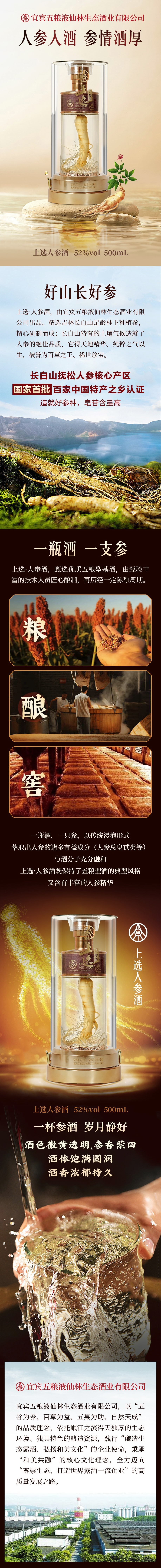 【限时优惠】五粮液仙林生态 上选人参酒 52度 500mL*1瓶 礼盒装 500ml*6原箱