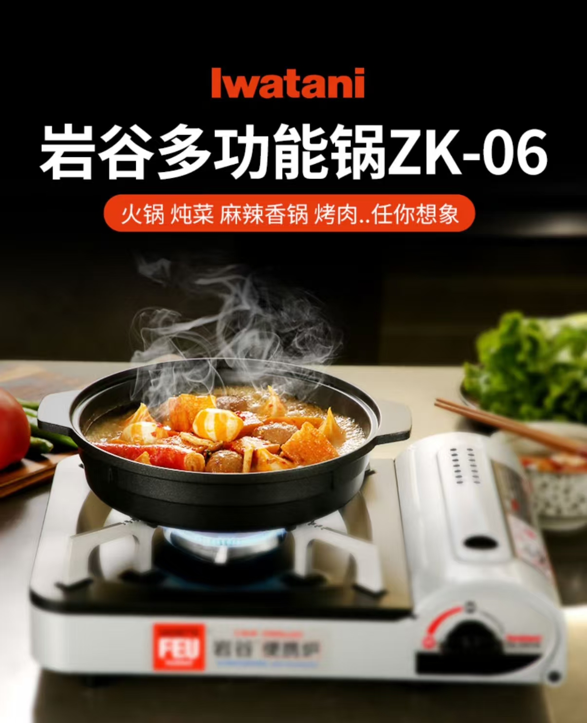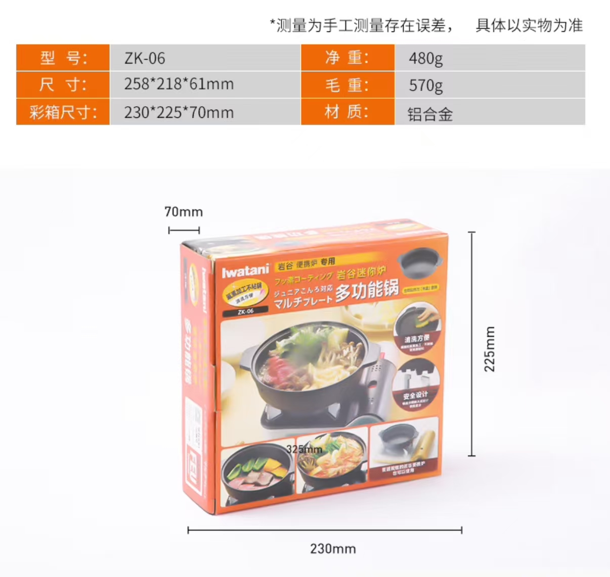 岩谷(Iwatani) 寿喜锅具家用多功能日式户外便携式家庭专用小火锅不粘锅烤盘 ZK-06多功能锅