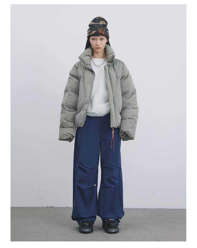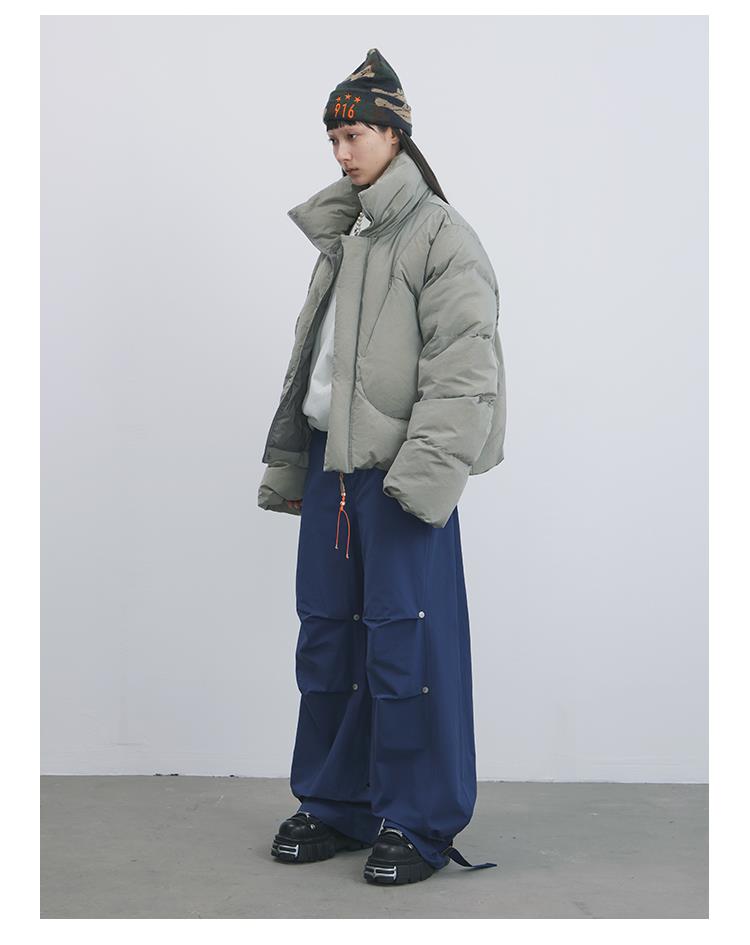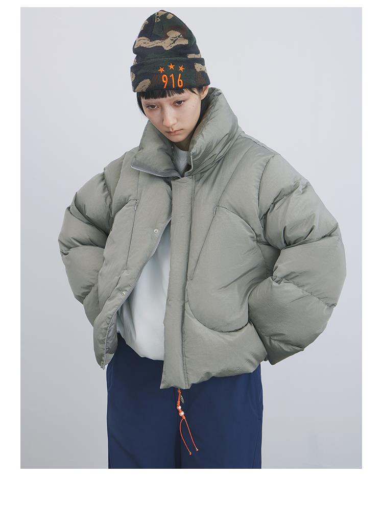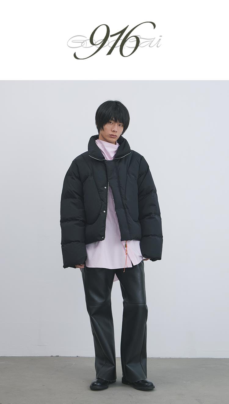GOODBAI 916 不规则剪裁串珠穿绳拉链短款羽绒服