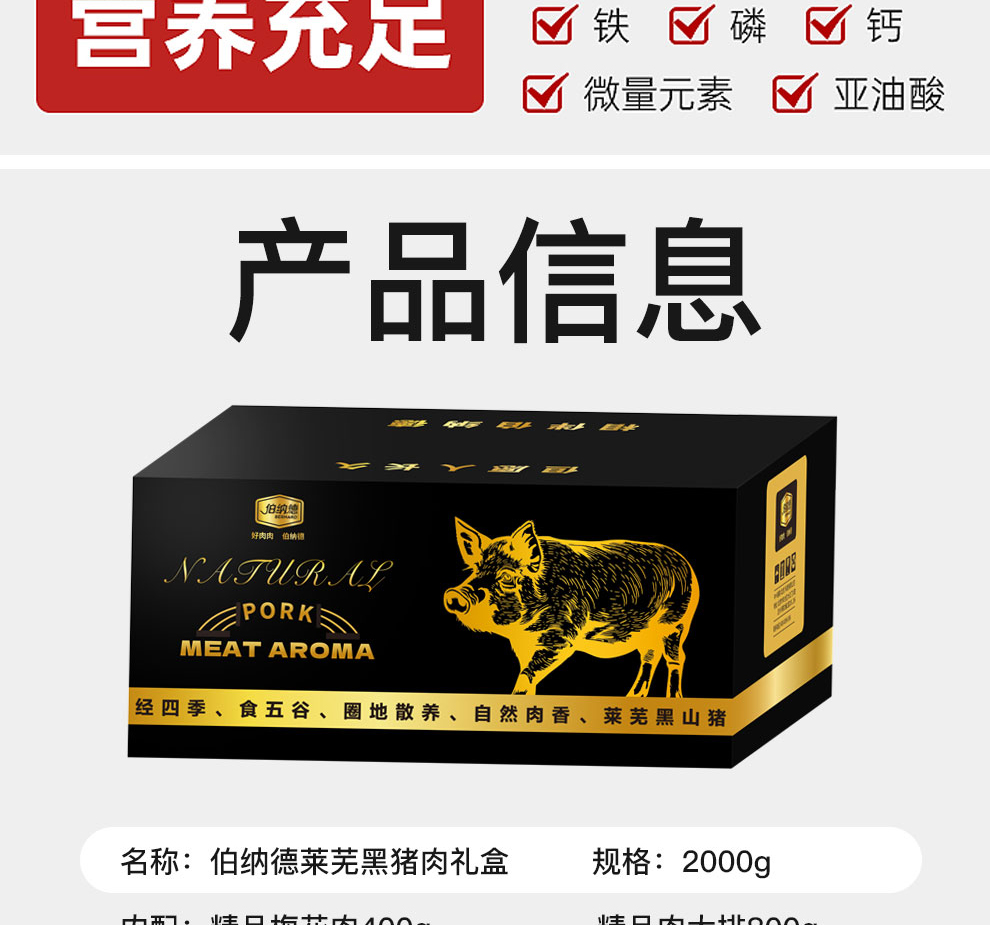 伯纳德精品莱芜黑山猪肉礼盒2000g