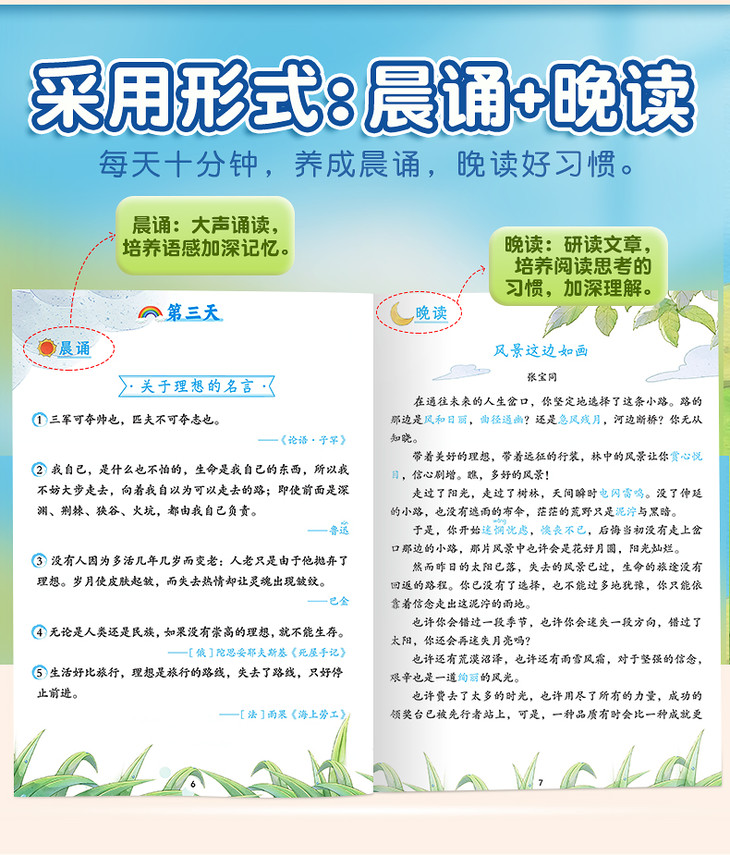 【6-12岁】《读者:晨诵晚读》小学生好词+好句+好段,晨读美文,名人名言