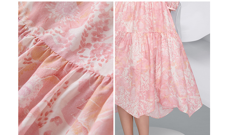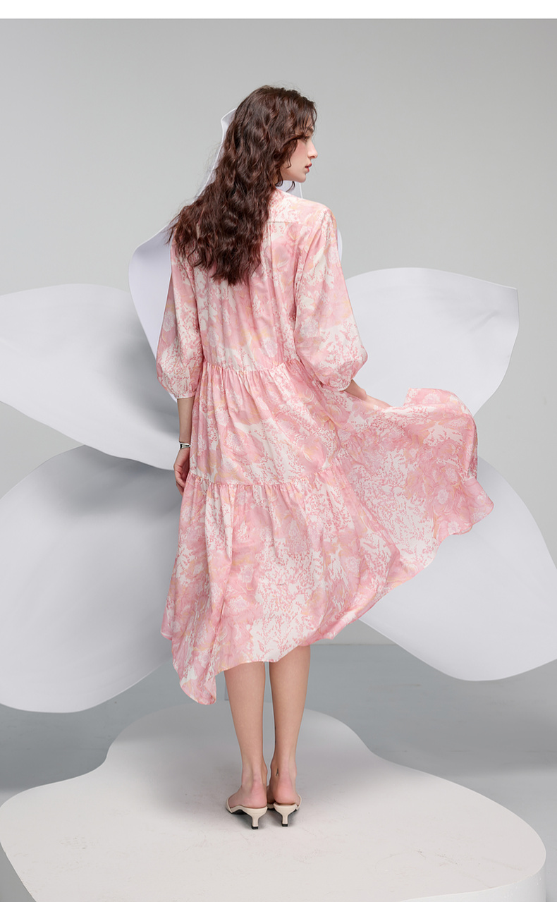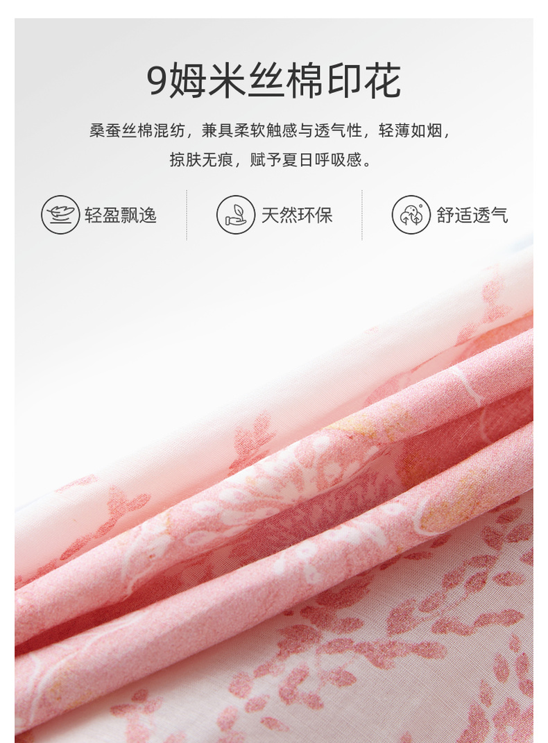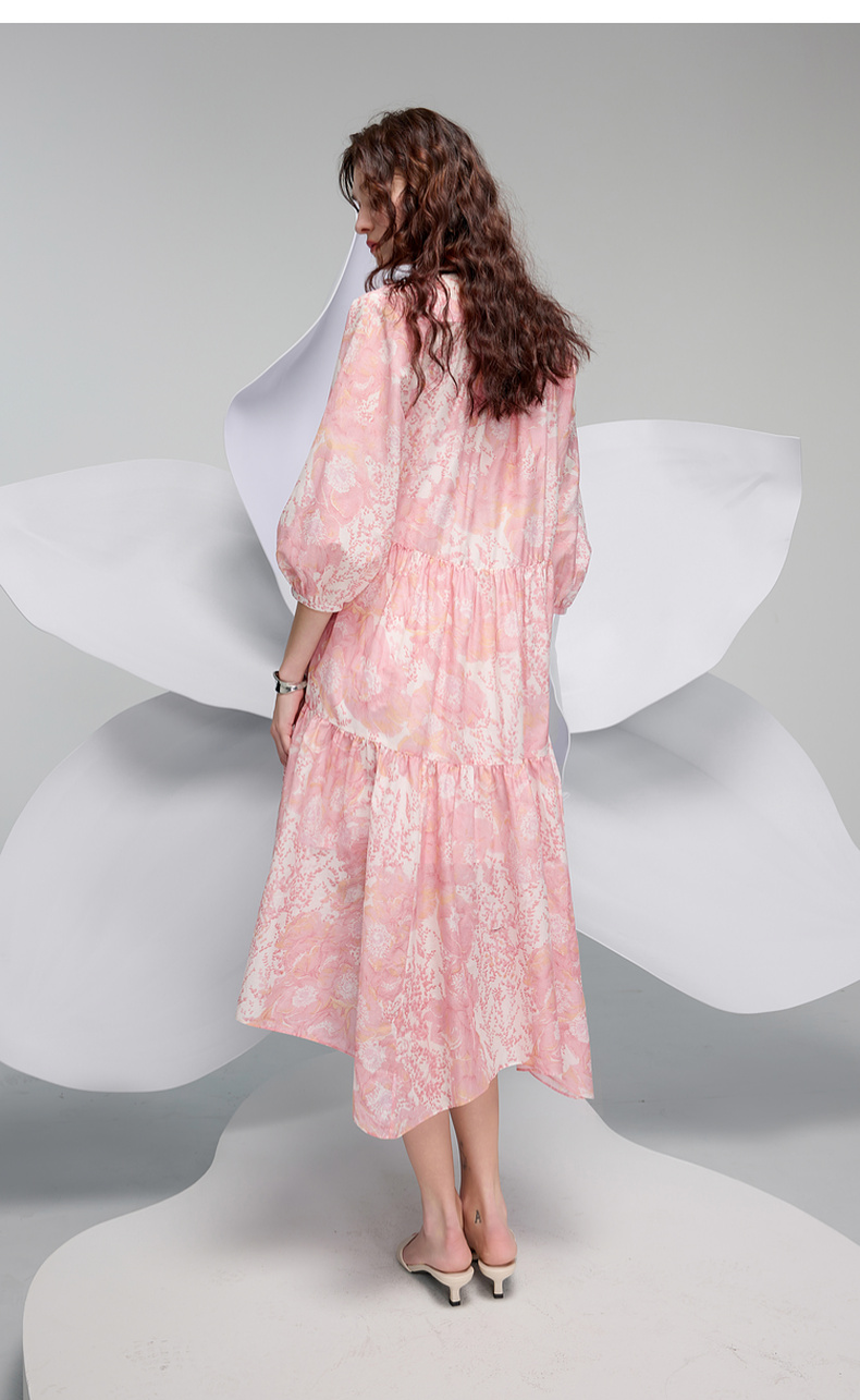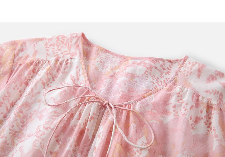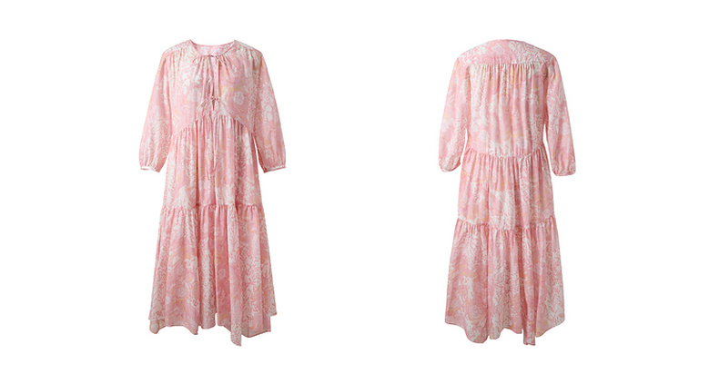 三彩2025春季新款碎花连衣裙两件套圆领系带七分袖长裙浪漫S