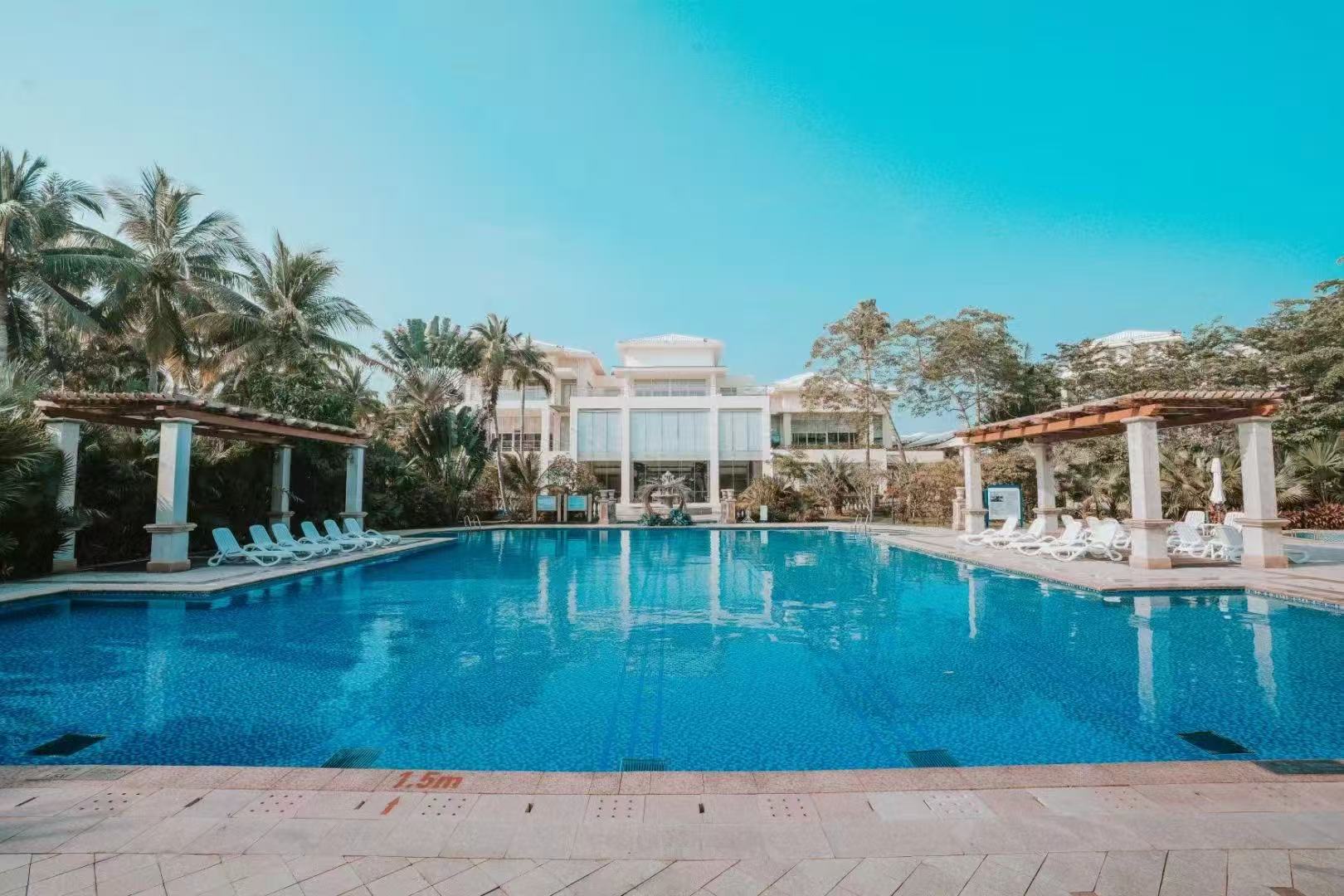 酒店位于海南省琼海市博鳌金海岸大道8号,紧邻万泉河入海口,部分客房可直接观赏河海交汇景观,酒店由主楼、棕榈岛、椰林岛、槟榔岛组成,棕榈岛属于独立区域,包含园景房及公共设施。