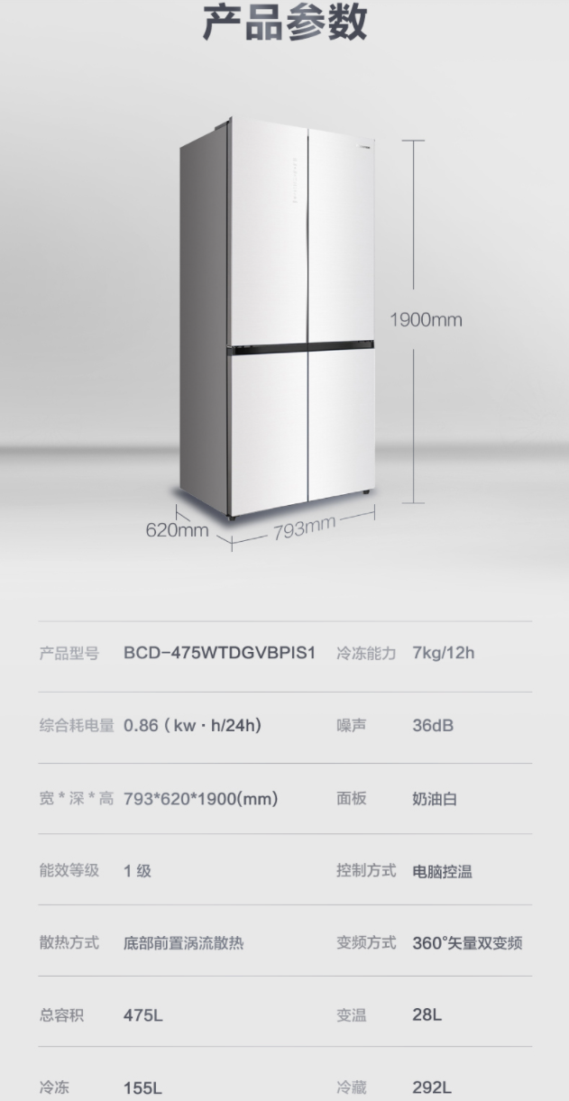 【限天津区域】海信/冰箱/BCD-475WTDGVBPIS1白