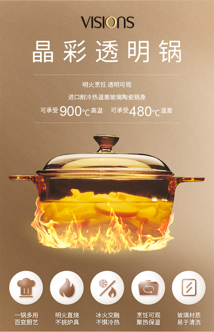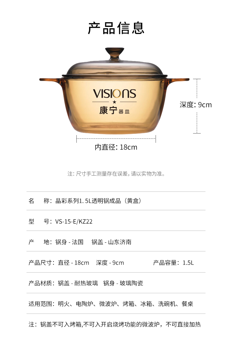 康宁VISIONS 晶彩系列透明锅--1.5L VS-15-E/KZ22