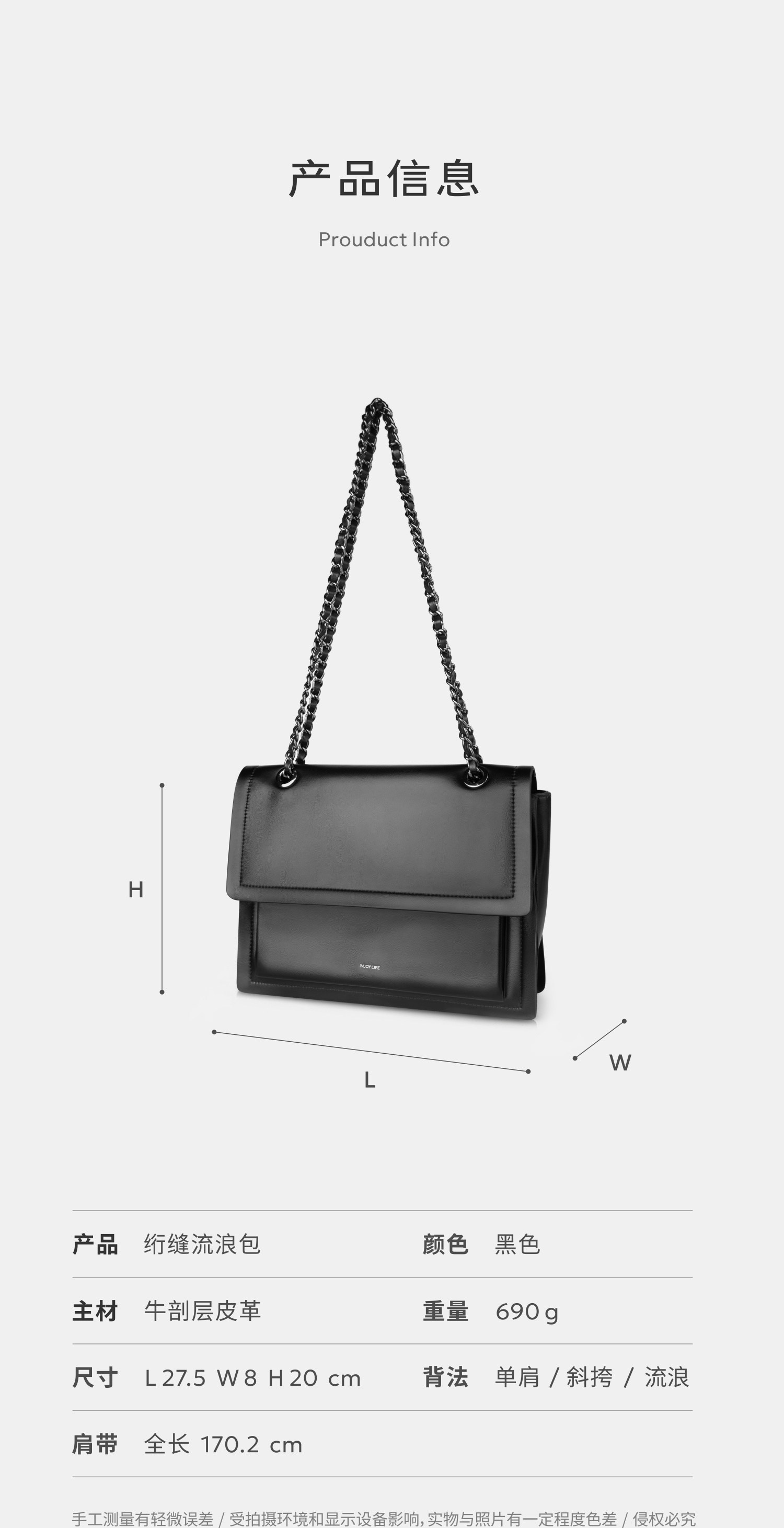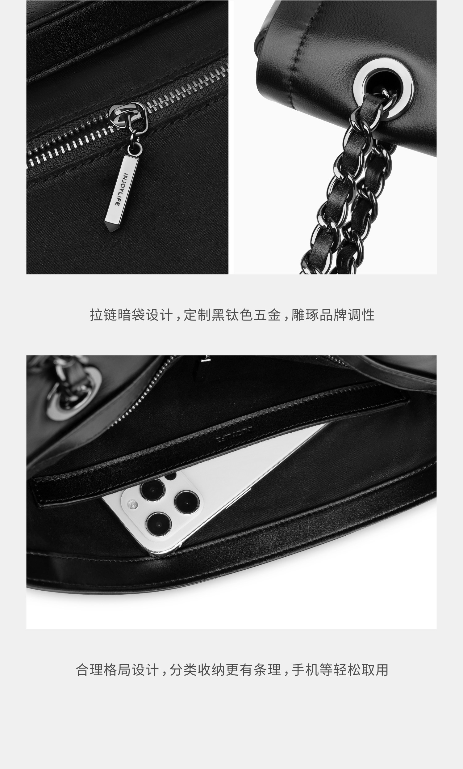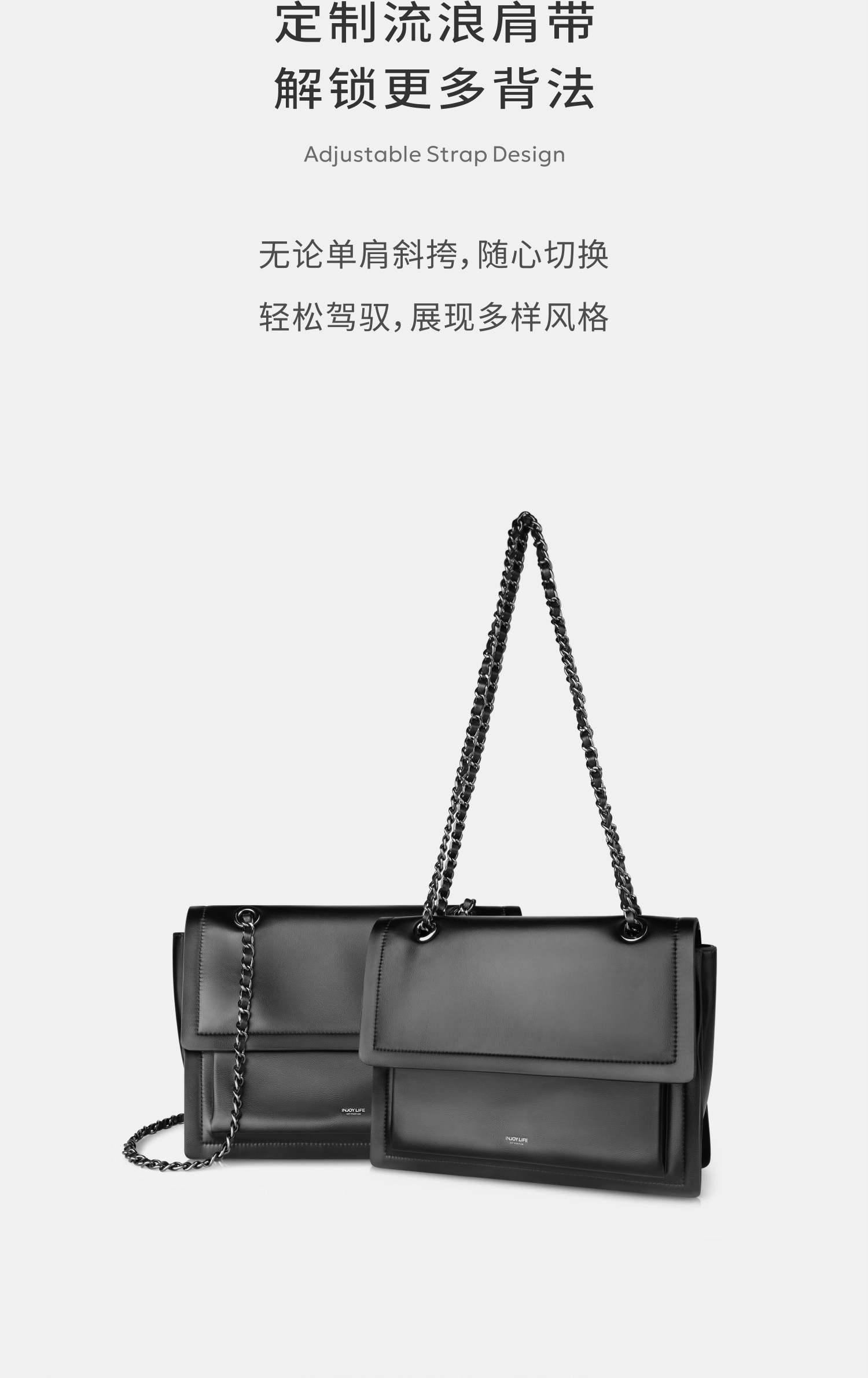 高端品质 INJOYLIFE流浪包小众设计软皮通勤包机车大容量单肩包双链条女包