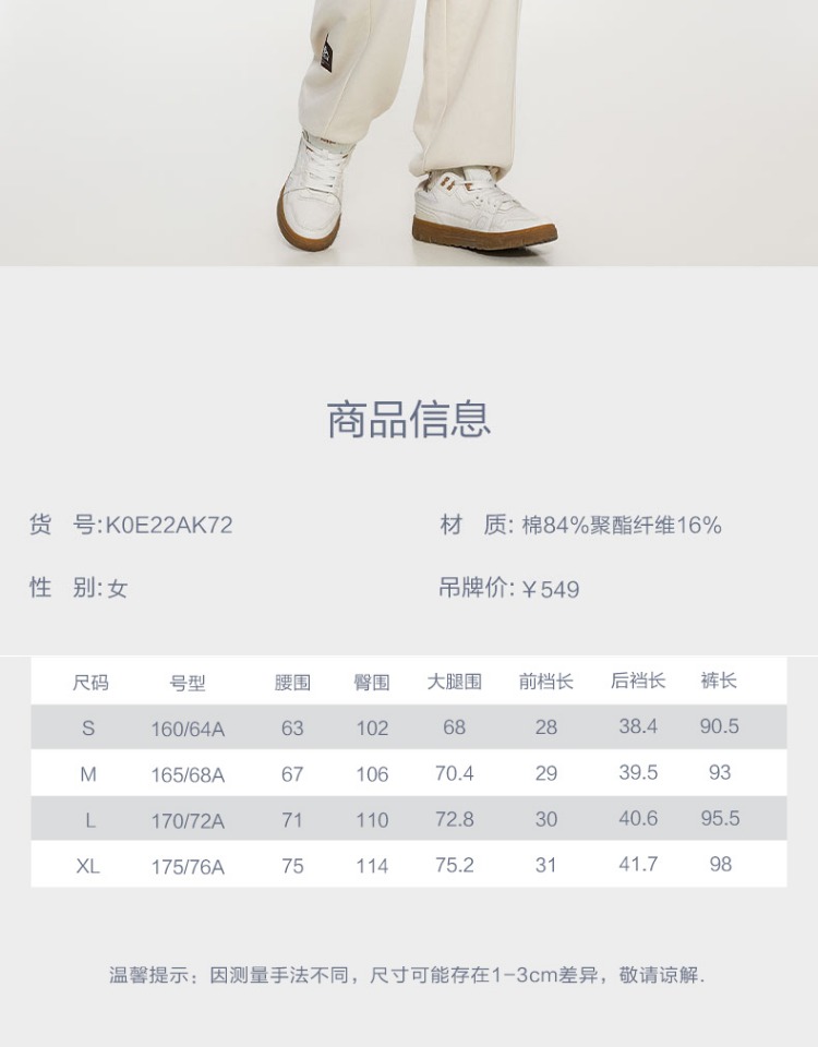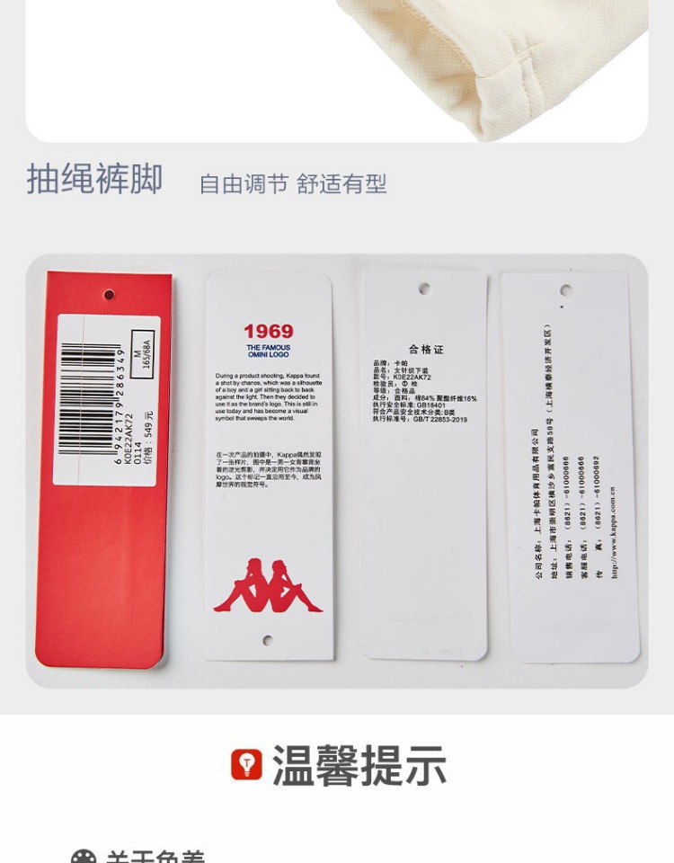 Kappa卡帕针织休闲裤2024新款女春直筒长裤抽绳小脚卫裤K0E22AK72