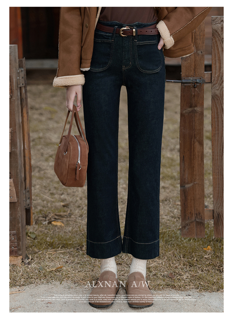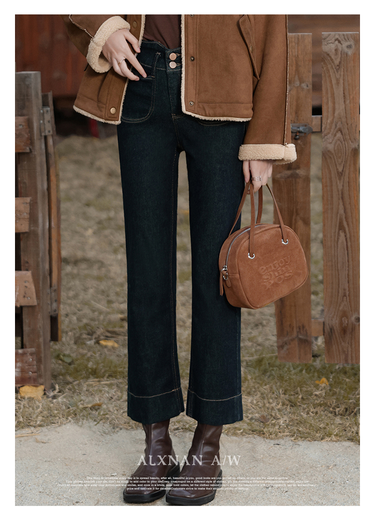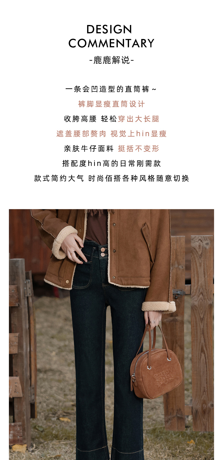 鹿向南「简约时尚」高腰显瘦气质牛仔裤女秋冬2025新款九分直筒裤