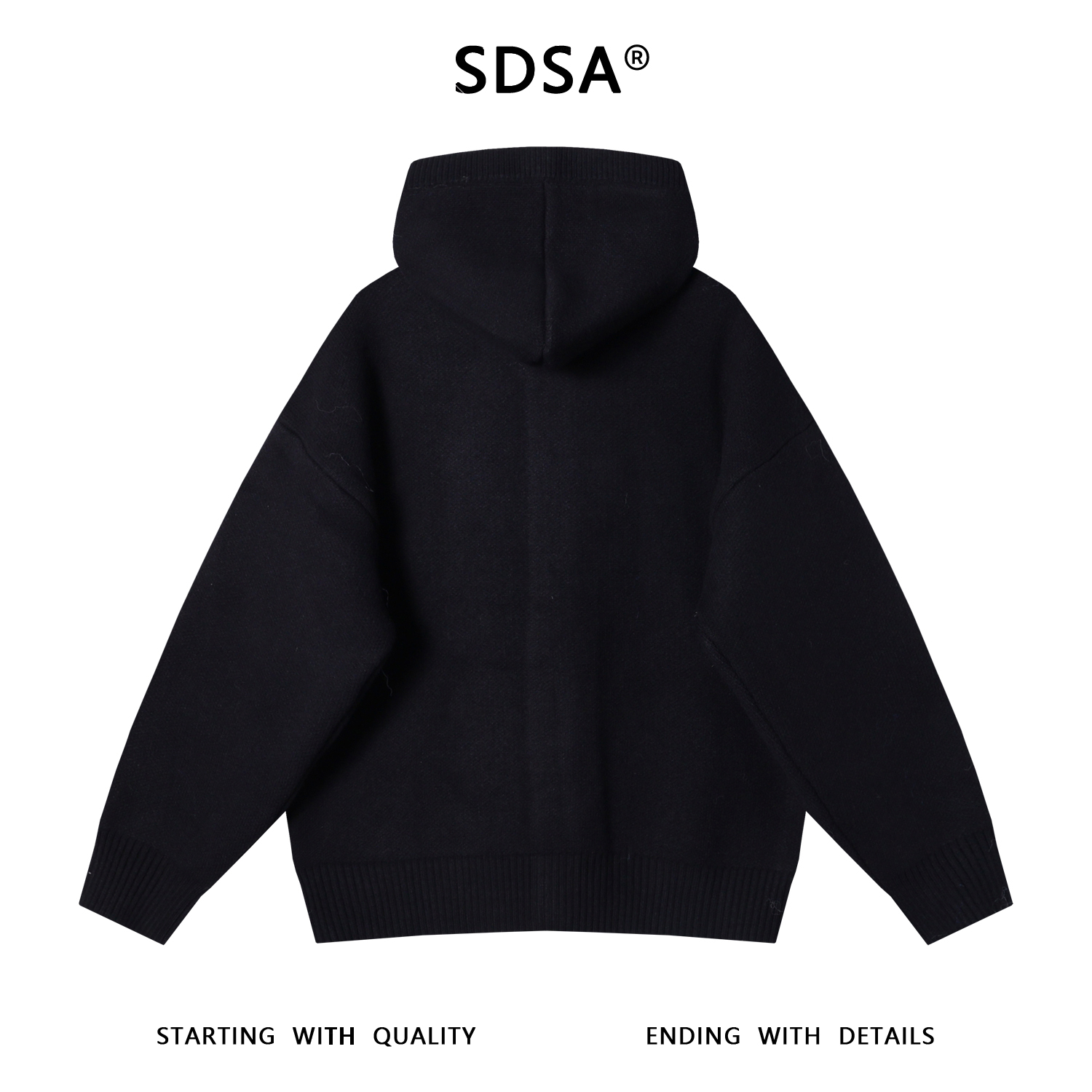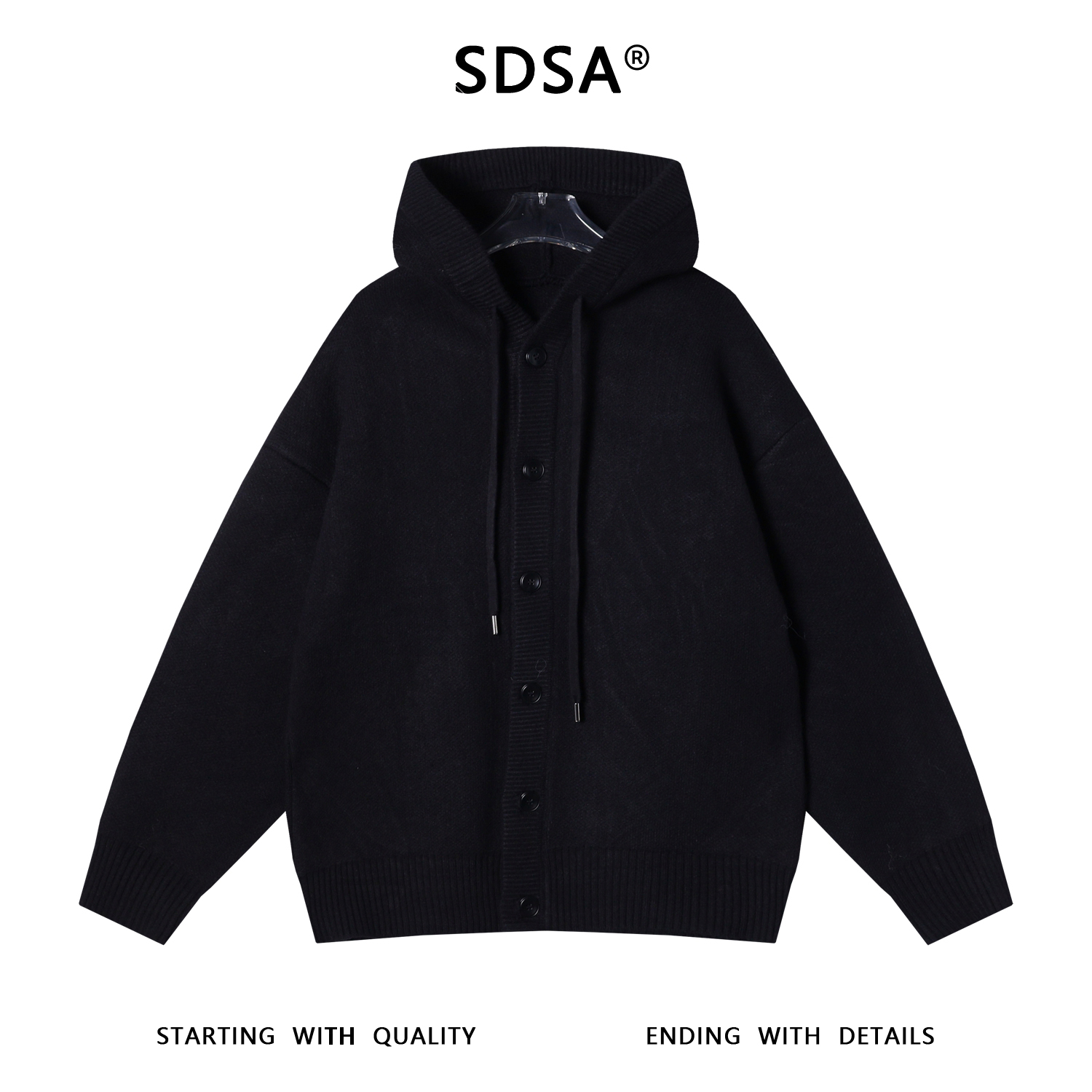 SDSA男士秋冬新款痞帅男装韩版纯色抽绳纽扣连帽针织衫百搭毛衣