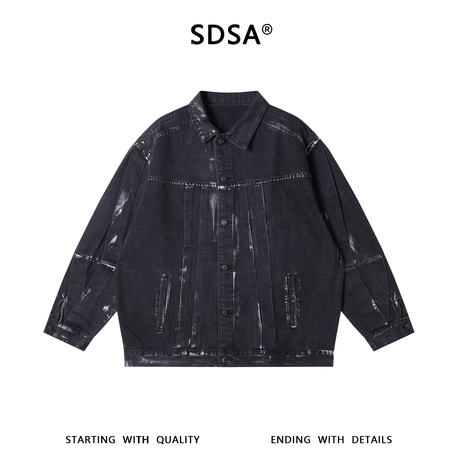 KY004SDSA男士秋冬新款痞帅男装潮牌撞色印花褶皱翻领牛仔夹克外套百搭