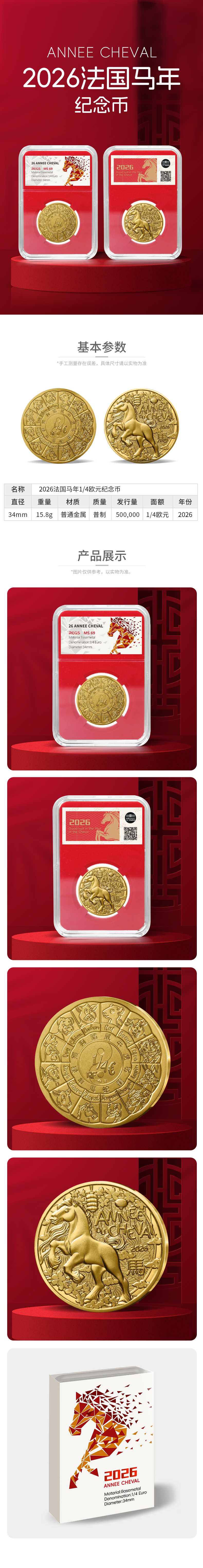 2026马年生肖纪念币 巴黎造币厂 封装带礼盒包装 法定货币
