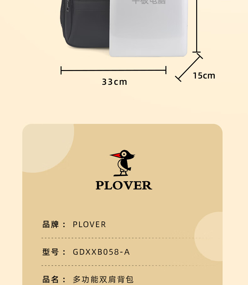 PLOVER黑色009款升级版背包商务男士GDXXB058-A