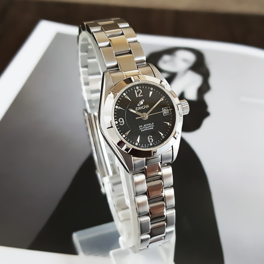 【95新】ENICAR英纳格775/55/309aB自动机械日期显示24mm(女表)精钢041125NJS13