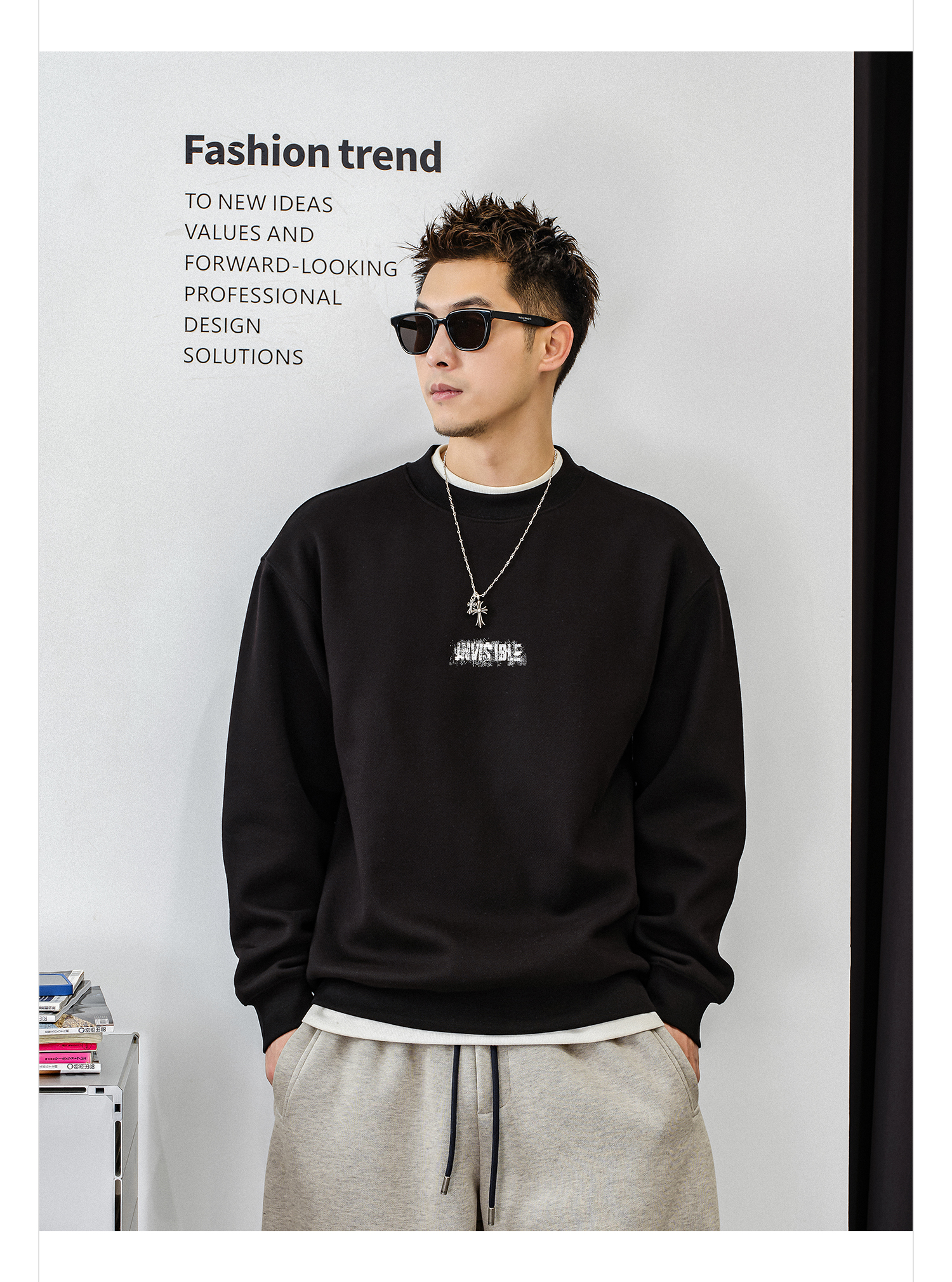 徐太浪【设计感 帅气印花】加绒卫衣男秋冬2025新款内搭男生上衣