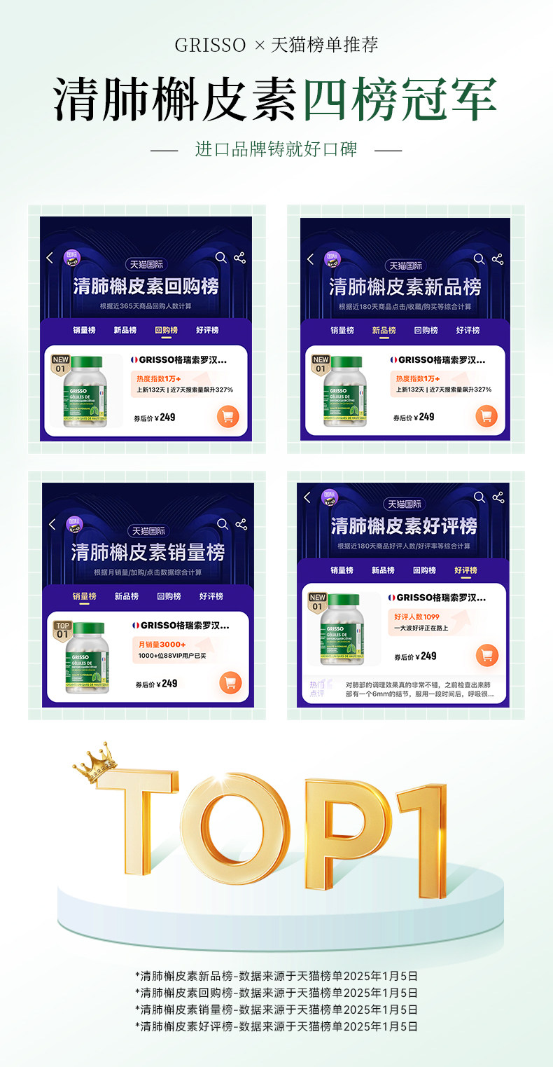 GRISSO格瑞索罗汉果二氢槲皮素胶囊清肺润肺养肺慢性咽润喉咳嗽