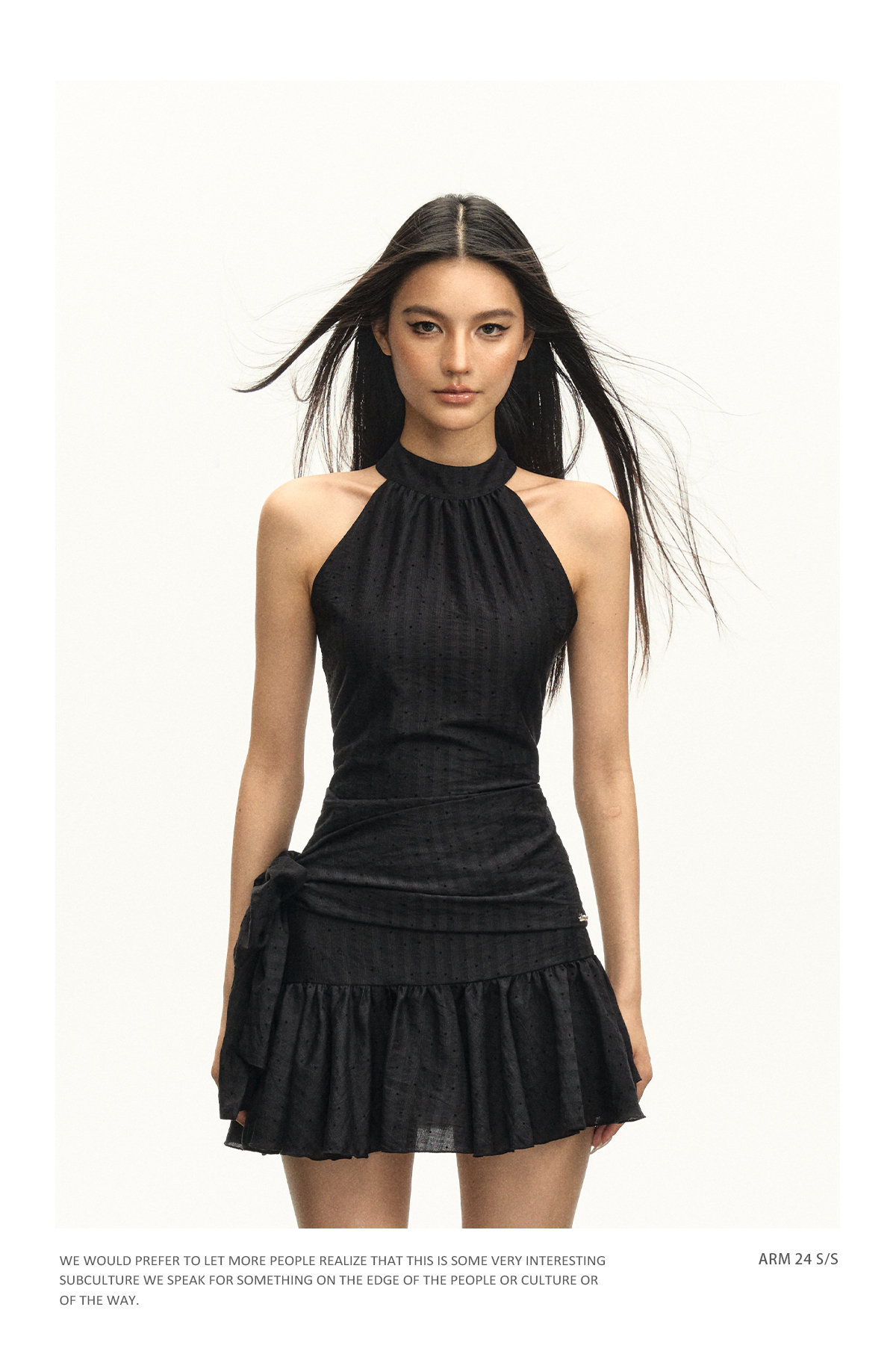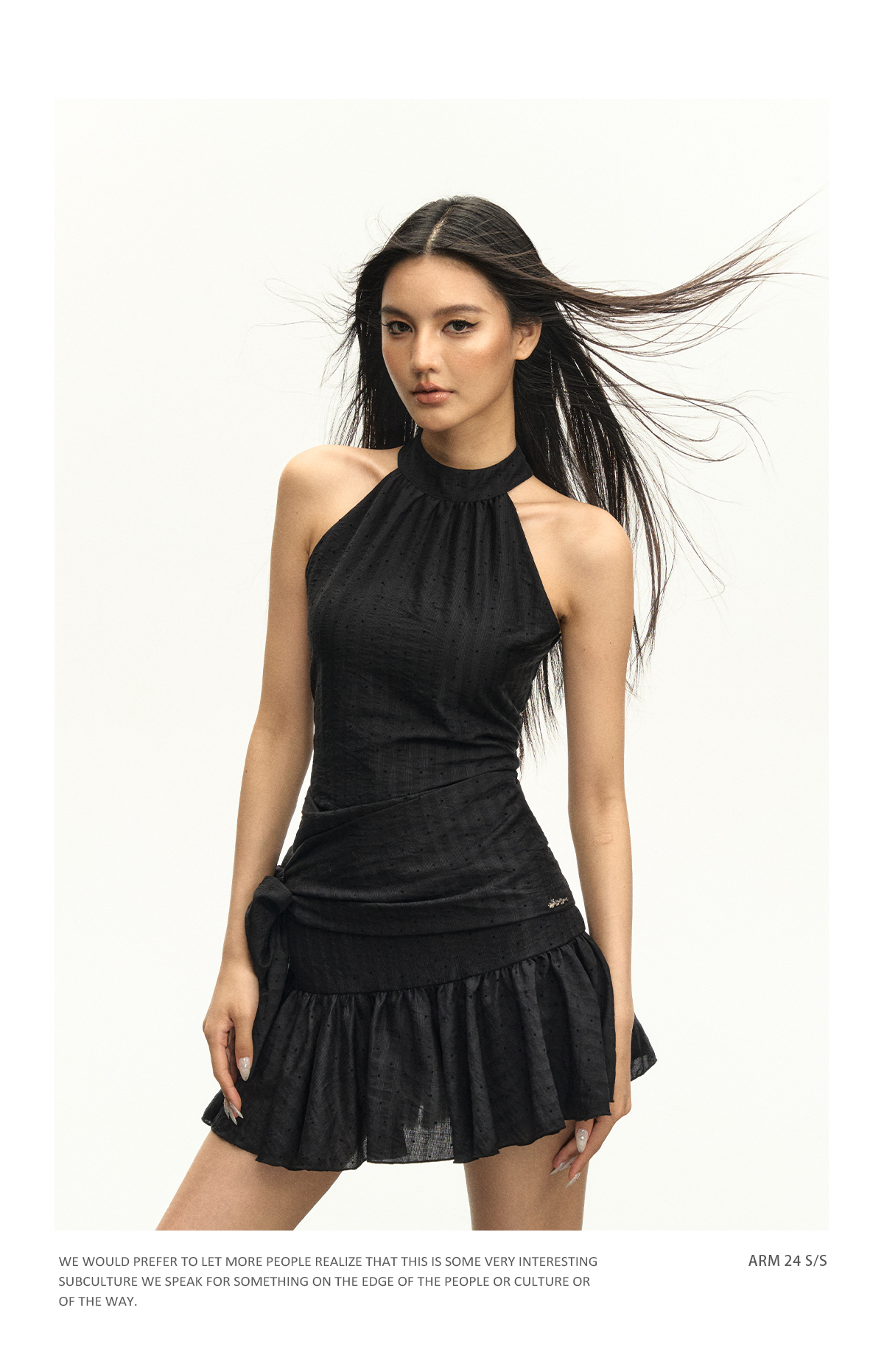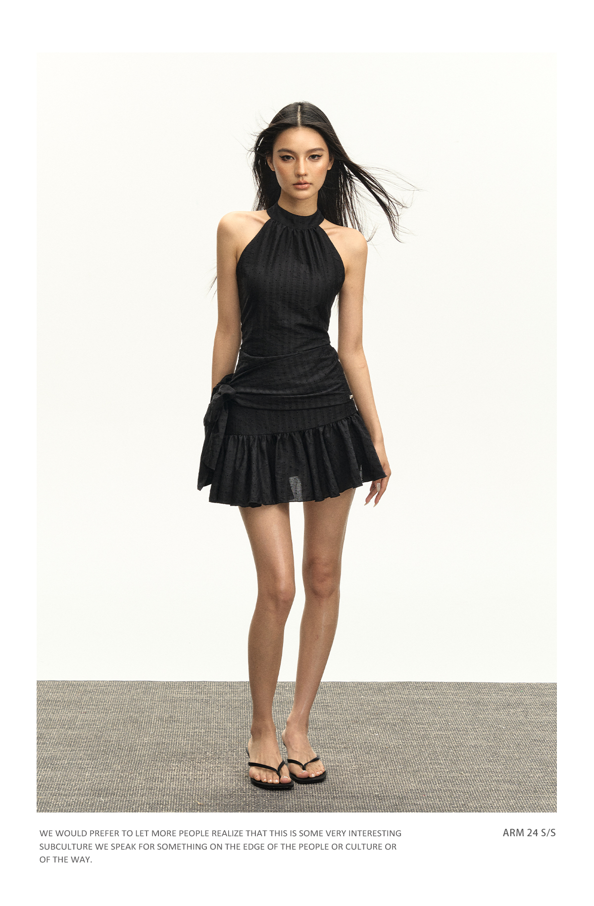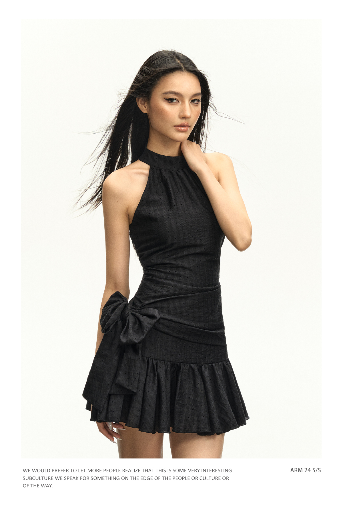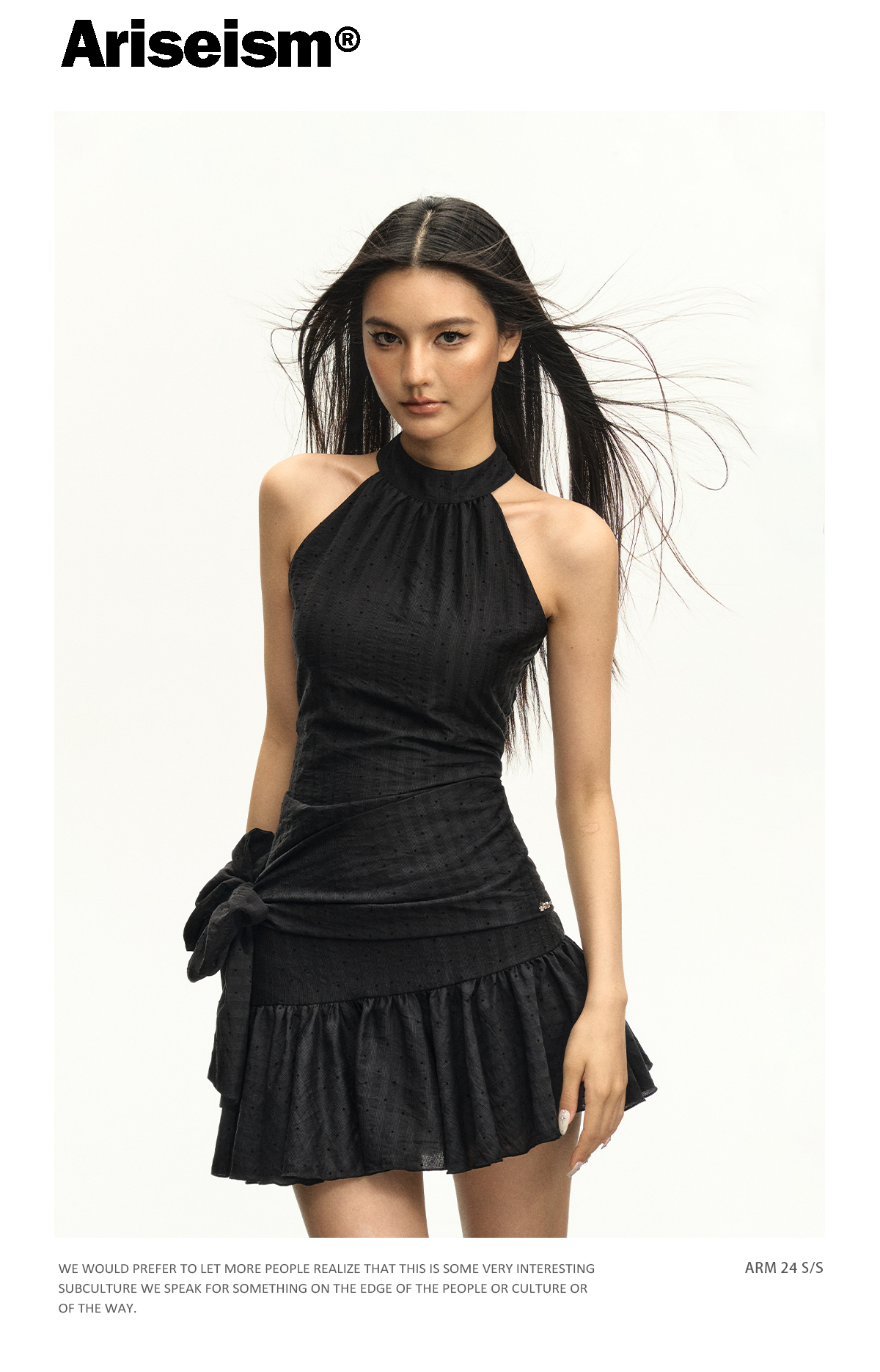 Ariseism 美式复古设计感蝴蝶结挂脖无袖连衣裙女夏季新款裙子
