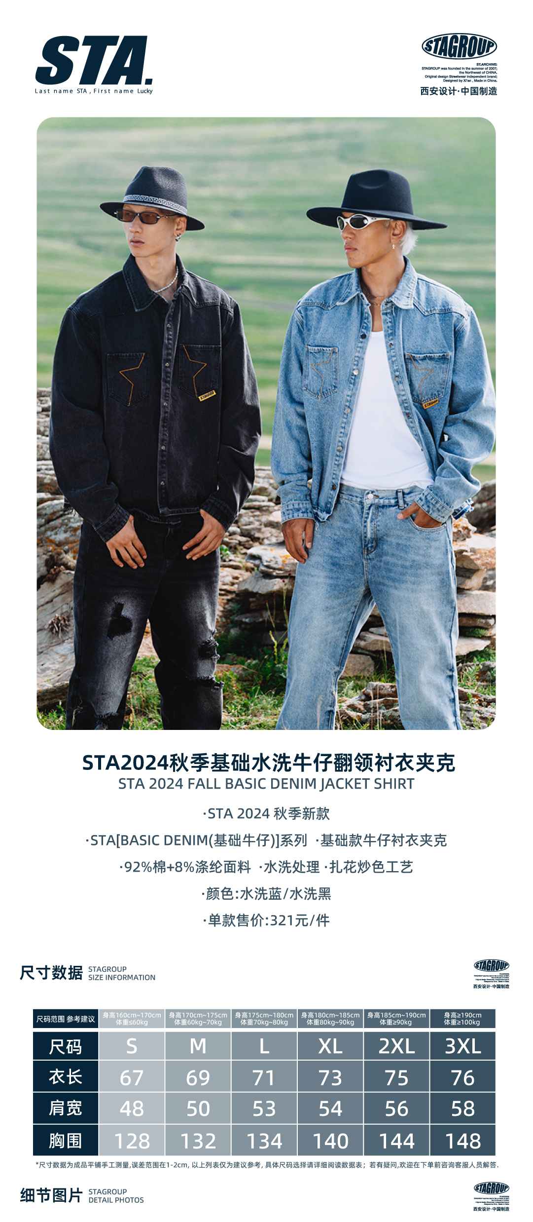 STA2024秋季基础水洗牛仔翻领衬衣夹克外套