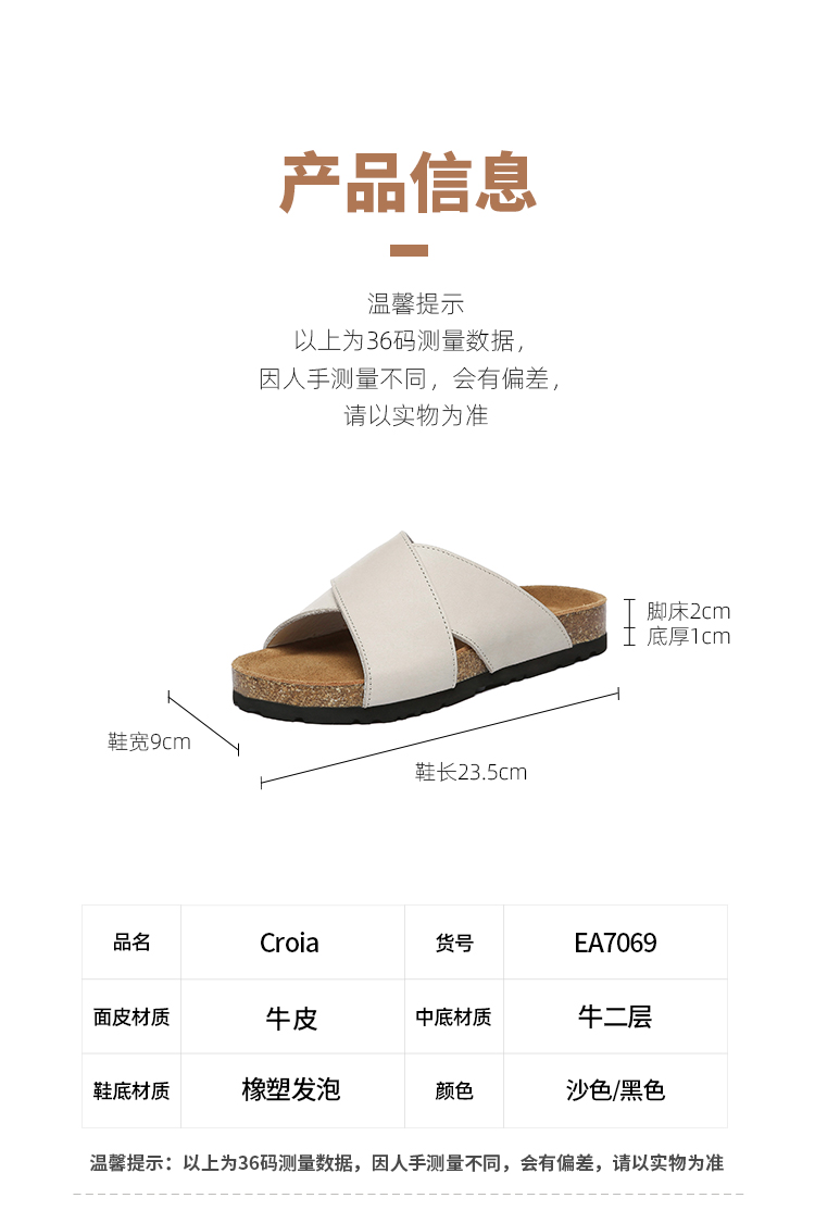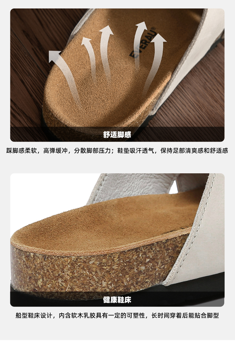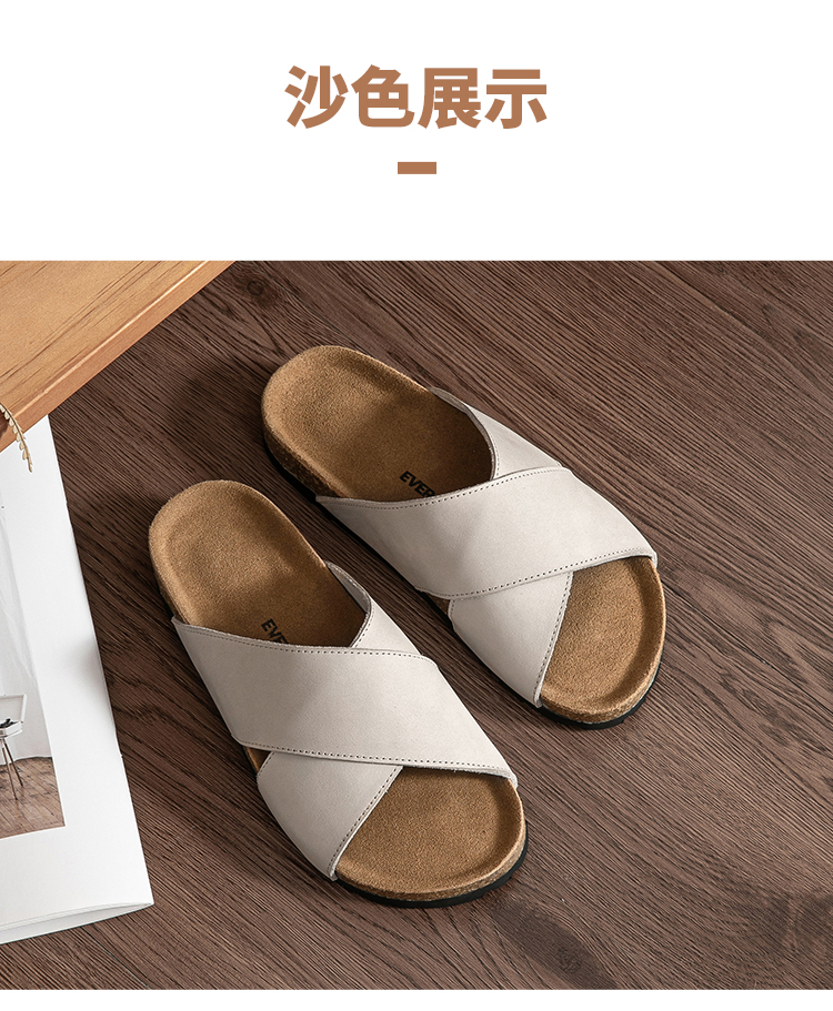 【澳洲品牌】EVERAU春夏 交叉带勃肯凉鞋拖鞋牛皮休闲女鞋EA7069
