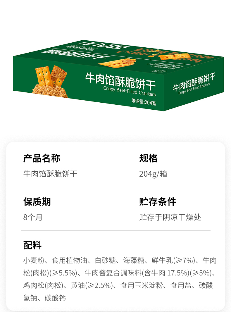 【顺丰快递】谷饲牛肉馅饼干 商超同款 安格斯12mm大颗粒牛肉夹心添加 满口都是肉馅 0反式脂肪酸 无色素香精无防腐剂 BGJSP