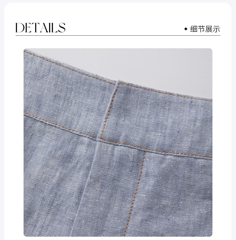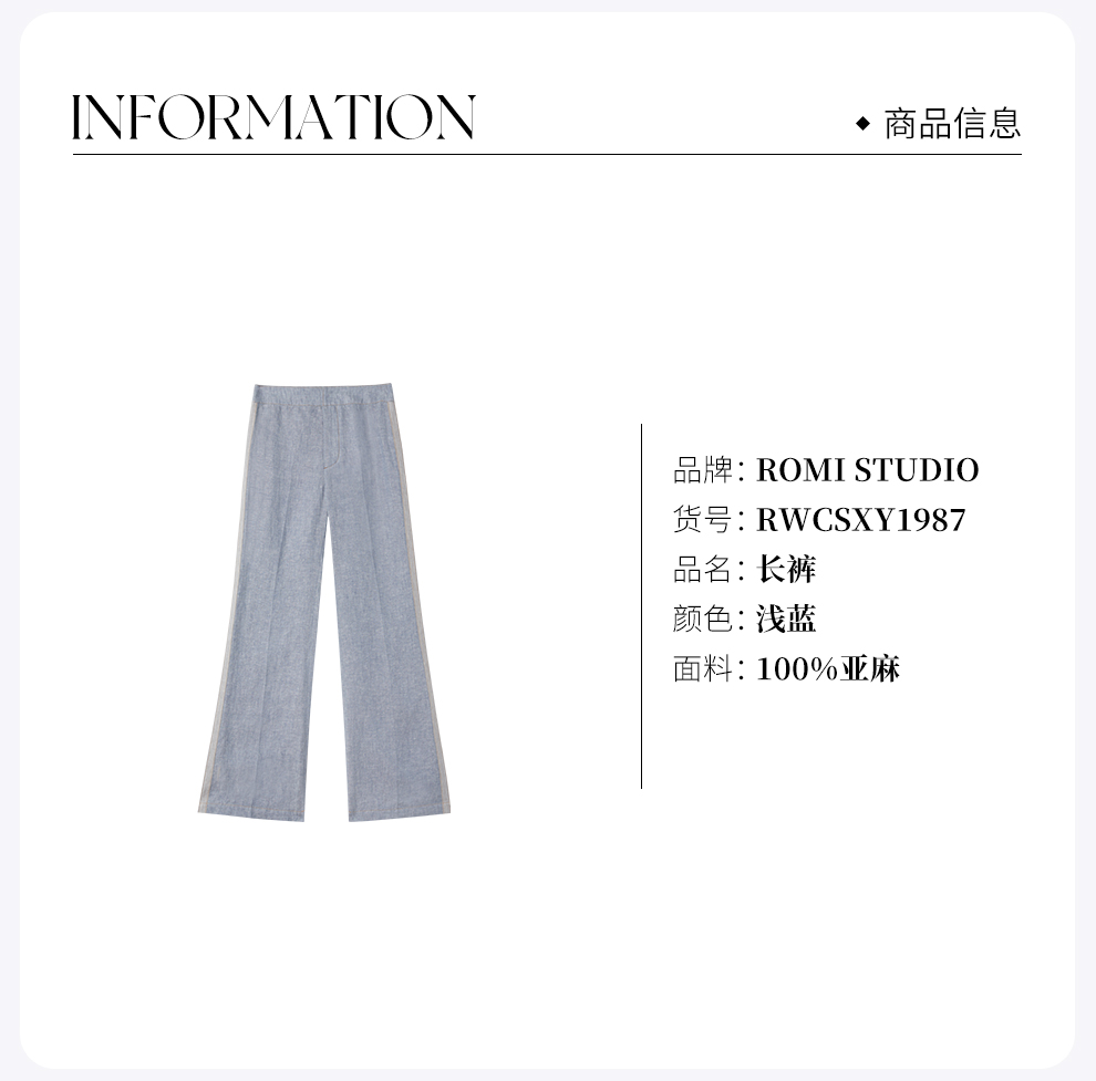 ROMI STUDIO“质感亚麻” 100%色织亚麻撞色微喇休闲裤 RWCSXY1987