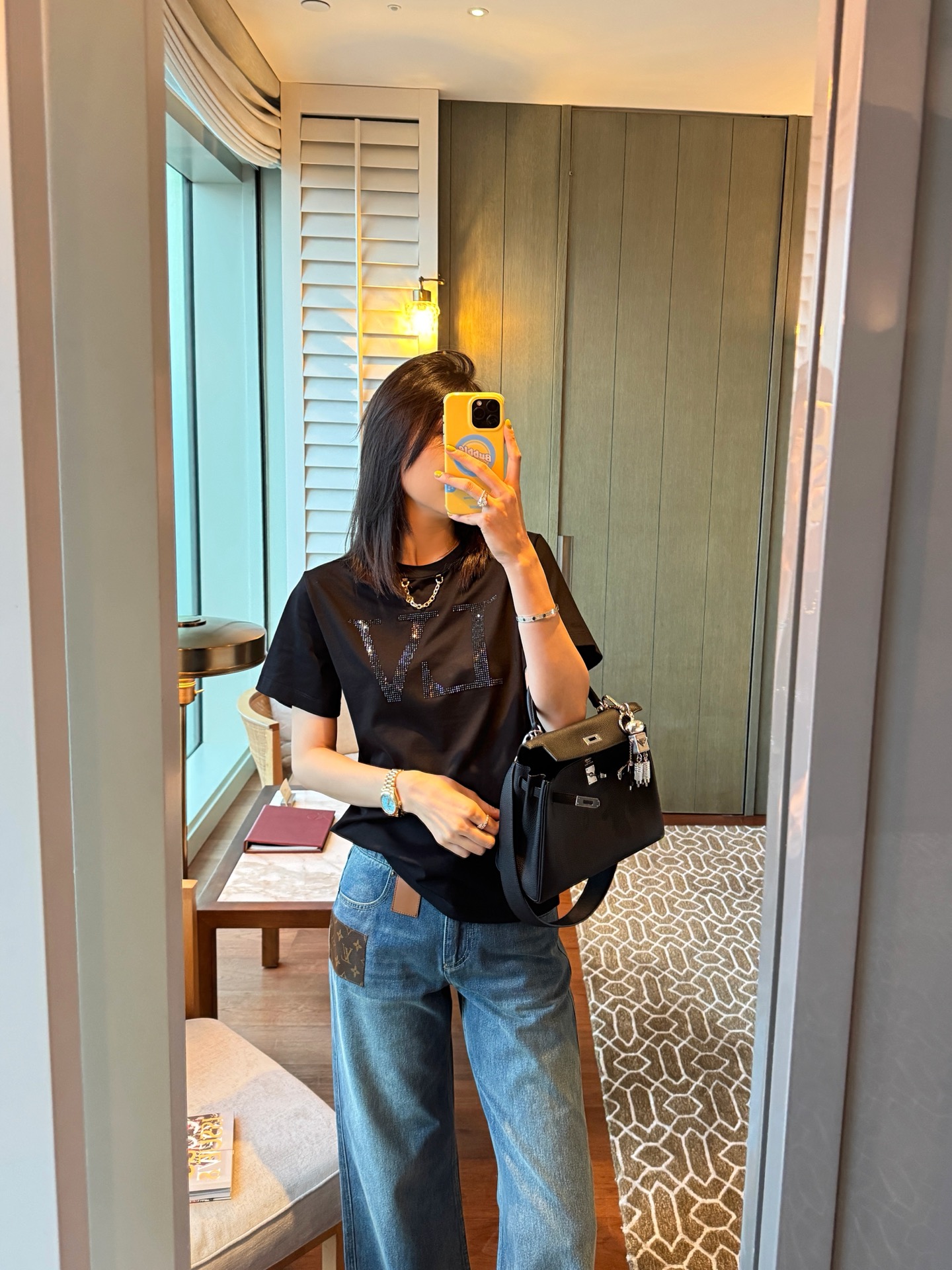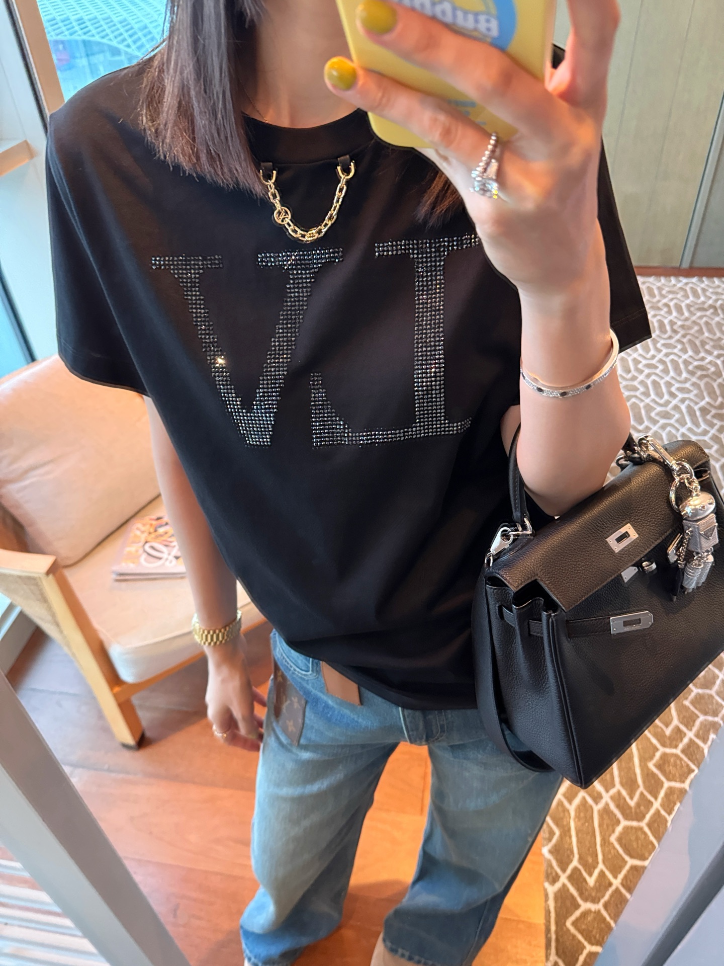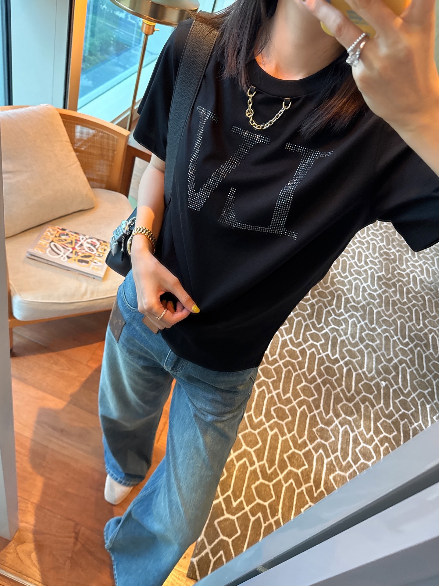 25年新品🆕心动来袭 烫钻T恤,简洁又醒目🎶法式慵懒与奢华的完美融合,轻松打造不费力的高级感穿搭〰️面料很舒服,上身超级显瘦 ,内搭外穿都可以,这件基础款直接把“省心”和“出片”焊在身上了,可以做任何搭配,,姐妹,千万别错过☺️码数SML