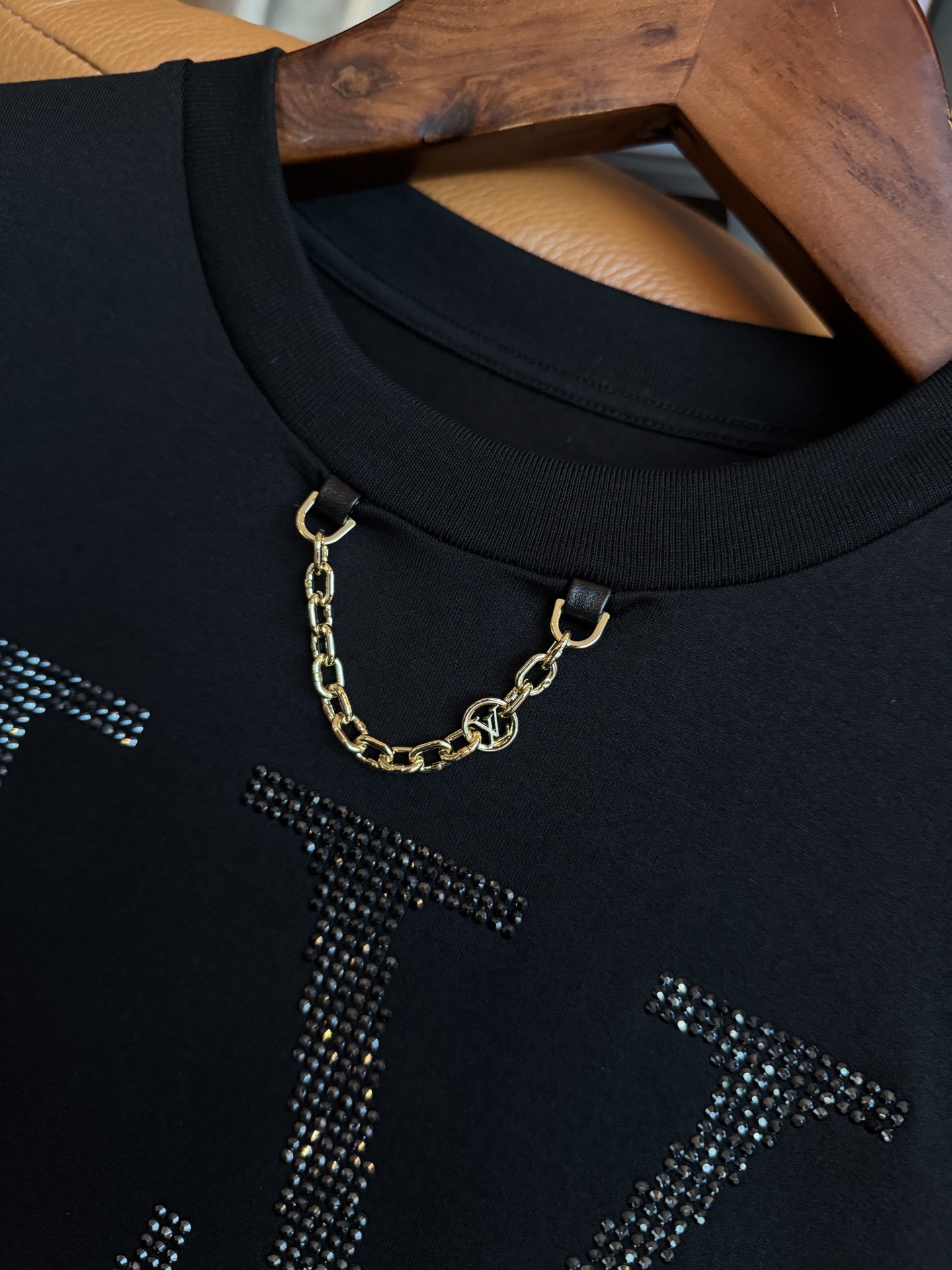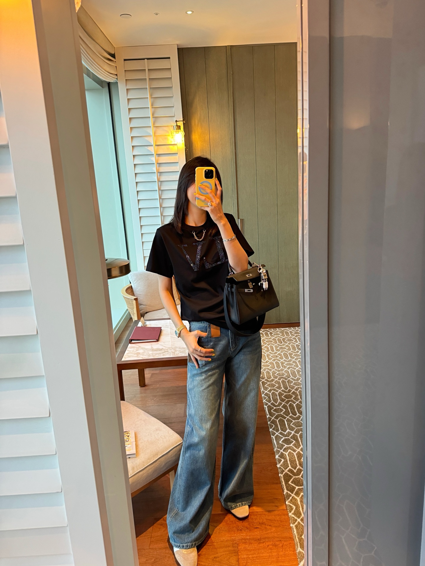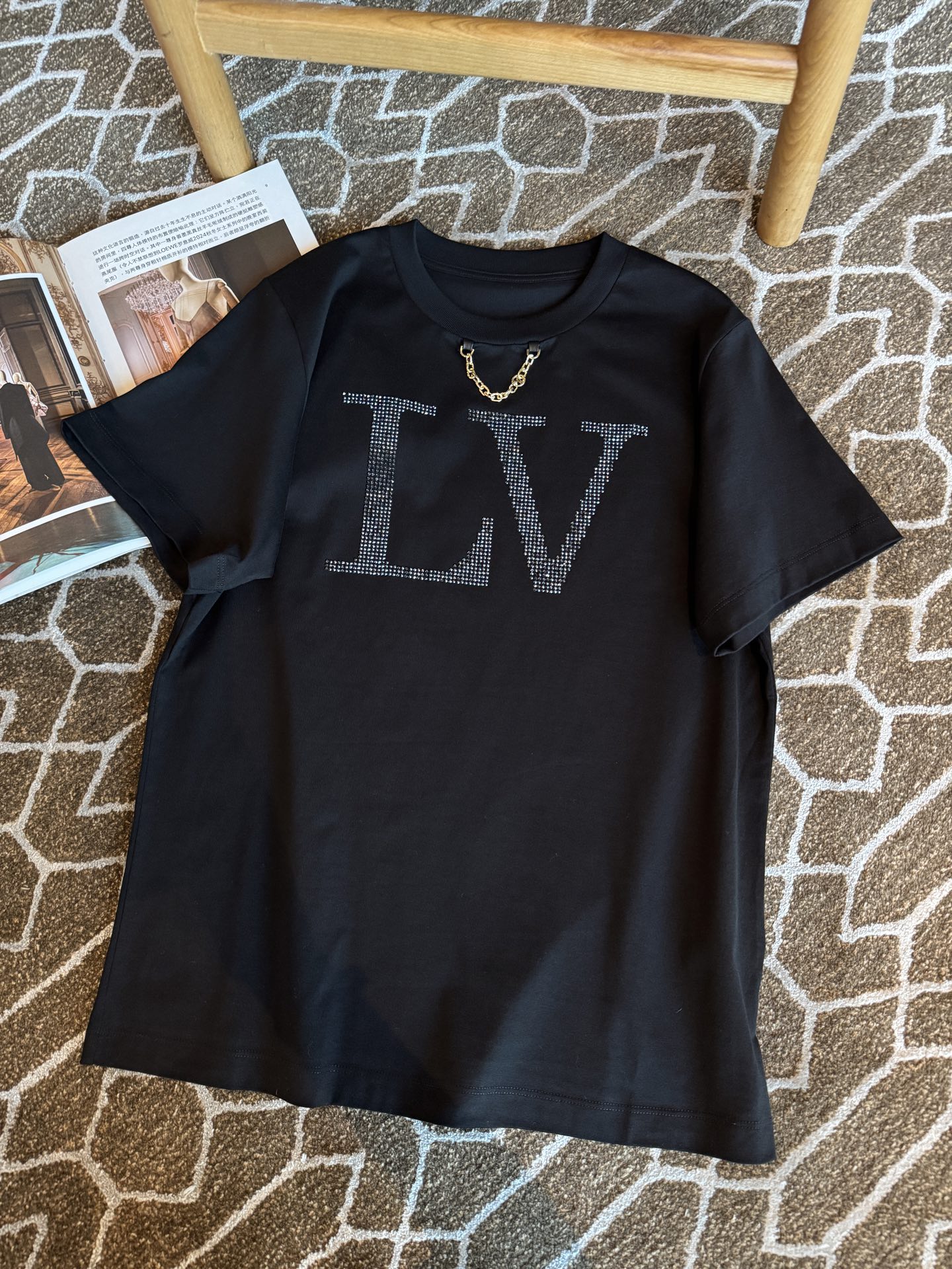 25年新品🆕心动来袭 烫钻T恤,简洁又醒目🎶法式慵懒与奢华的完美融合,轻松打造不费力的高级感穿搭〰️面料很舒服,上身超级显瘦 ,内搭外穿都可以,这件基础款直接把“省心”和“出片”焊在身上了,可以做任何搭配,,姐妹,千万别错过☺️码数SML
