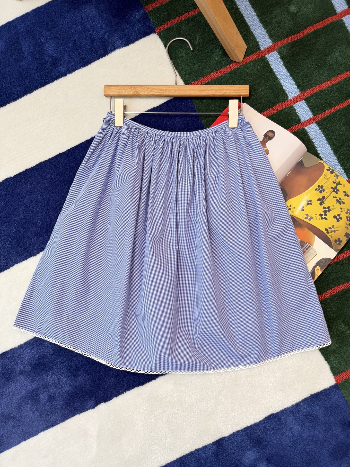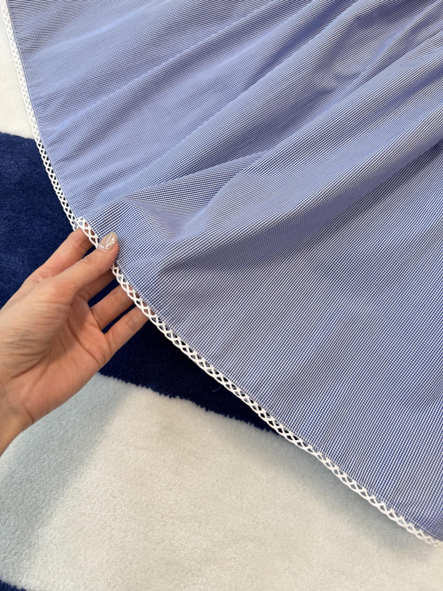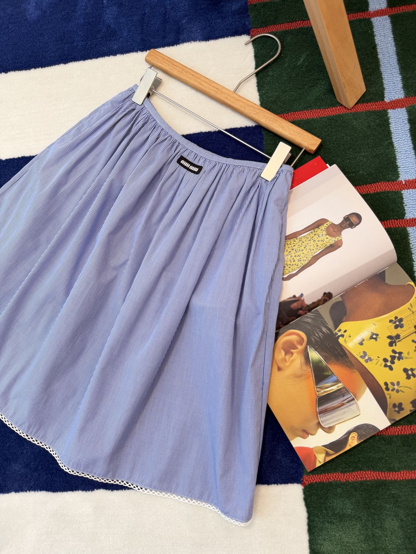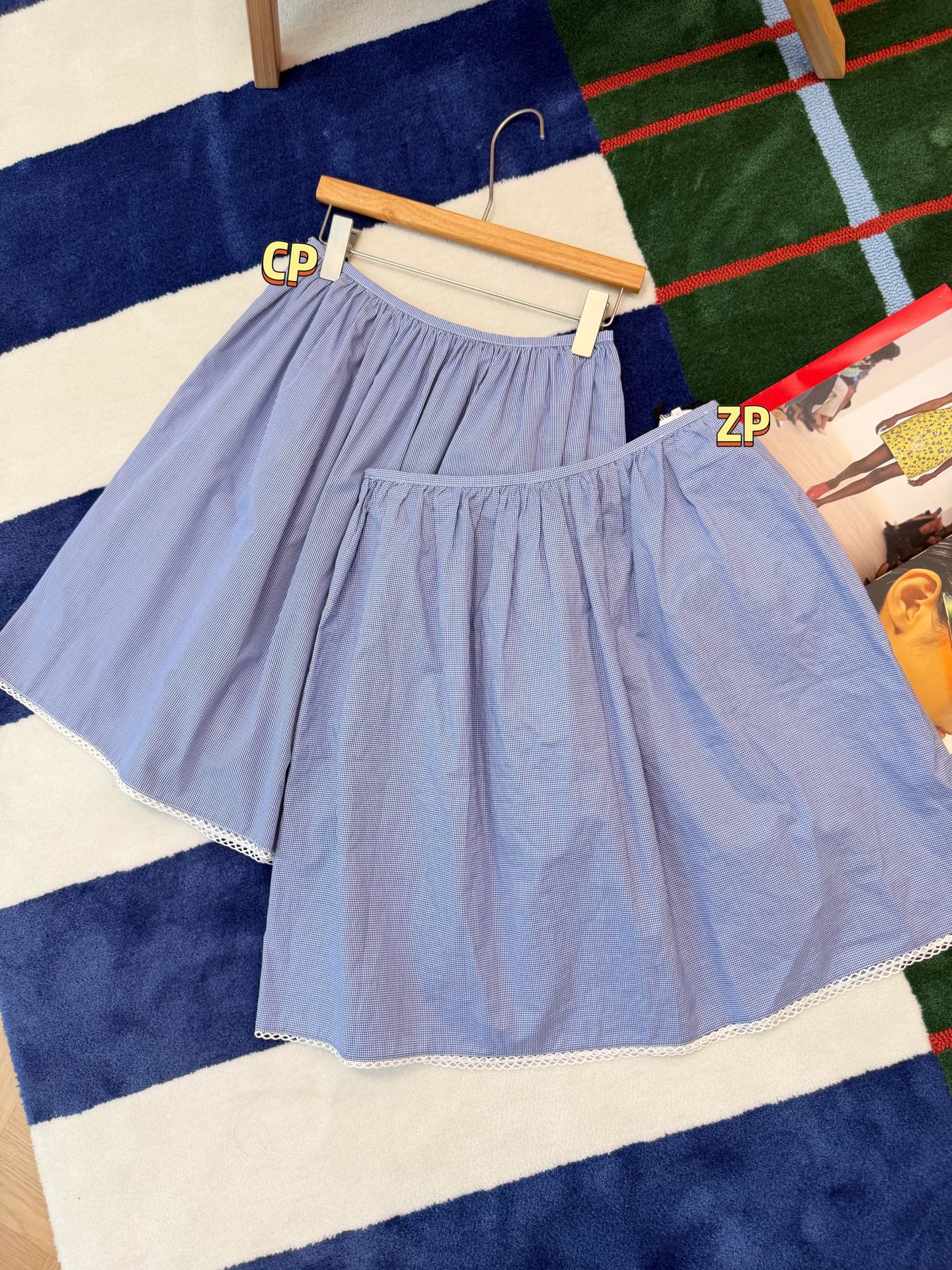 【新款发售】✔️浅蓝格纹半裙,温柔又灵动💙经典蓝白细格纹,自带清新学院风,减龄又耐看👍🏻精致花边点缀裙摆,细节感拉满,甜美又高级🎶宽松A字版型,修饰身形,遮胯显瘦,对各种身材都友好😜精选透气纯棉面料,柔软亲肤,夏日穿着清爽不闷汗💦单穿或搭配同系列衬衫都好看,轻松穿出氛围感💫温柔百搭不挑人💯码数SML
