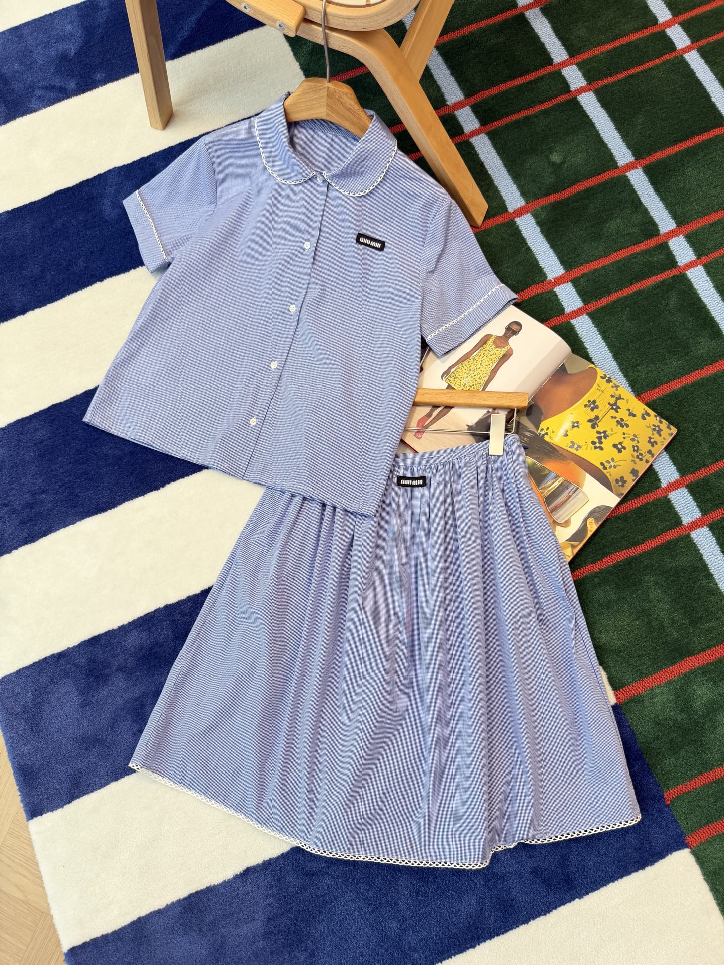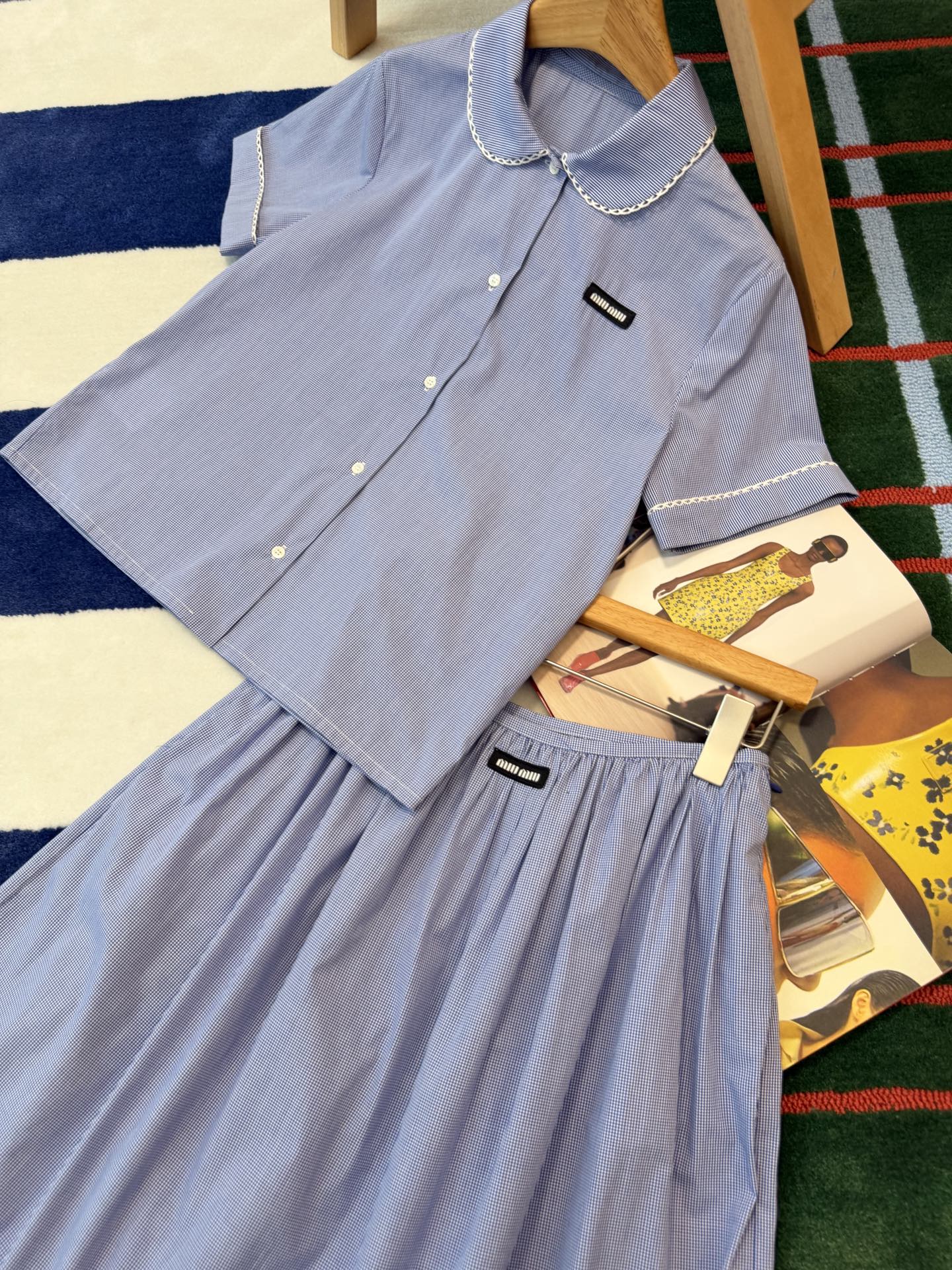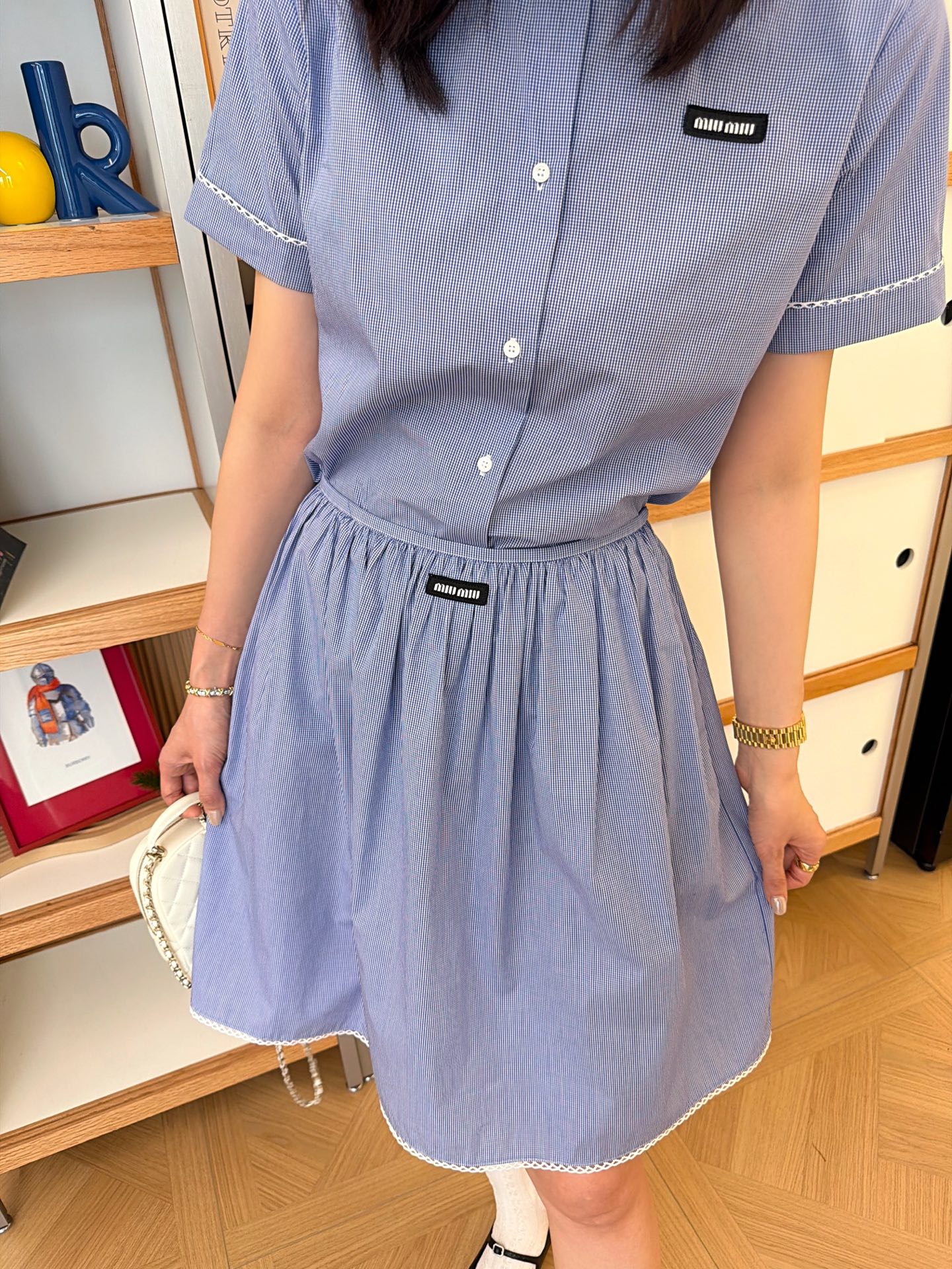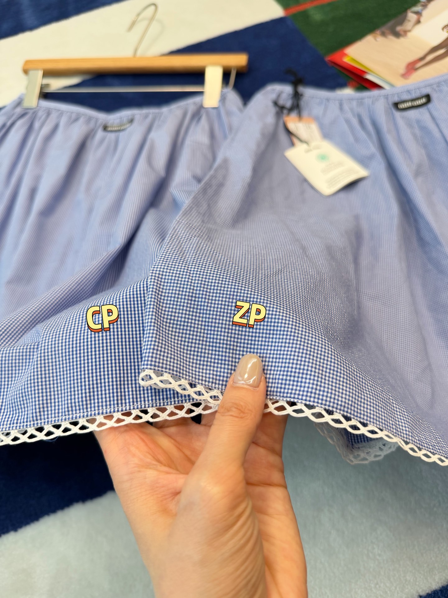 【新款发售】✔️浅蓝格纹半裙,温柔又灵动💙经典蓝白细格纹,自带清新学院风,减龄又耐看👍🏻精致花边点缀裙摆,细节感拉满,甜美又高级🎶宽松A字版型,修饰身形,遮胯显瘦,对各种身材都友好😜精选透气纯棉面料,柔软亲肤,夏日穿着清爽不闷汗💦单穿或搭配同系列衬衫都好看,轻松穿出氛围感💫温柔百搭不挑人💯码数SML