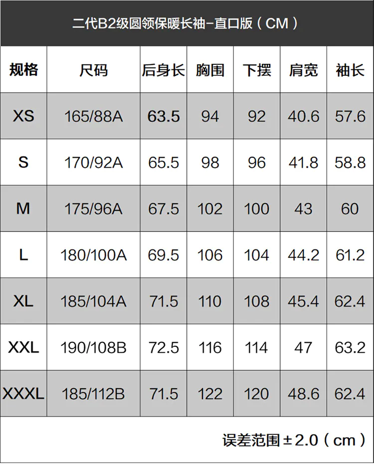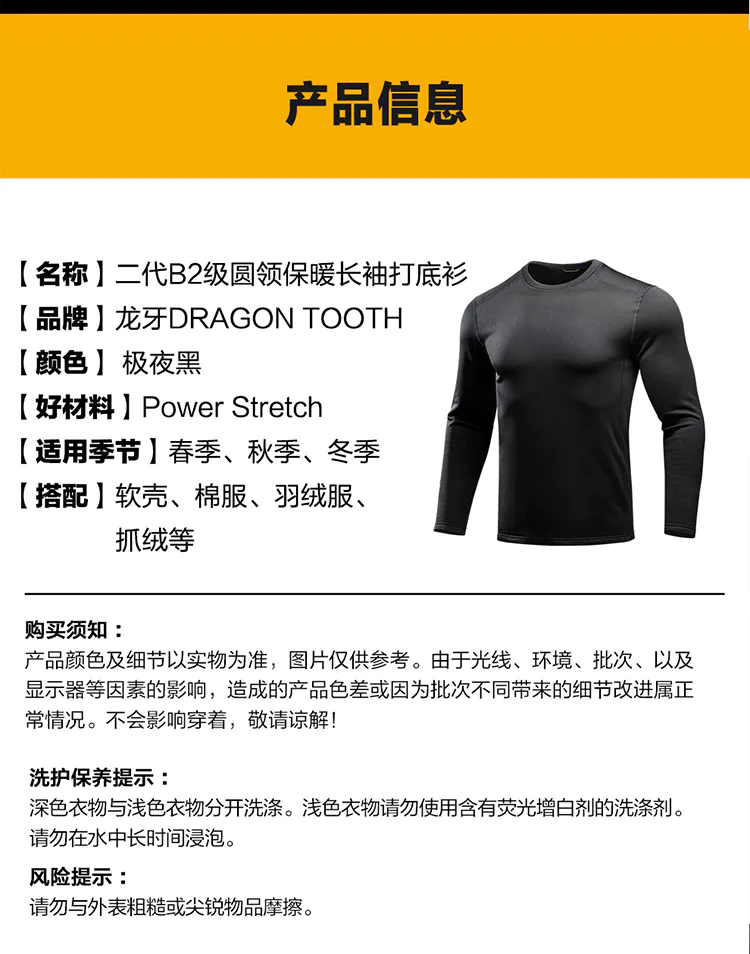 加强版二代B2级圆领保暖功能长袖打底衫加强版