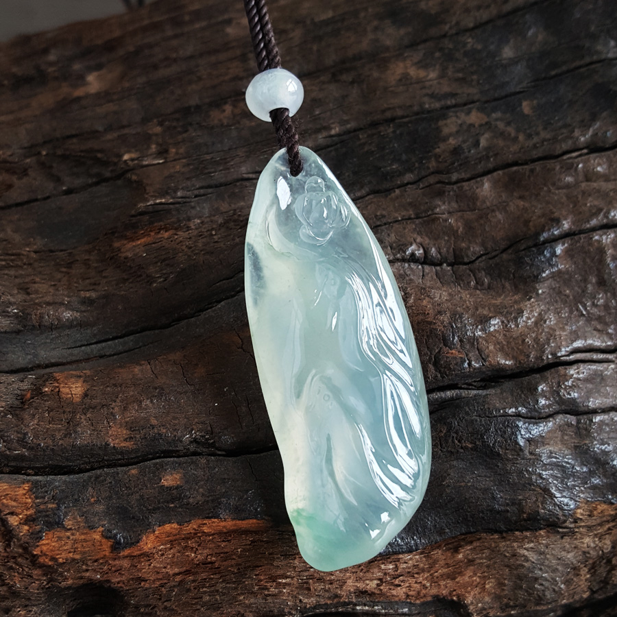 【天然正品】天然收藏级张青兰作品无杂裂冰种力争上游造型随形翡翠吊坠项链 111124XY01 现售价:16800!