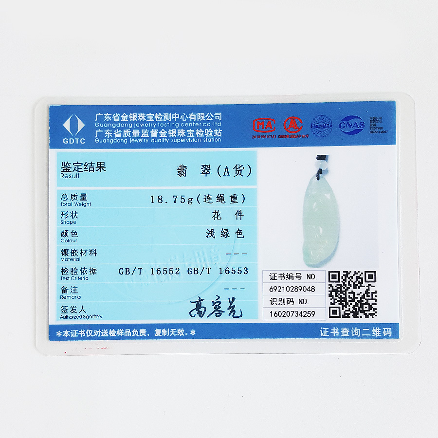 证书 | 广东省金银珠宝检测中心有限公司证书、张青兰收藏证书 |