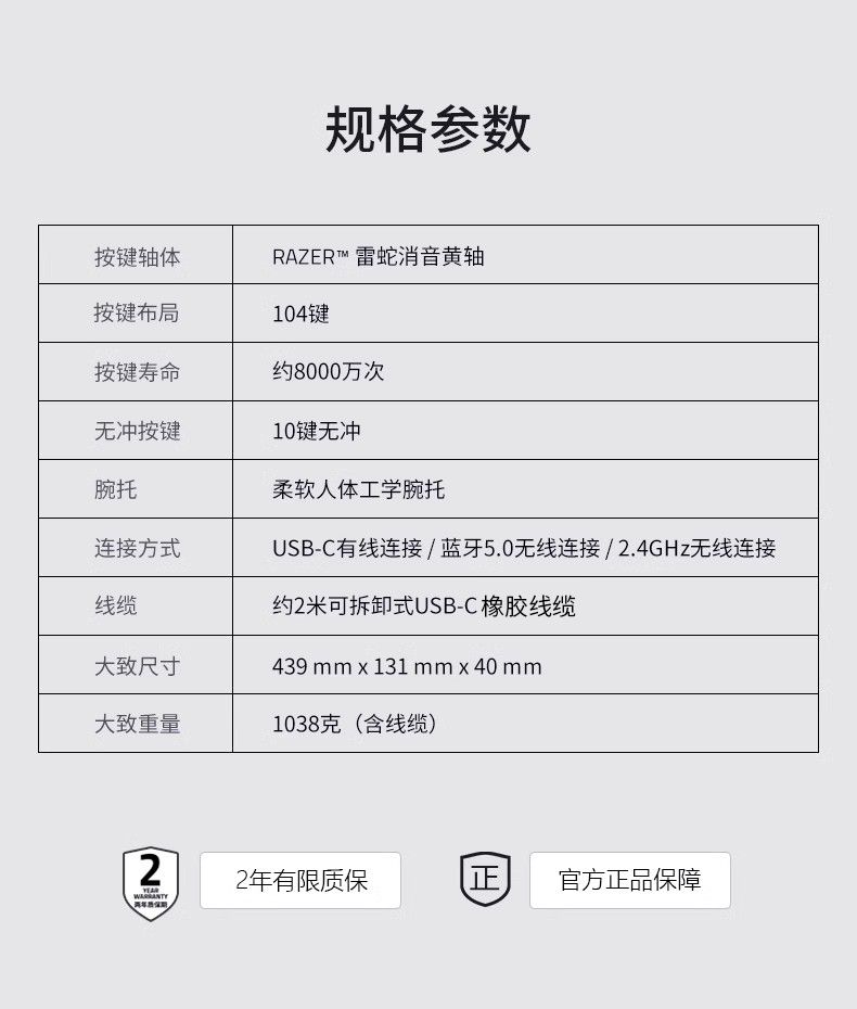 Razer雷蛇Pro Type Ultra键盘【雷蛇官方直营,3年有限质保】