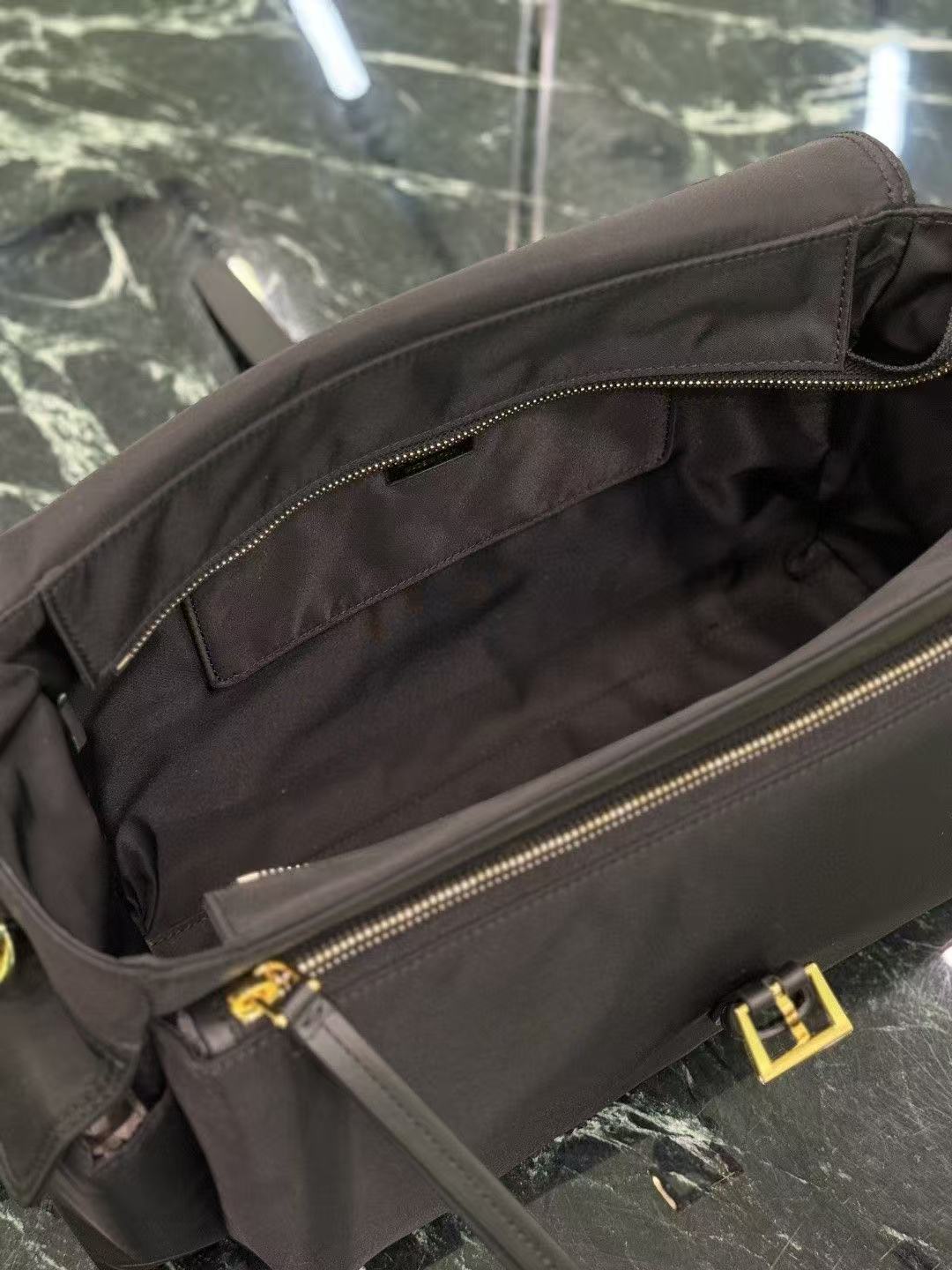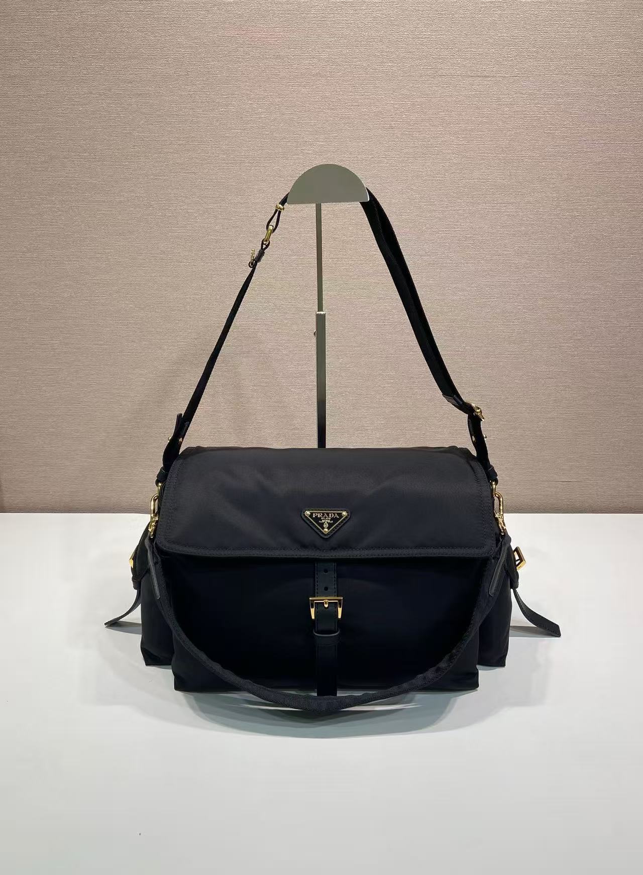 这款手袋完美融合精致与功能性,采用再生尼龙材质,轮廓柔和,配有多个口袋。轻盈实用的设计结合运动与百搭元素,饰有涂珐琅三角形金属徽标,搭配皮革细节。配有2条肩带可拆卸,男女通用!