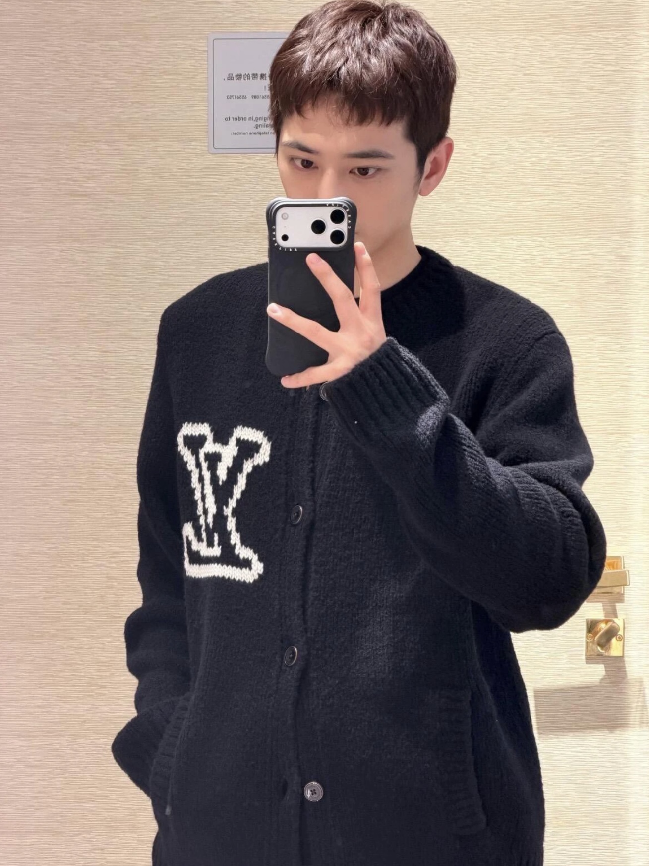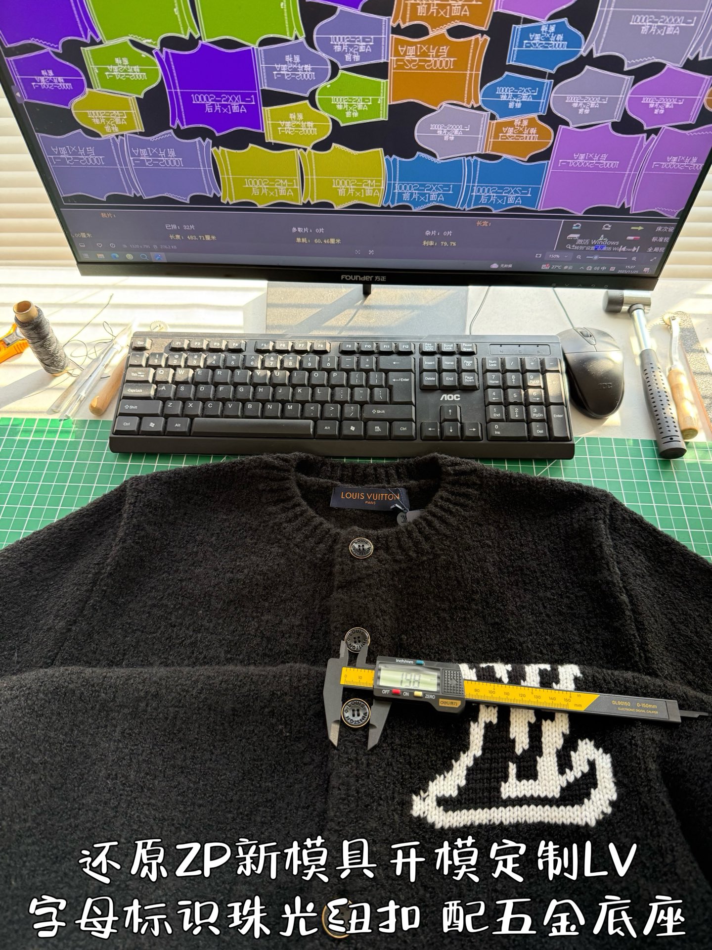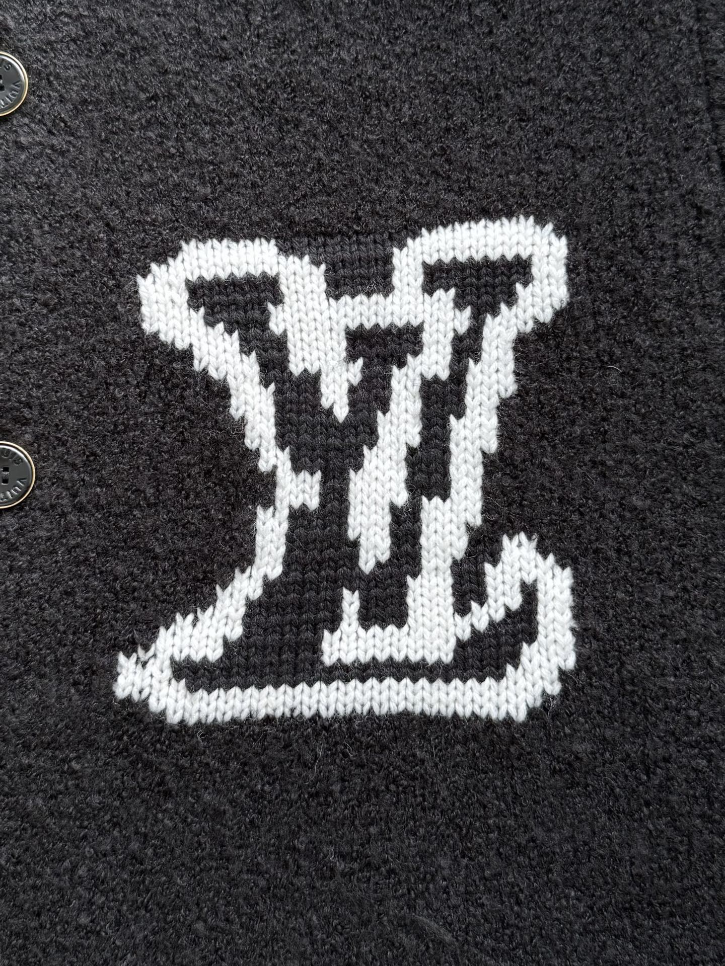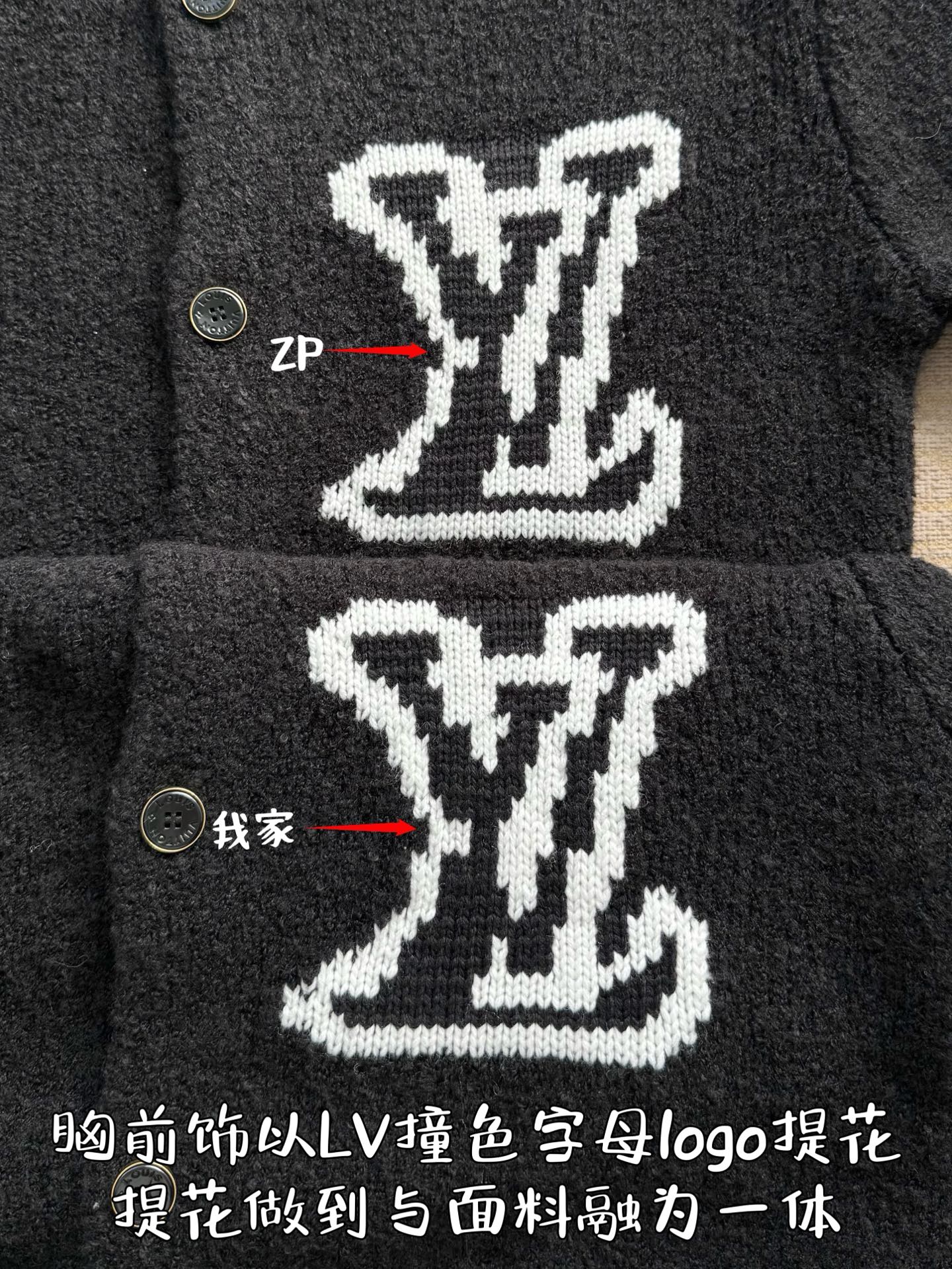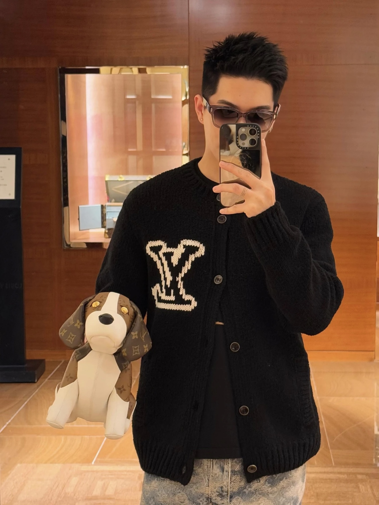 Louis Vuitton25FW 字母logo厚针嵌花针织开衫‼️整件衣服15100购买ZP拆解打造,采用定制绵羊毛混纺面料,意大利制造,胸前饰以LV 撞色字母logo提花,提花做到与面料融为一体,门襟开模定制LV字母标识珠光纽扣 配有五金底座,两边带有插袋,定织标志性罗纹领口 袖口 下摆 袋口,超紧密度局部编织,真正做到1:1copy 码数:S M L XL
