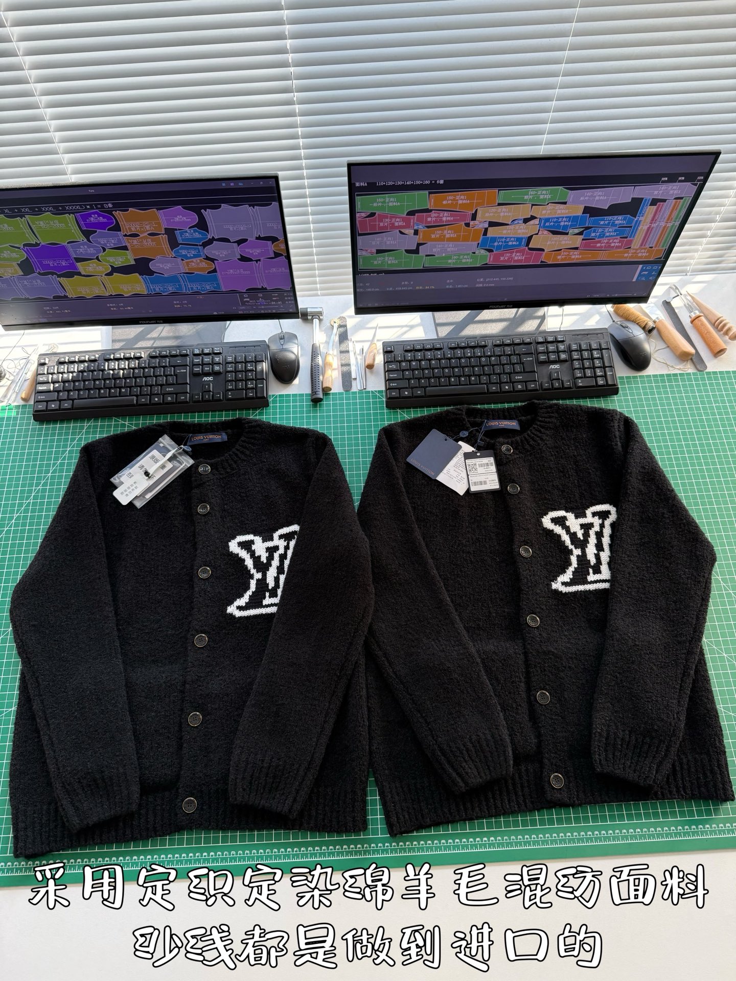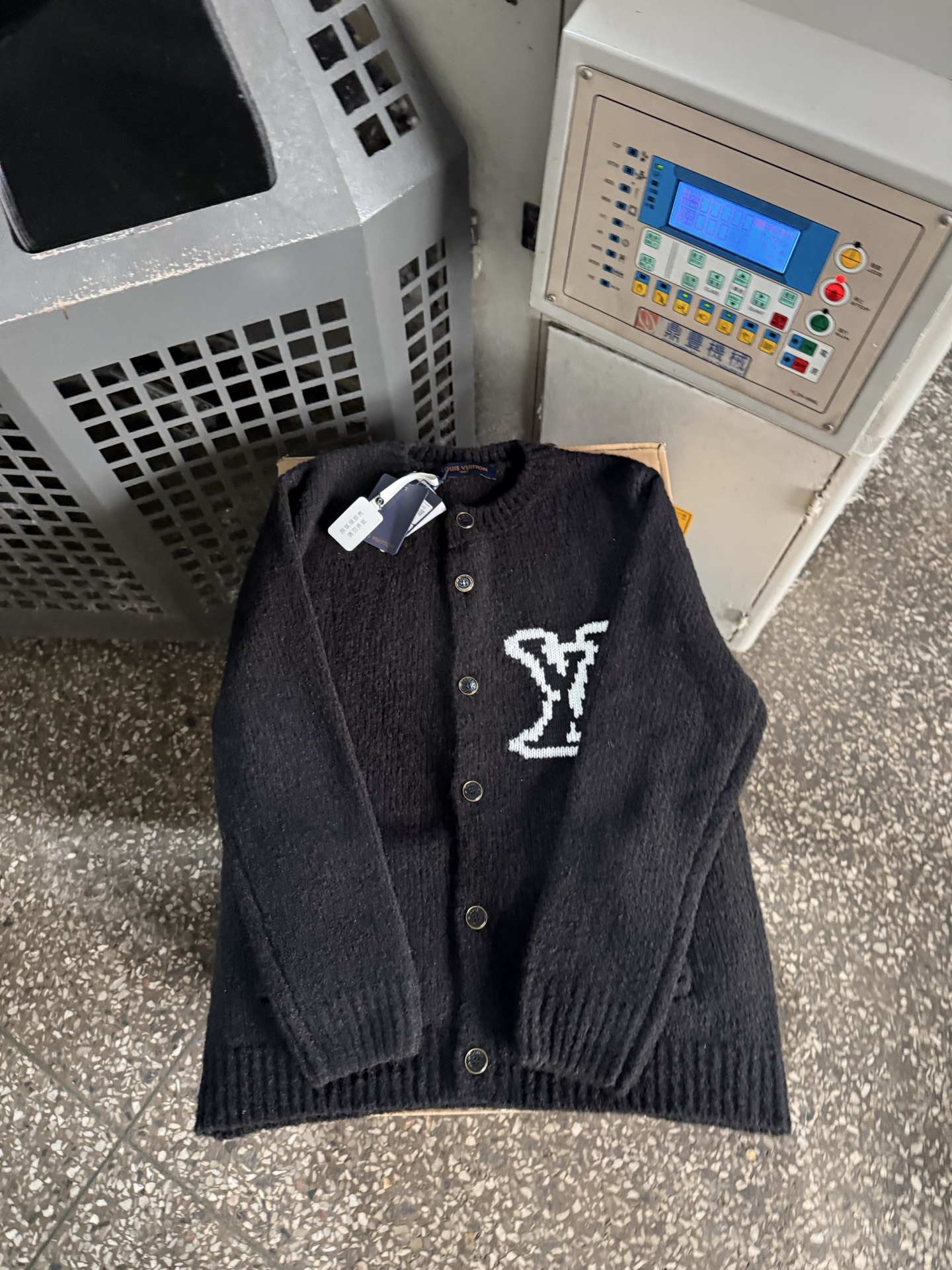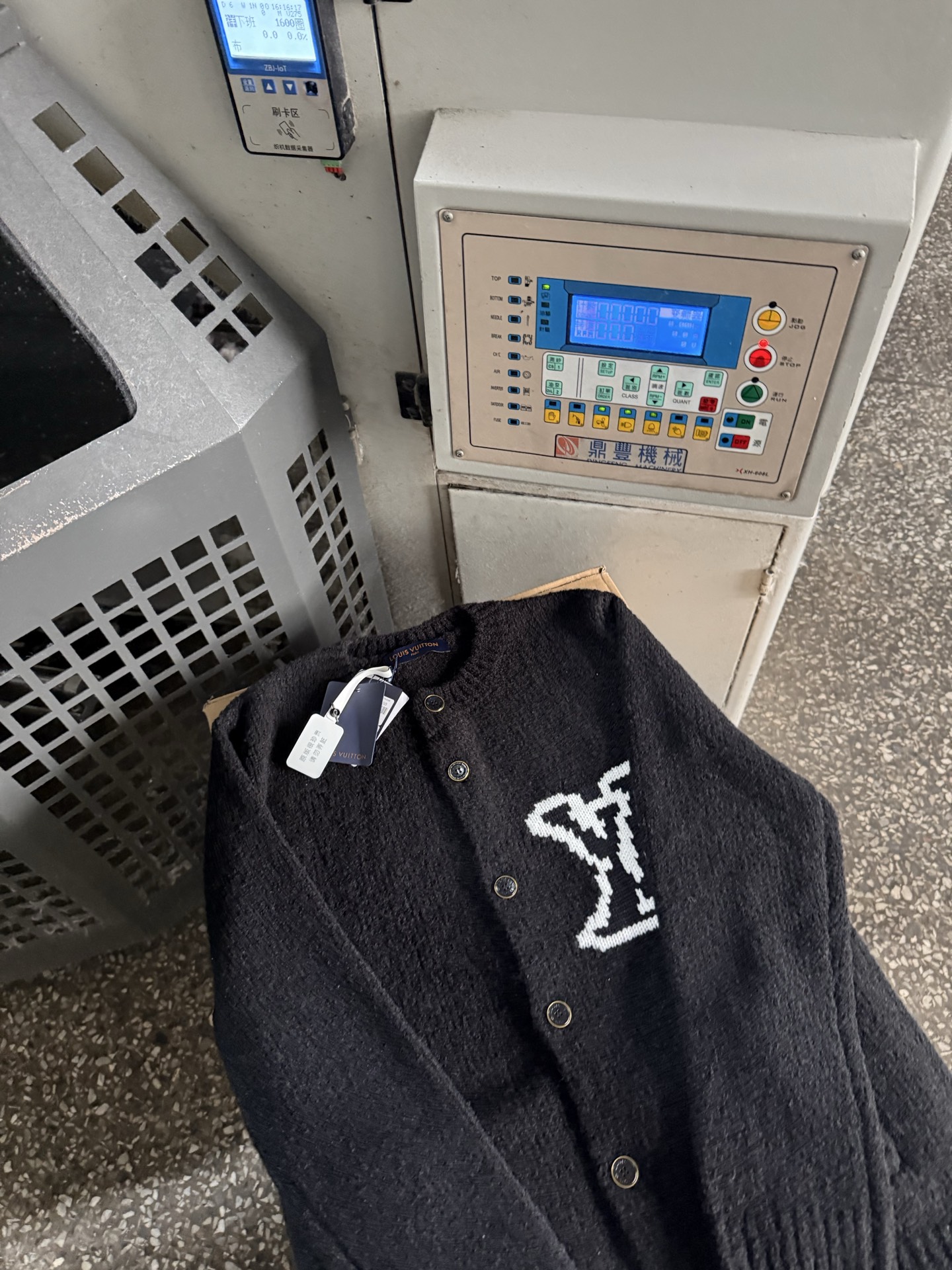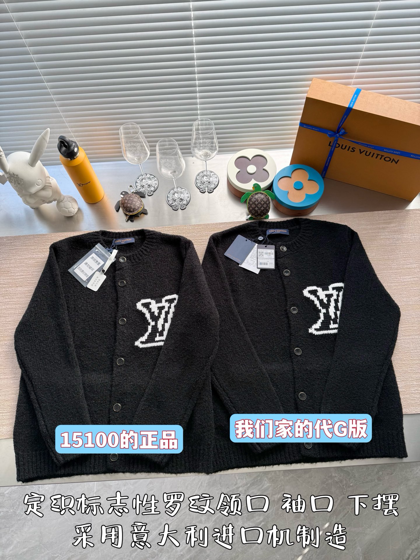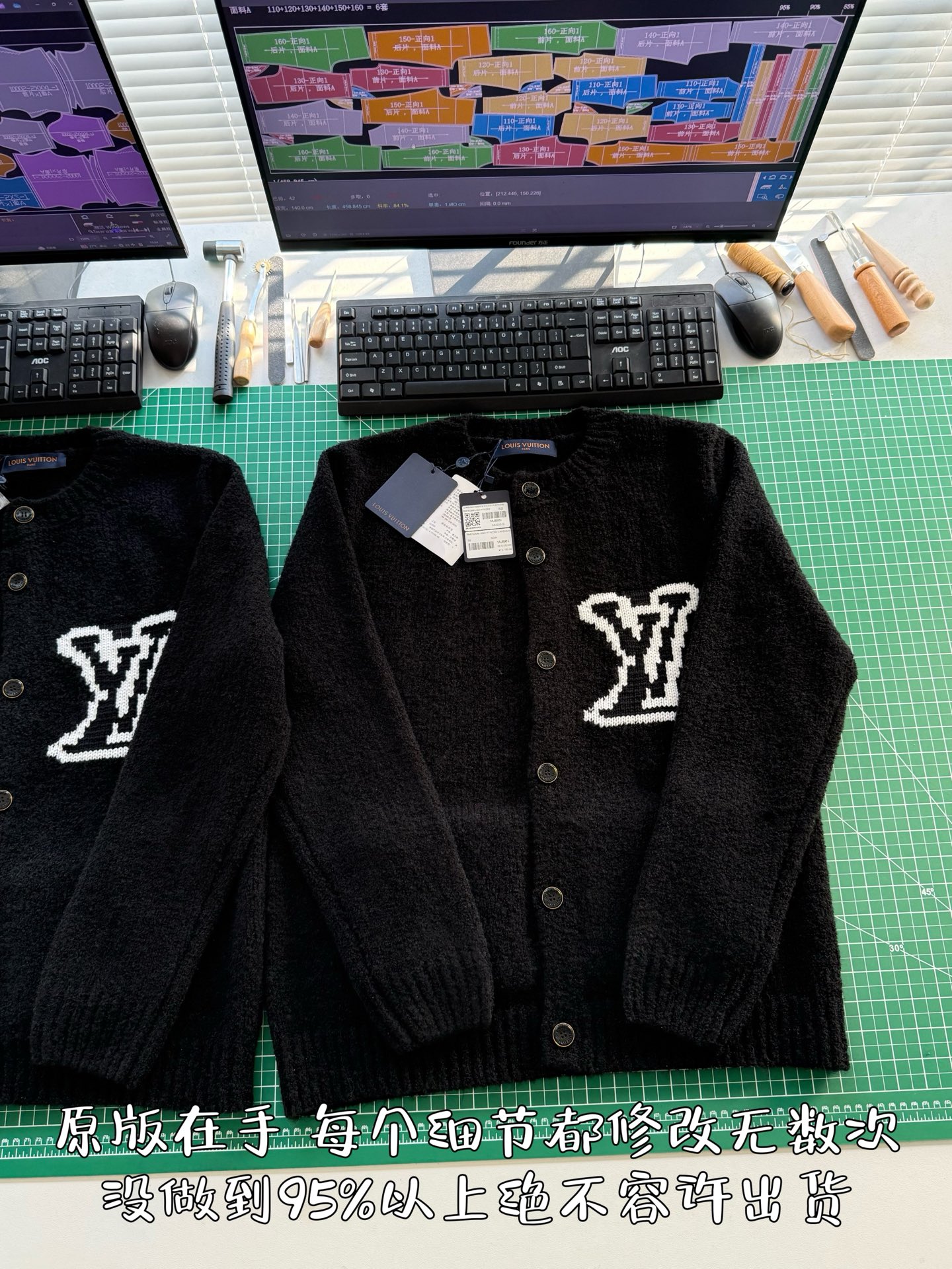 Louis Vuitton25FW 字母logo厚针嵌花针织开衫‼️整件衣服15100购买ZP拆解打造,采用定制绵羊毛混纺面料,意大利制造,胸前饰以LV 撞色字母logo提花,提花做到与面料融为一体,门襟开模定制LV字母标识珠光纽扣 配有五金底座,两边带有插袋,定织标志性罗纹领口 袖口 下摆 袋口,超紧密度局部编织,真正做到1:1copy 码数:S M L XL