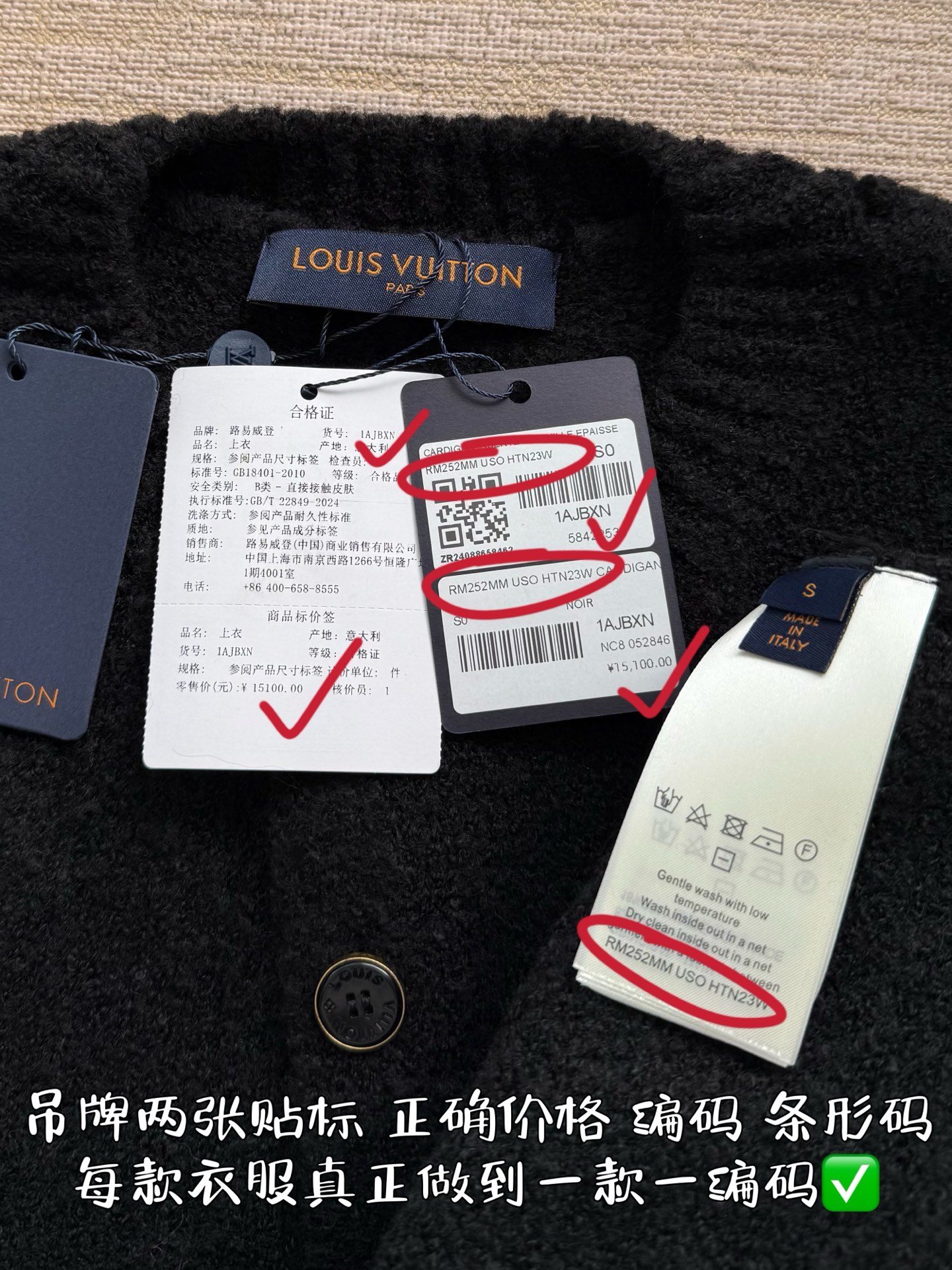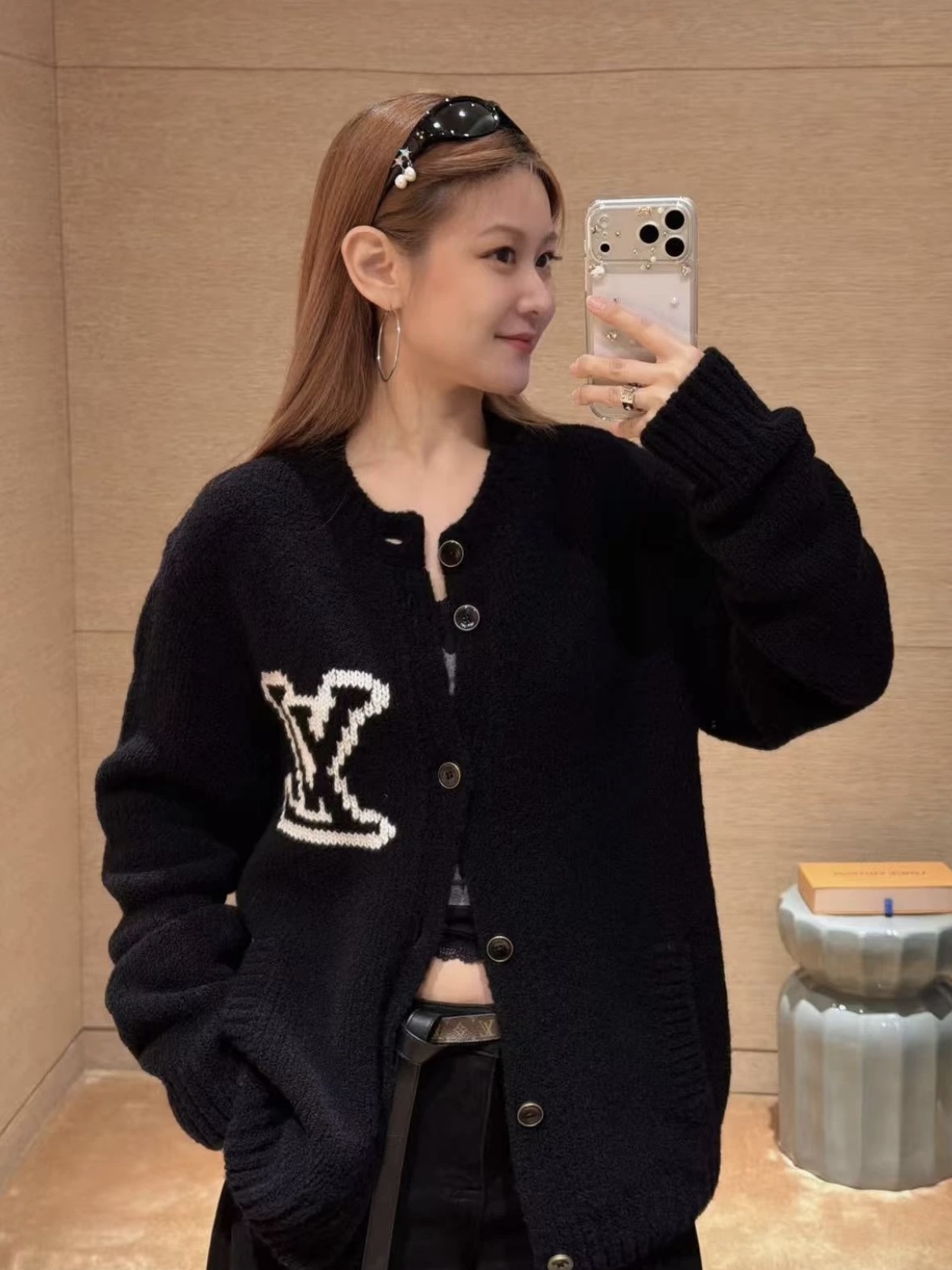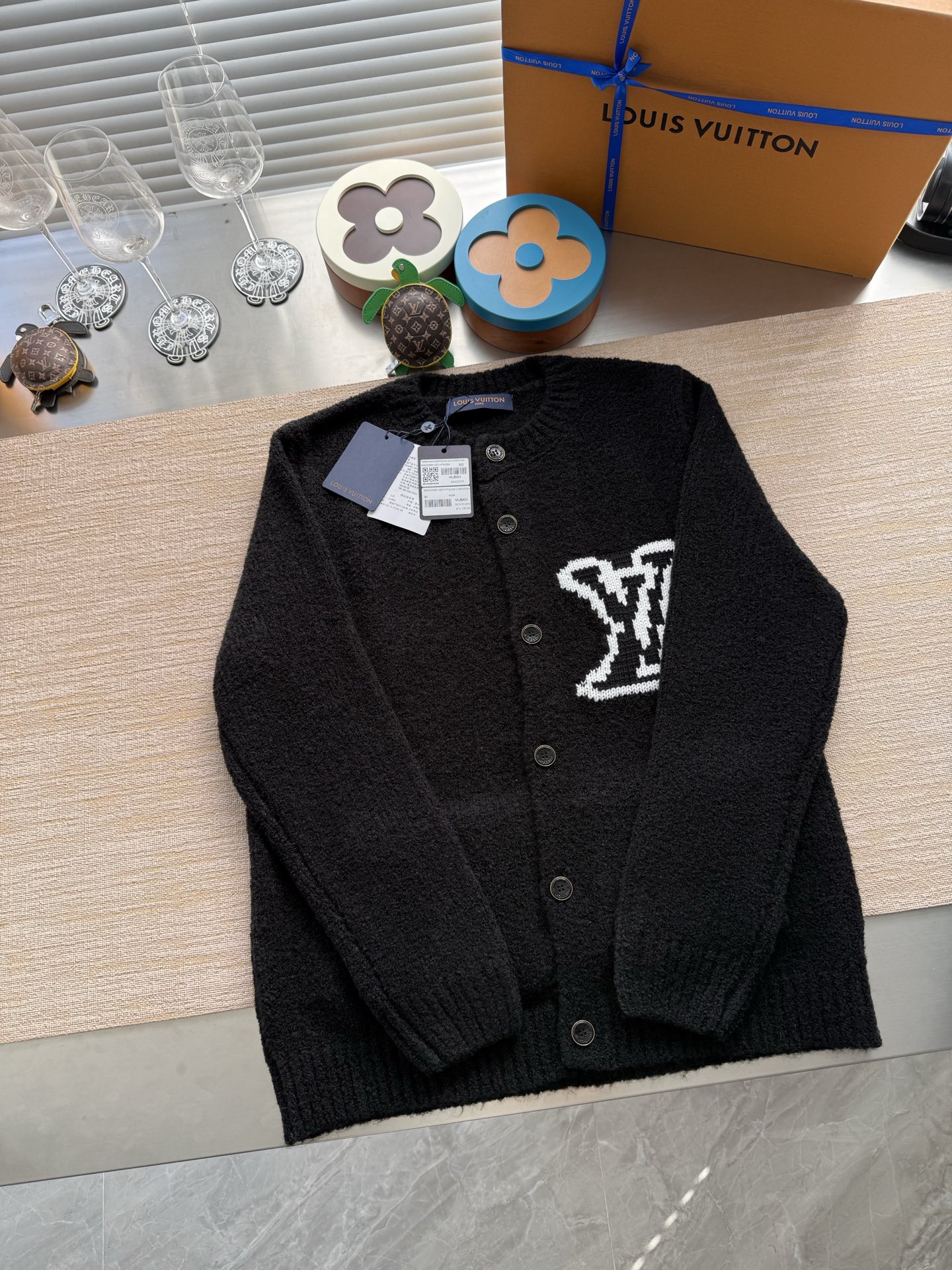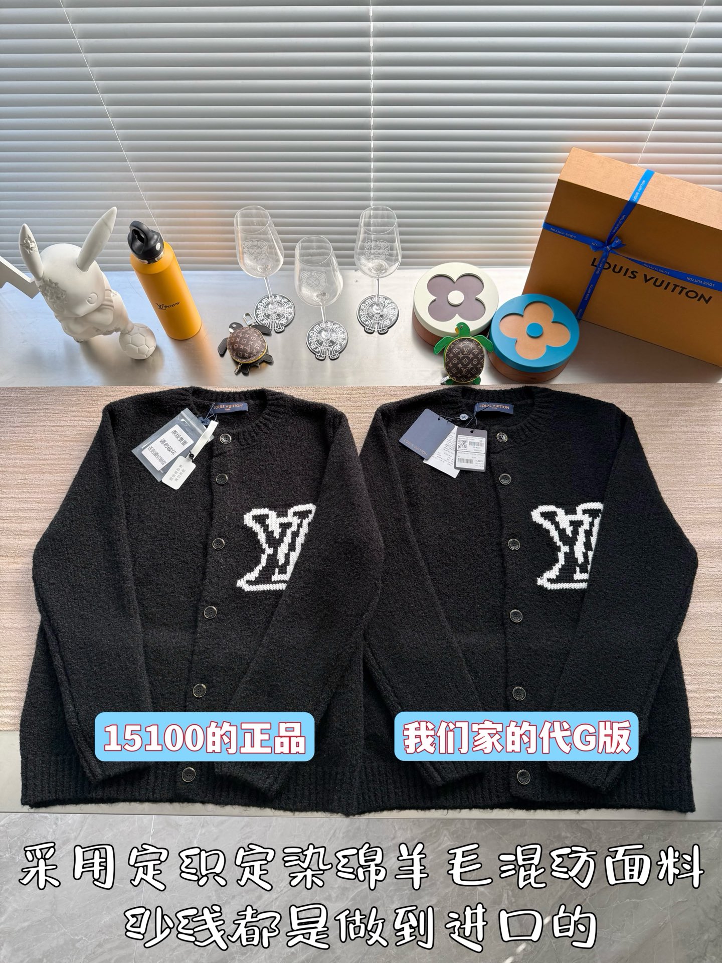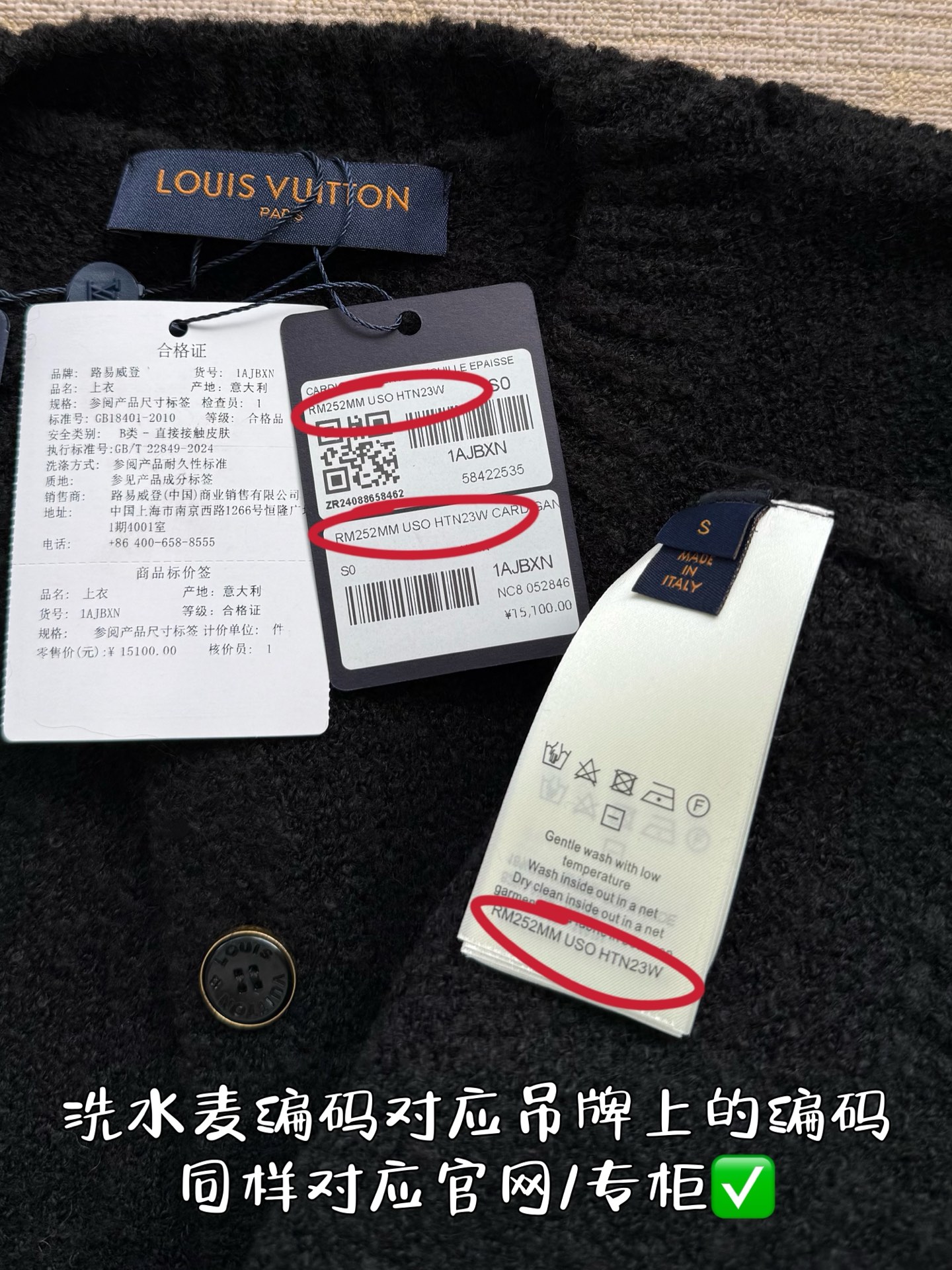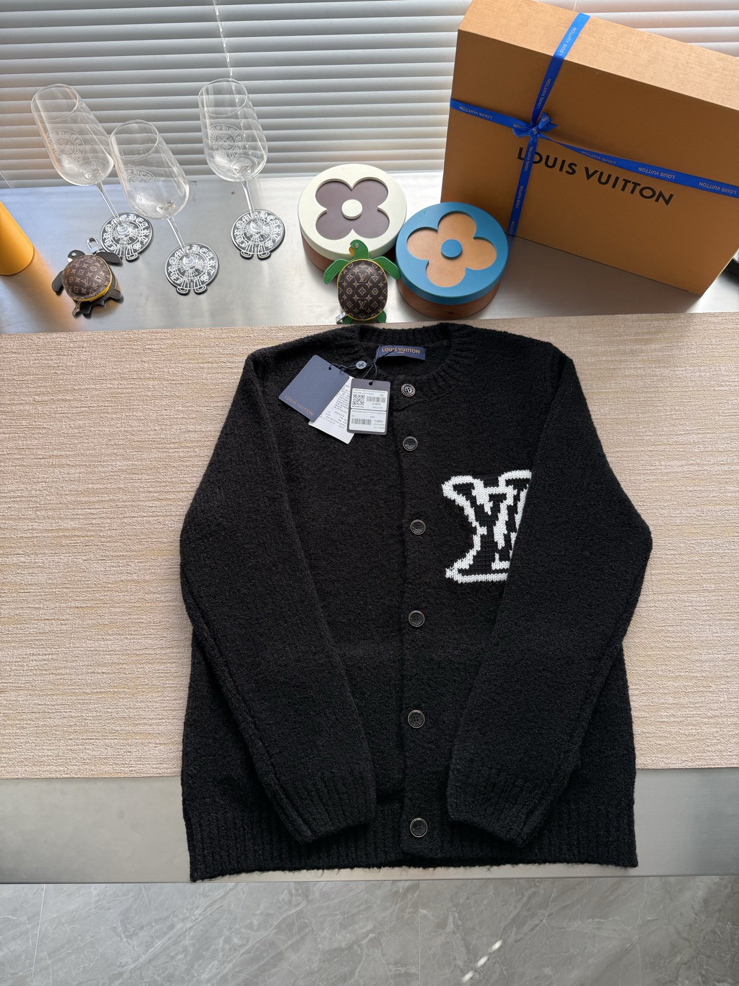 Louis Vuitton25FW 字母logo厚针嵌花针织开衫‼️整件衣服15100购买ZP拆解打造,采用定制绵羊毛混纺面料,意大利制造,胸前饰以LV 撞色字母logo提花,提花做到与面料融为一体,门襟开模定制LV字母标识珠光纽扣 配有五金底座,两边带有插袋,定织标志性罗纹领口 袖口 下摆 袋口,超紧密度局部编织,真正做到1:1copy 码数:S M L XL