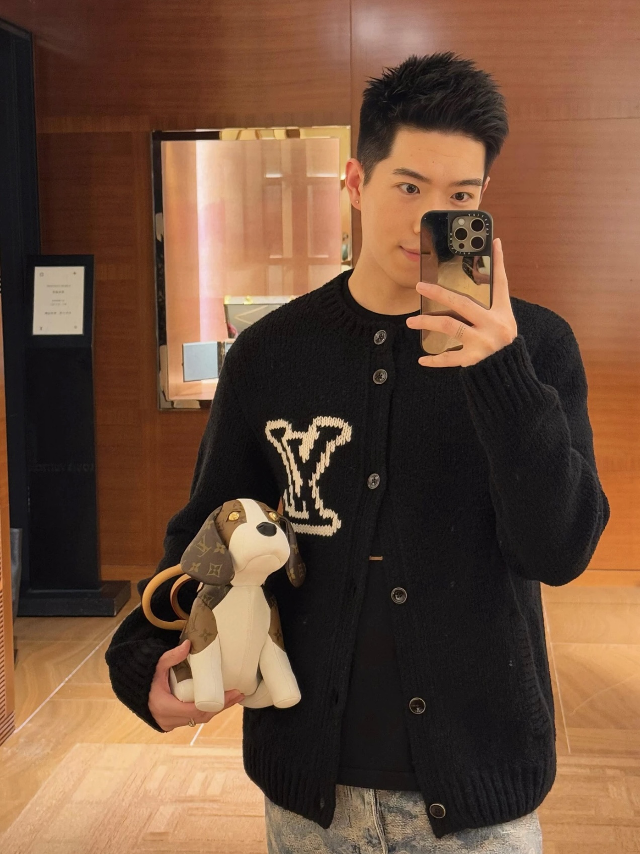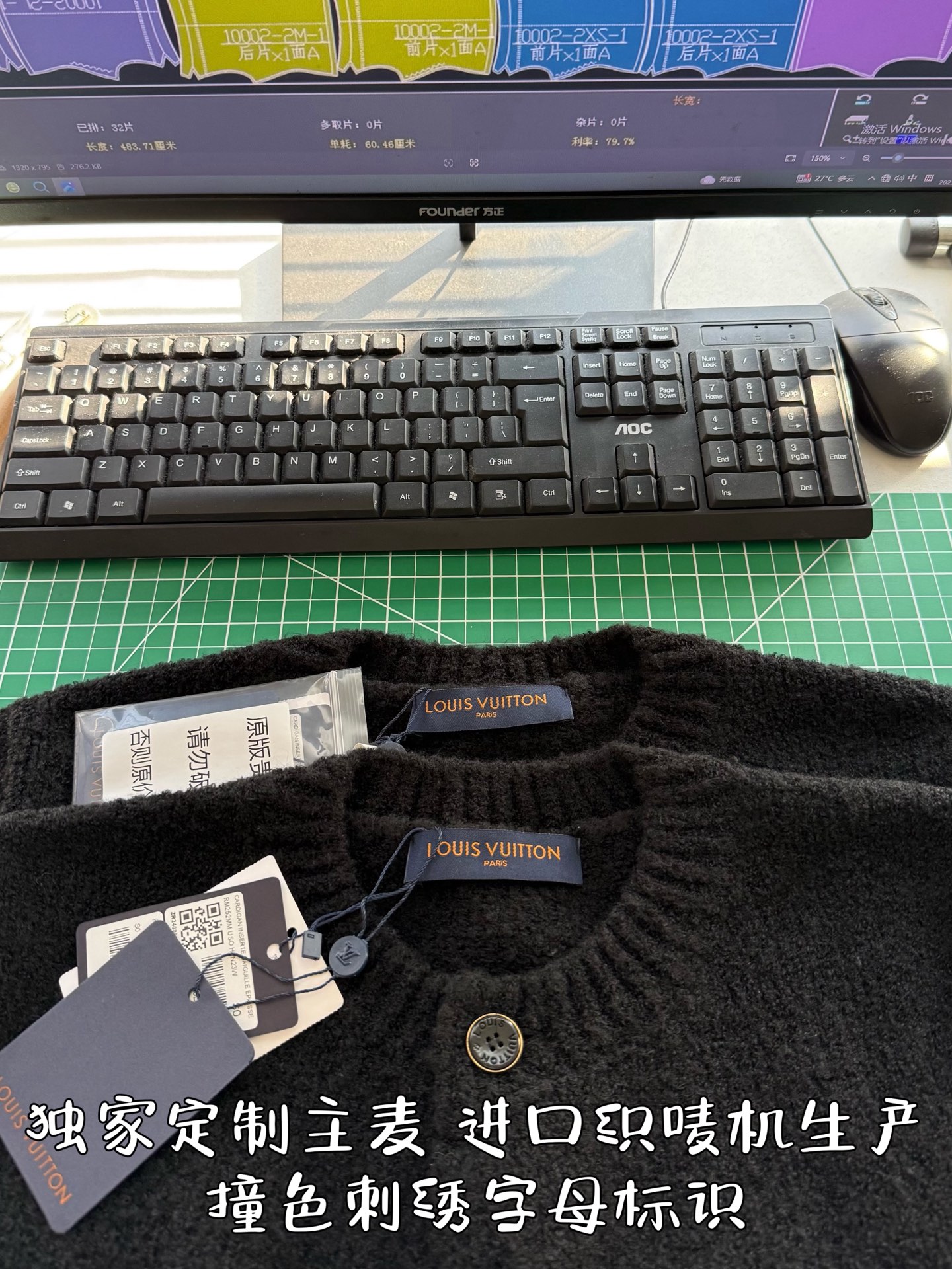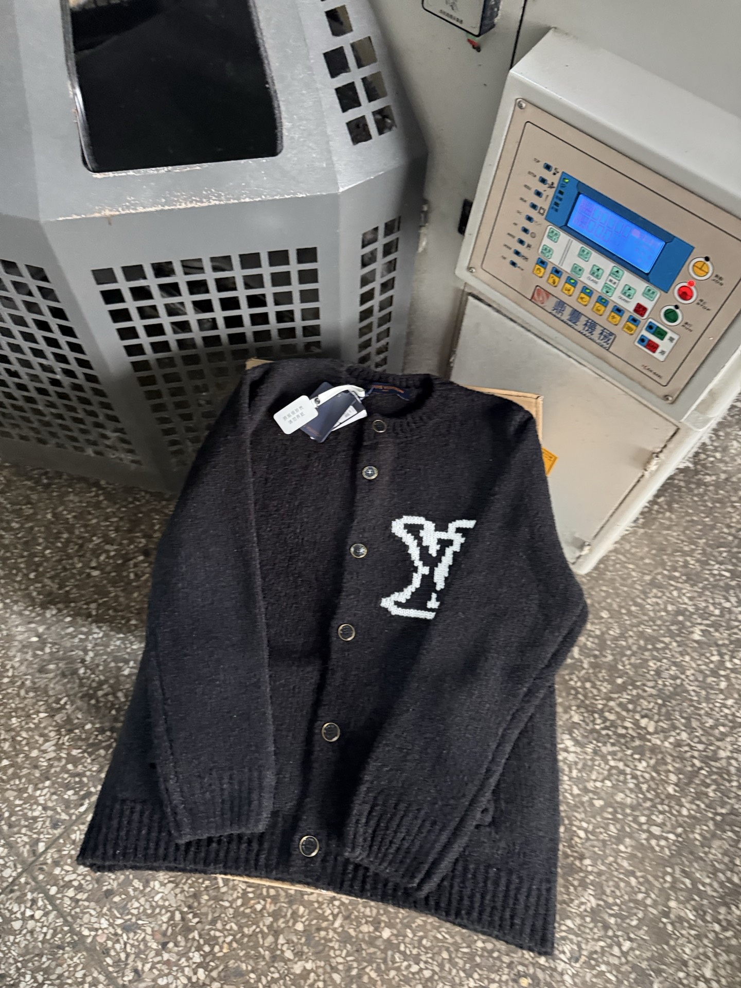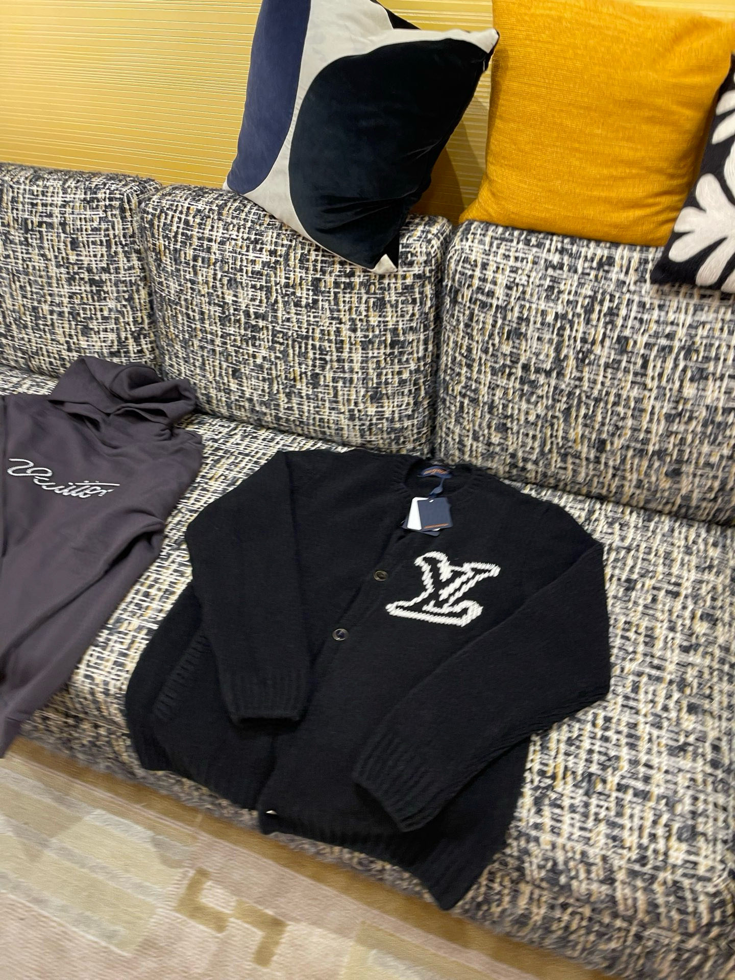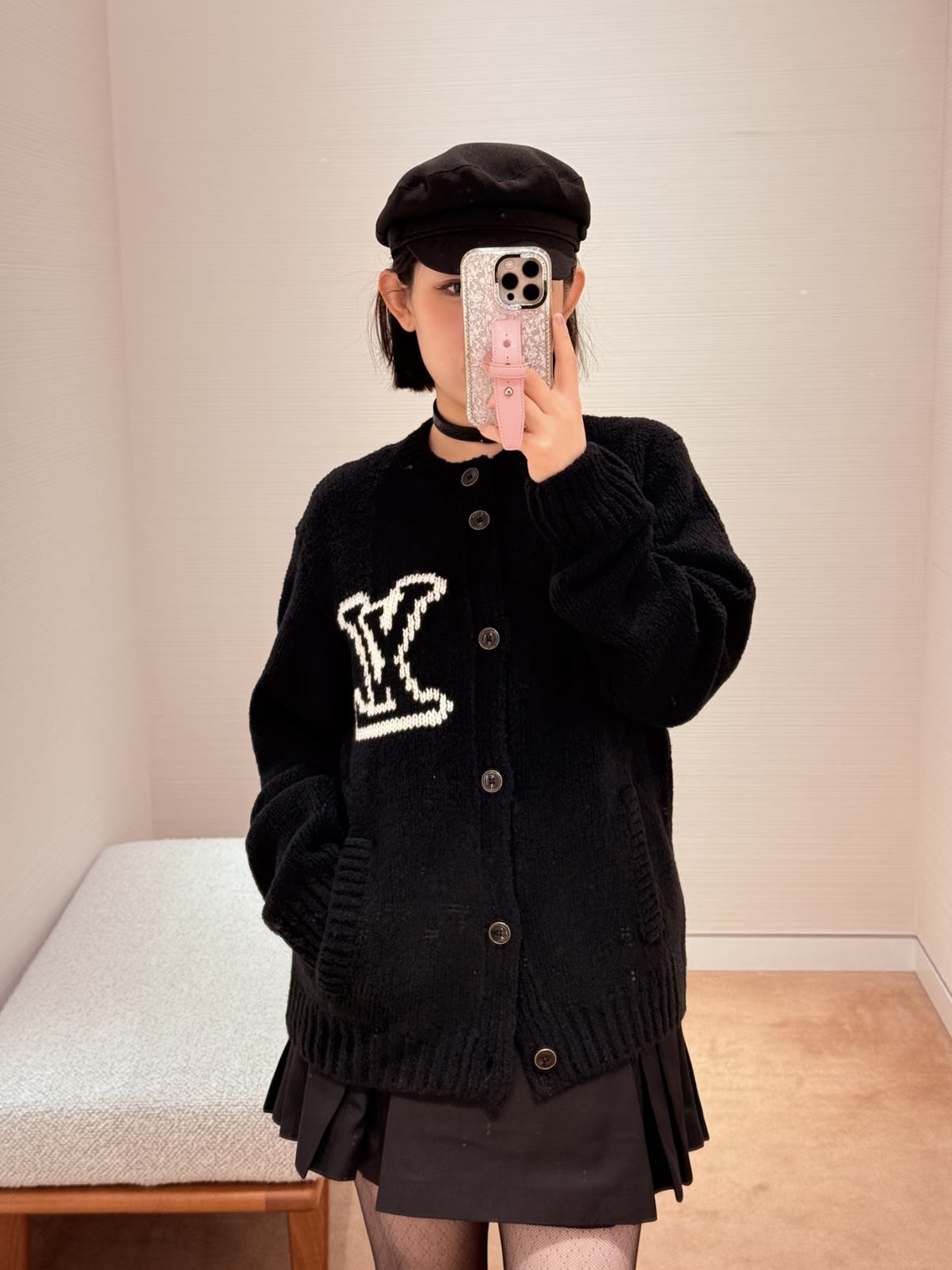 Louis Vuitton25FW 字母logo厚针嵌花针织开衫‼️整件衣服15100购买ZP拆解打造,采用定制绵羊毛混纺面料,意大利制造,胸前饰以LV 撞色字母logo提花,提花做到与面料融为一体,门襟开模定制LV字母标识珠光纽扣 配有五金底座,两边带有插袋,定织标志性罗纹领口 袖口 下摆 袋口,超紧密度局部编织,真正做到1:1copy 码数:S M L XL