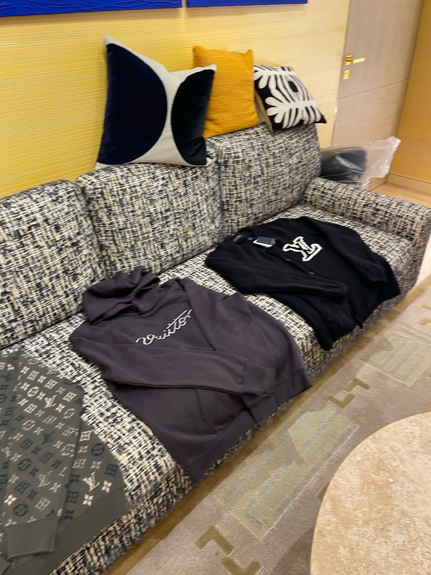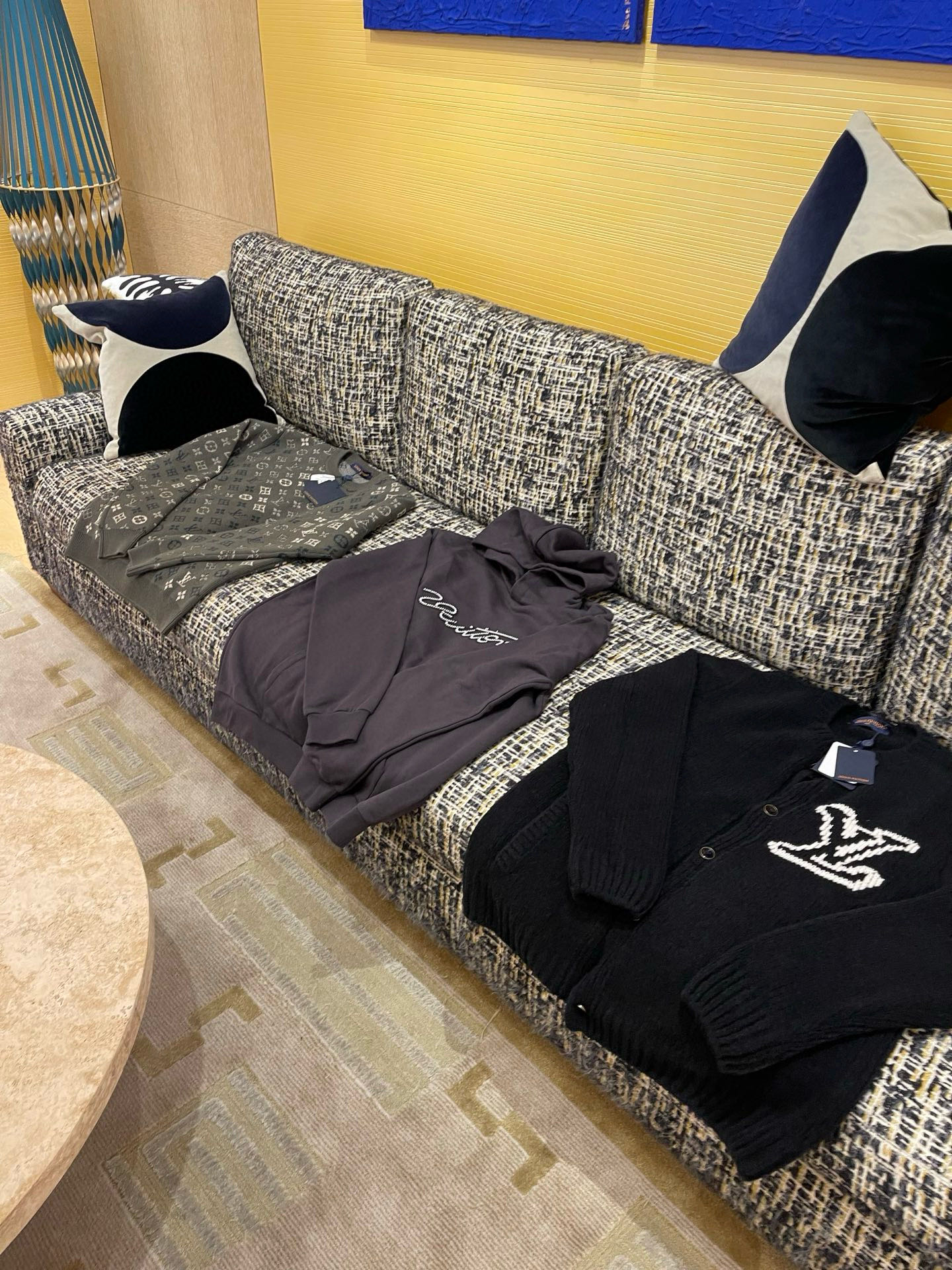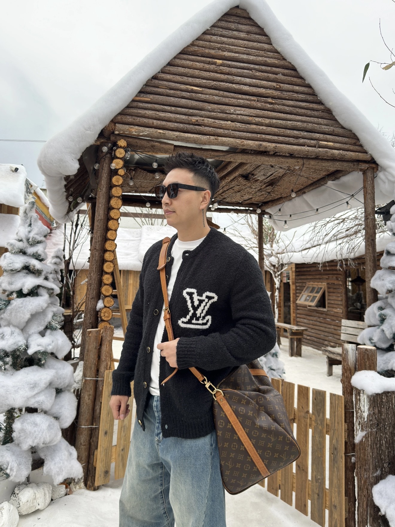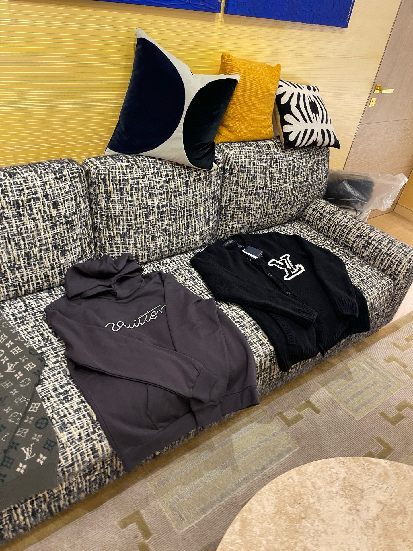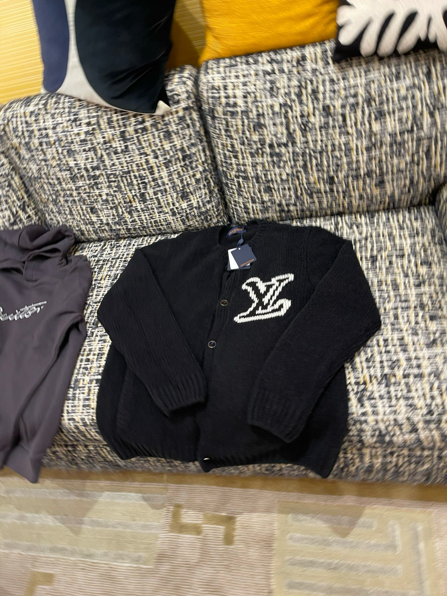Louis Vuitton25FW 字母logo厚针嵌花针织开衫‼️整件衣服15100购买ZP拆解打造,采用定制绵羊毛混纺面料,意大利制造,胸前饰以LV 撞色字母logo提花,提花做到与面料融为一体,门襟开模定制LV字母标识珠光纽扣 配有五金底座,两边带有插袋,定织标志性罗纹领口 袖口 下摆 袋口,超紧密度局部编织,真正做到1:1copy 码数:S M L XL