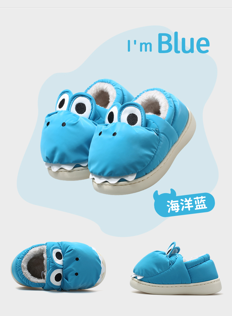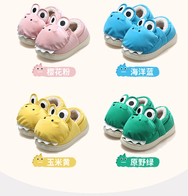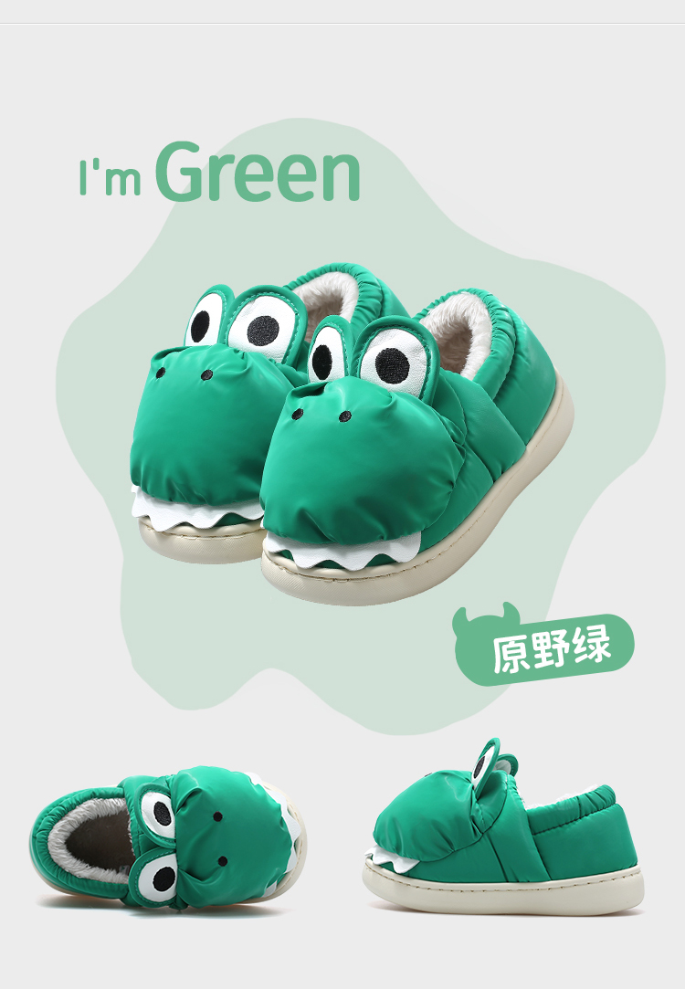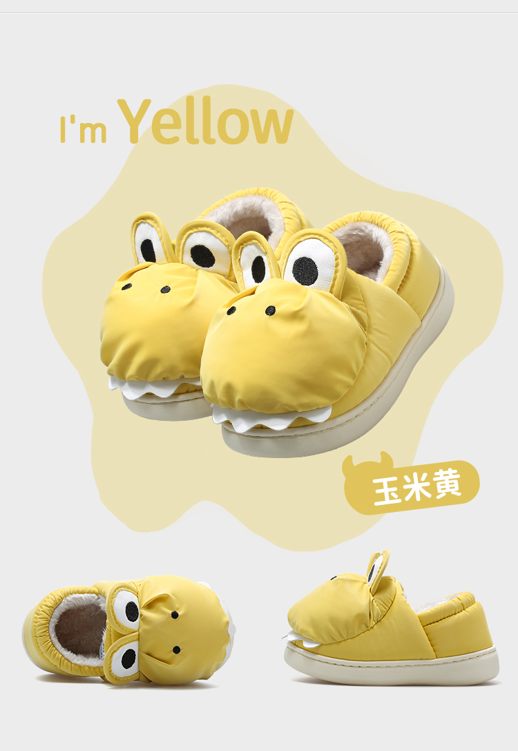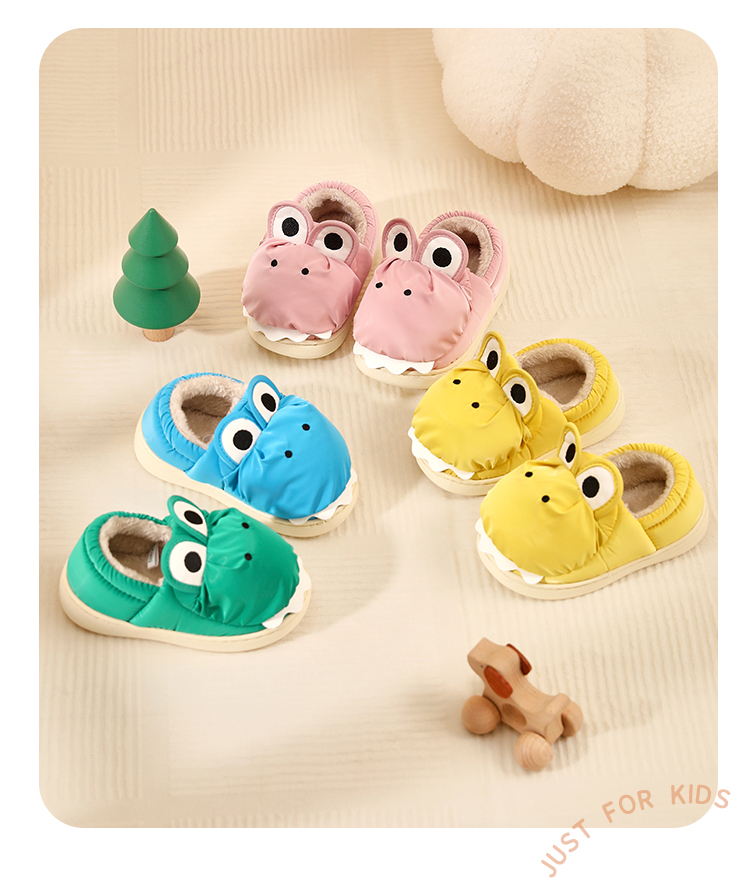 牧童小恐龙棉拖鞋男童儿童拖鞋女童冬季轻便室内卡通加绒保暖棉鞋