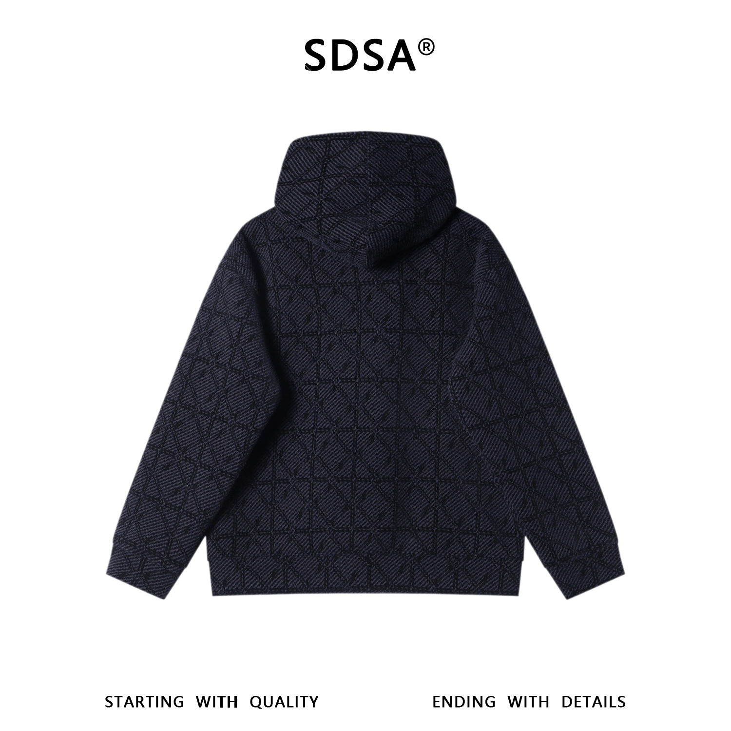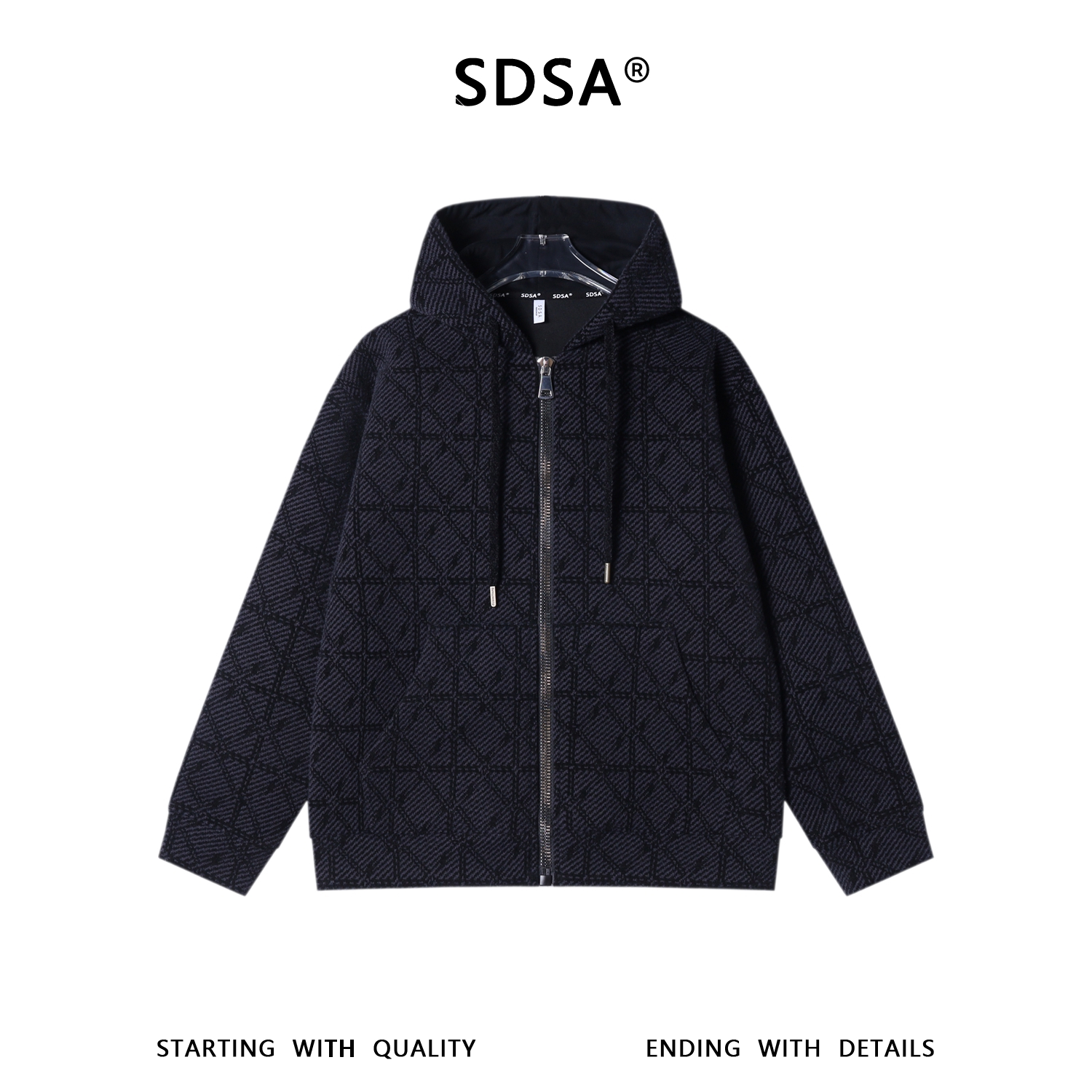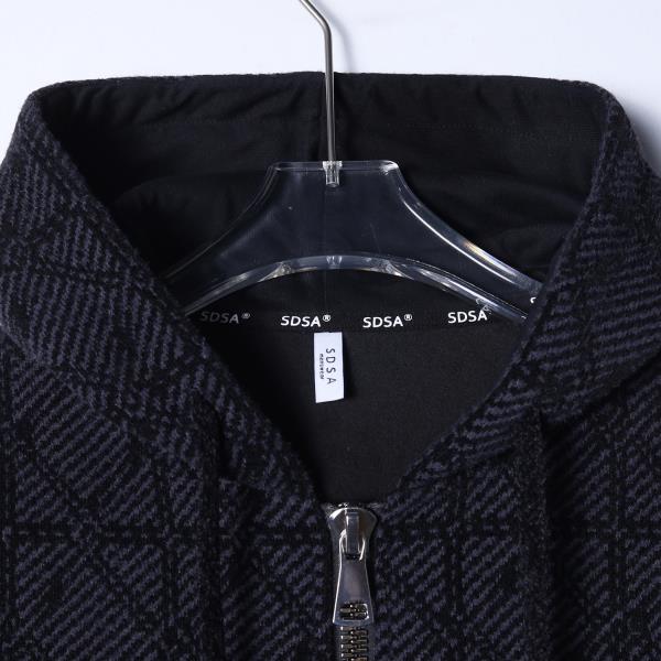 SDSA秋冬新款痞帅男装潮流高街提花格子撞色拉链连帽卫衣外套百搭