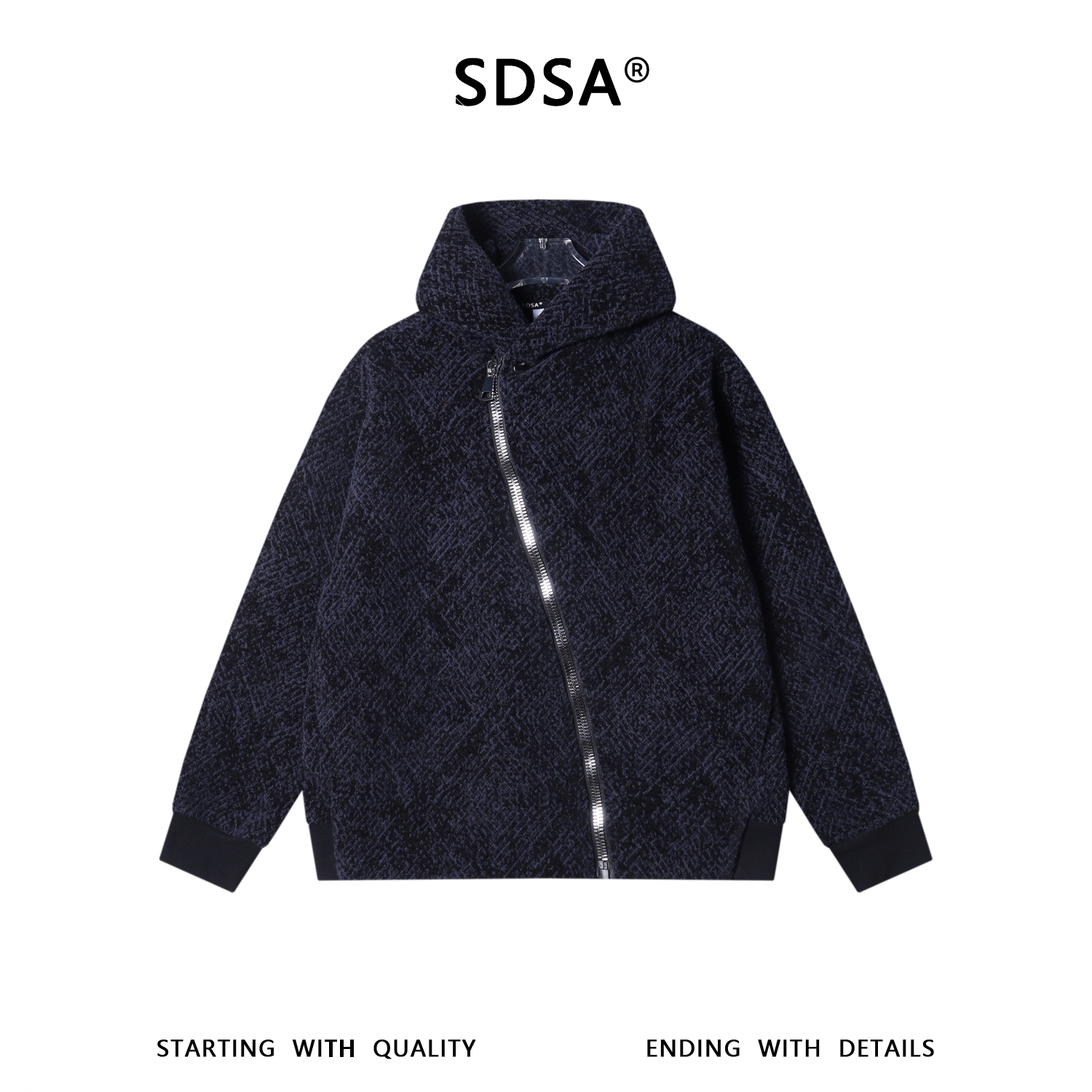 SDSA男士秋冬新款痞帅男装简约菱形格纹斜拉链连帽卫衣百搭时尚