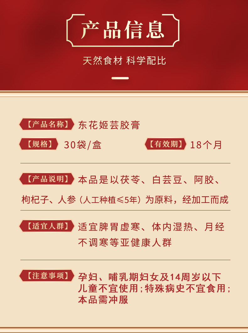 东花姬芸胶膏【五盒装】传统熬制袋装气色女茯苓枸杞东花姫膏