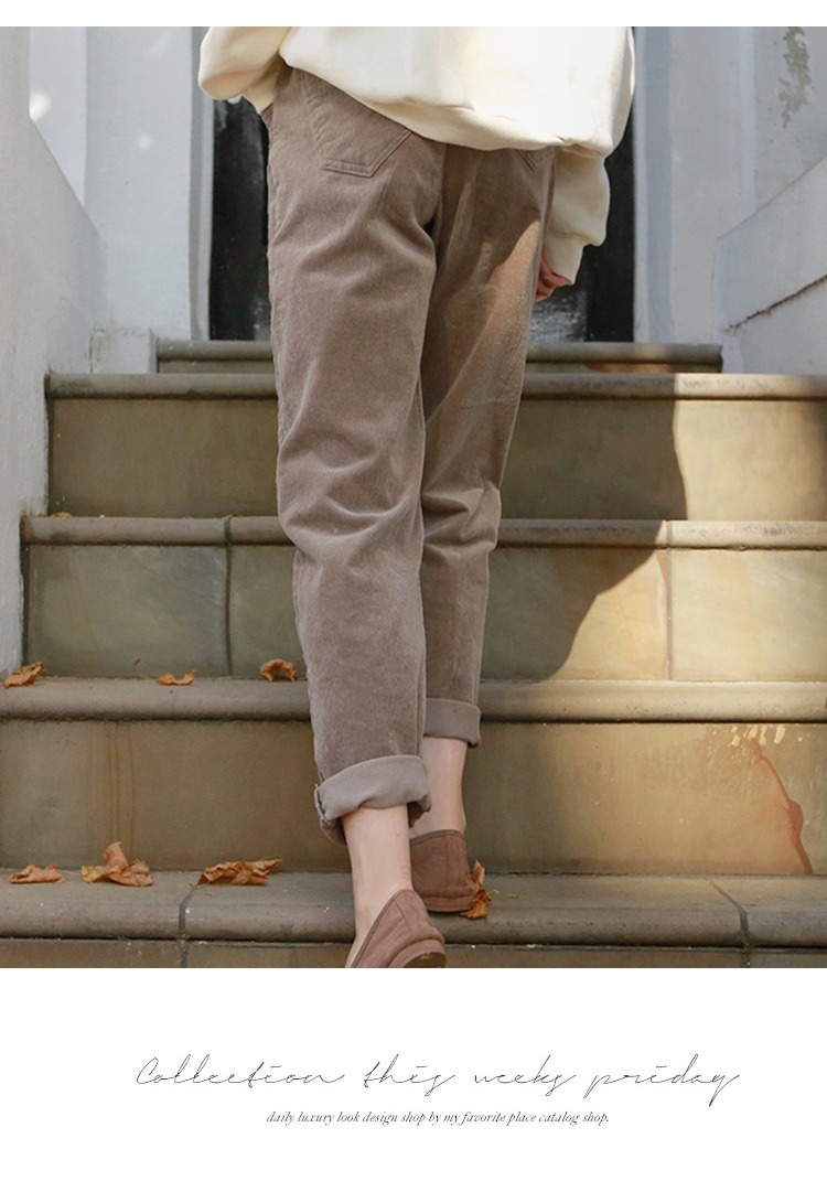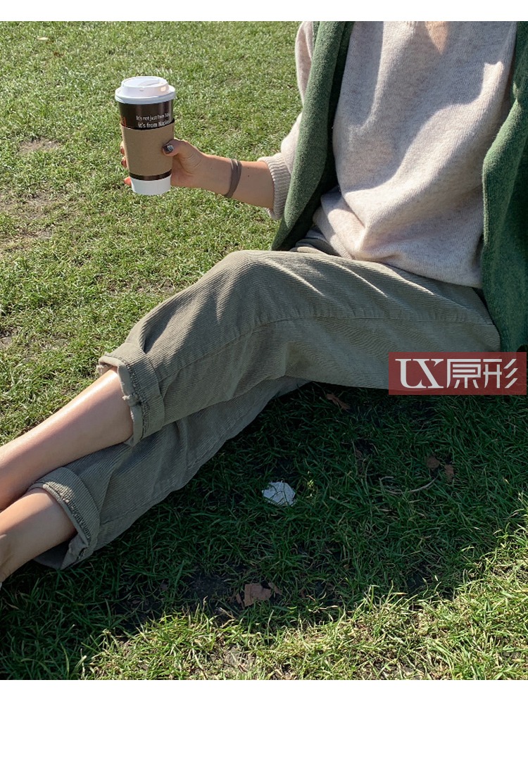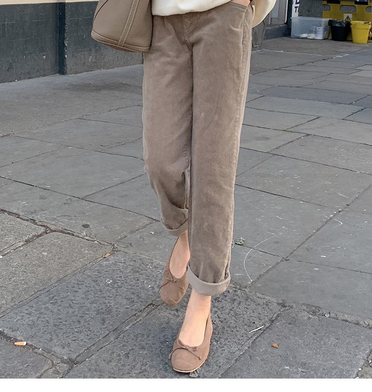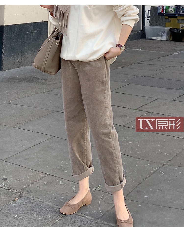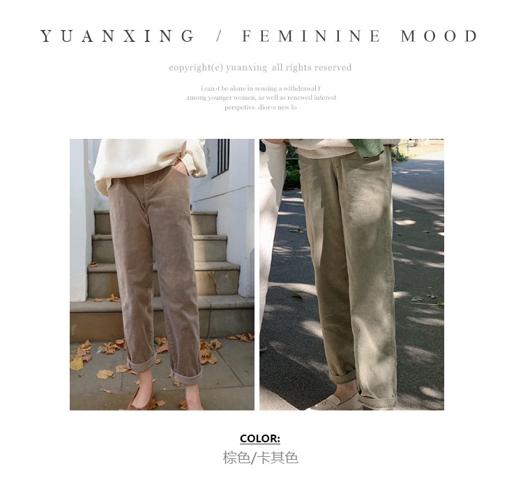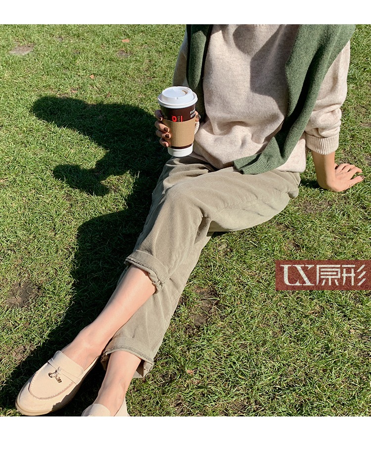 【现货7天】卡其休闲裤女2023春季新款韩版宽松显瘦舒适直筒灯芯绒长裤子