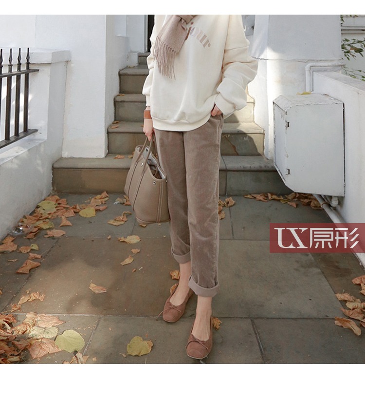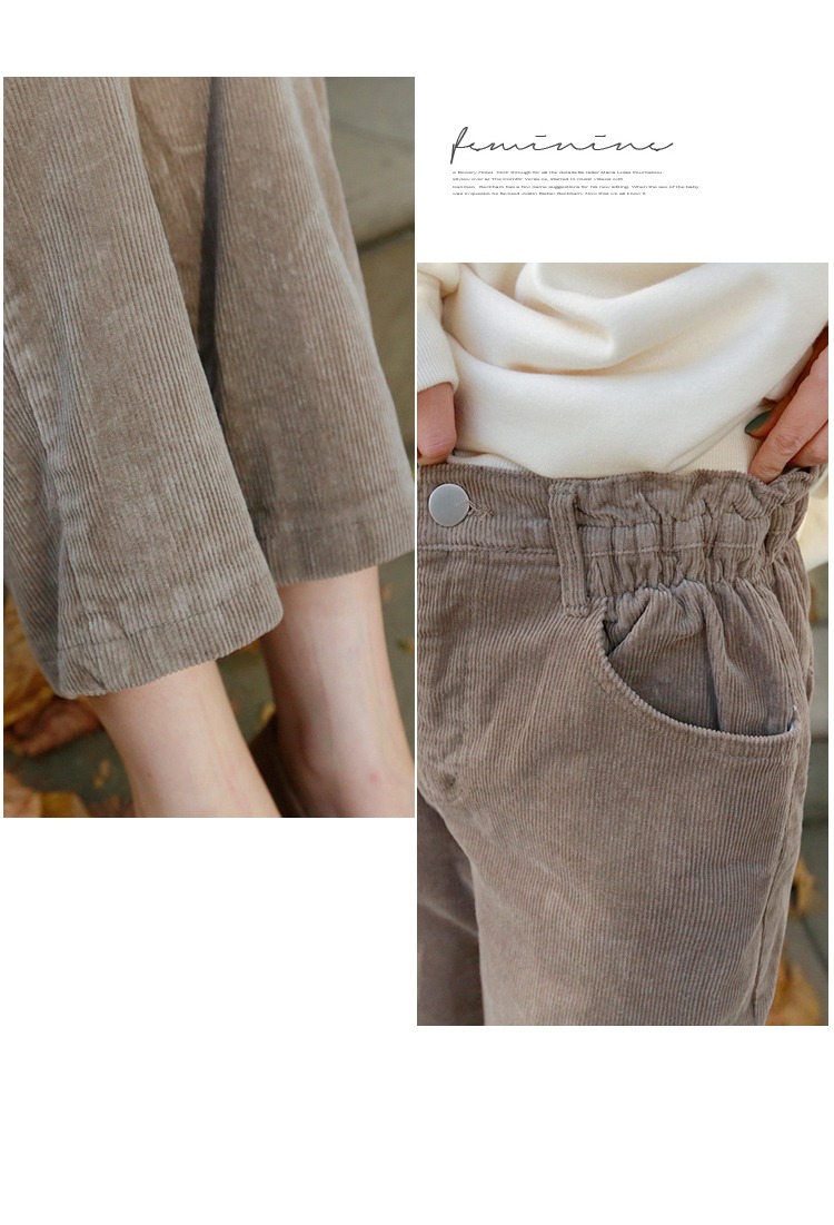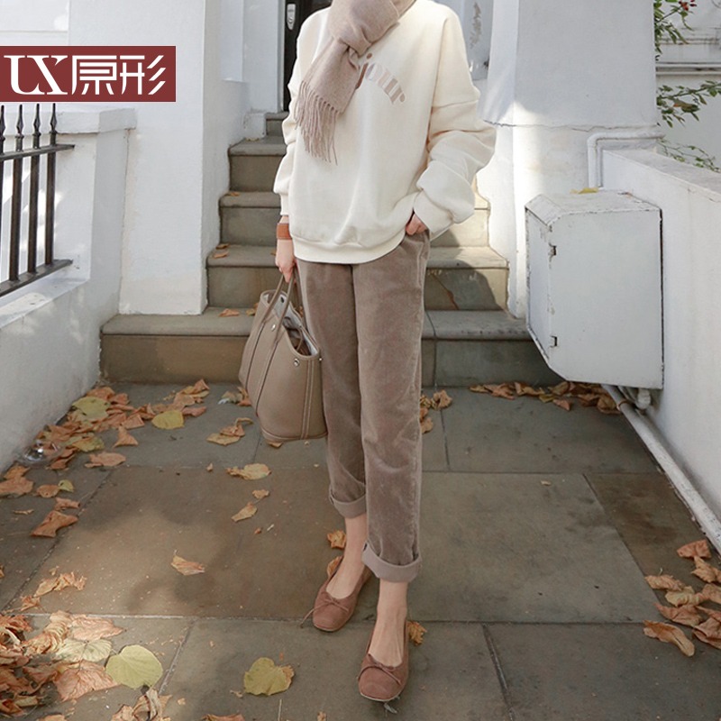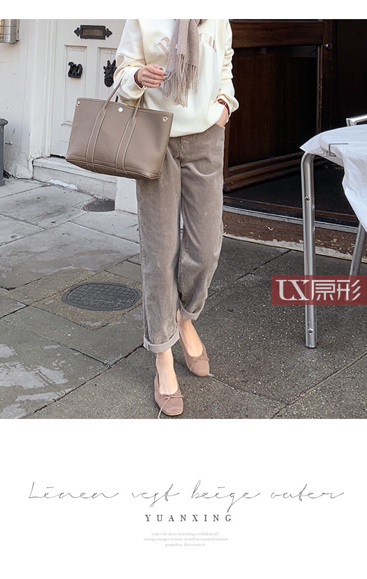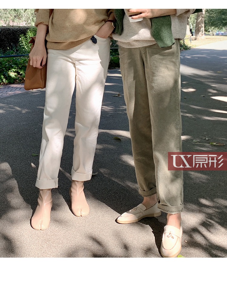 【现货7天】卡其休闲裤女2023春季新款韩版宽松显瘦舒适直筒灯芯绒长裤子