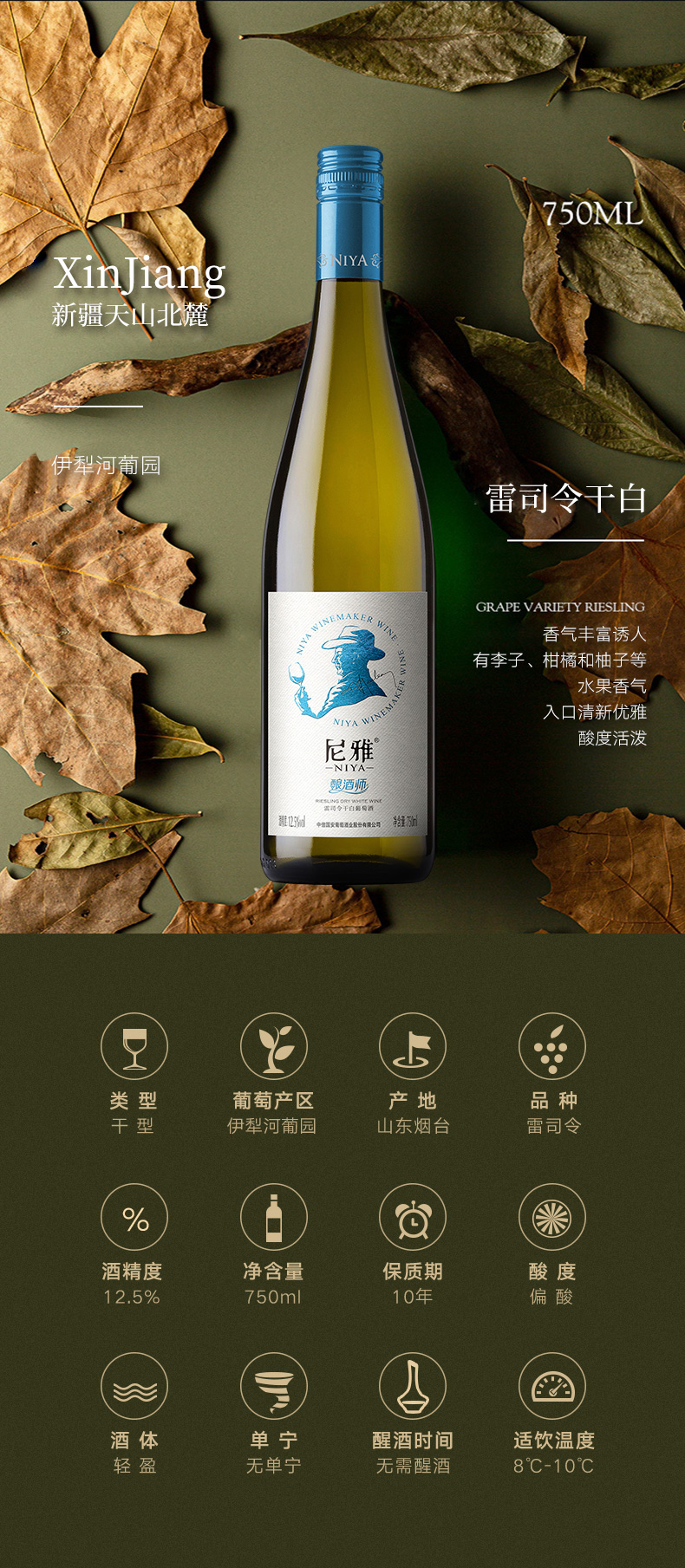 尼雅酿酒师系列 雷司令干白葡萄酒 750ml*6瓶