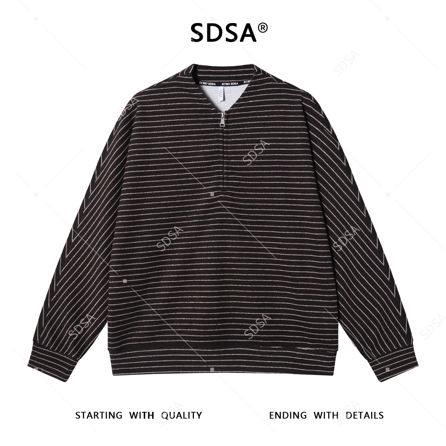 SDSA男士秋冬新款痞帅男装港风复古条纹半拉链卫衣百搭时尚上衣