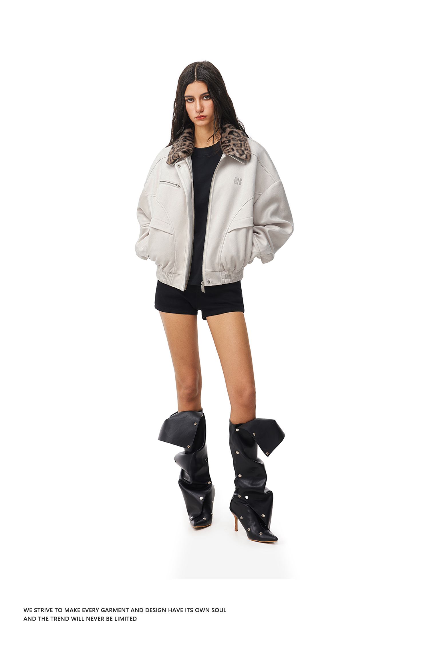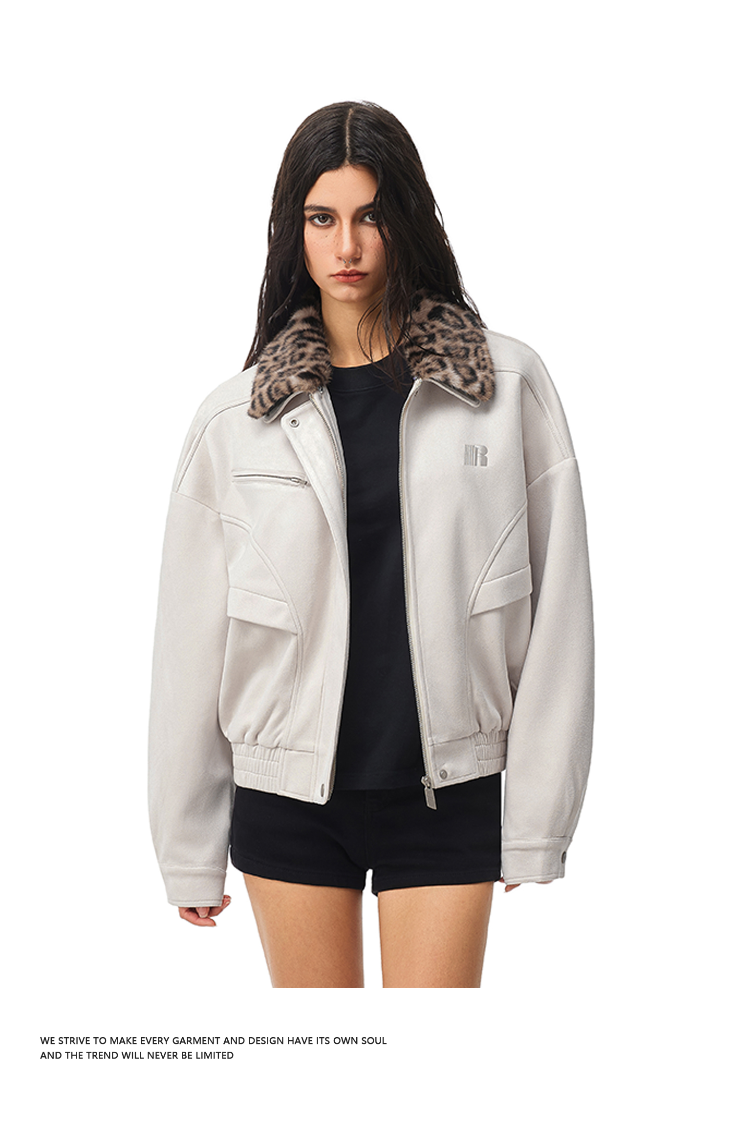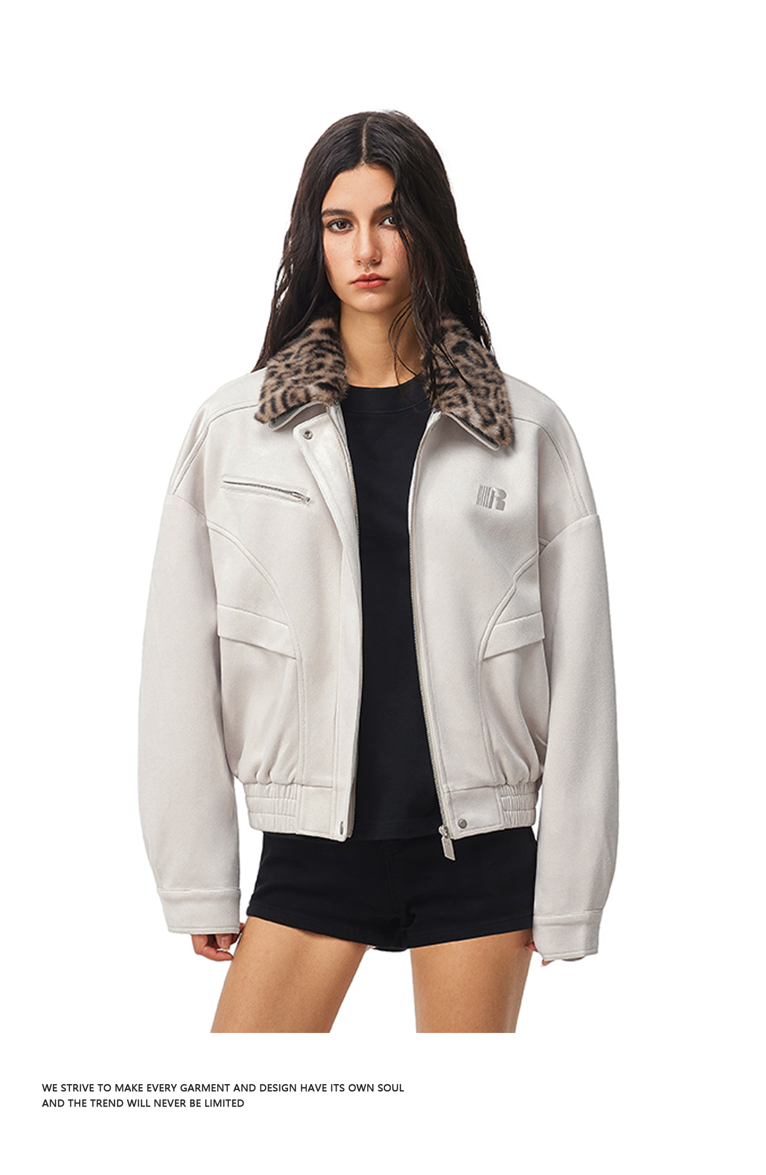 FDR官方店 巴恩风可拆卸豹纹翻领夹克外套男女春季美式情侣装上衣